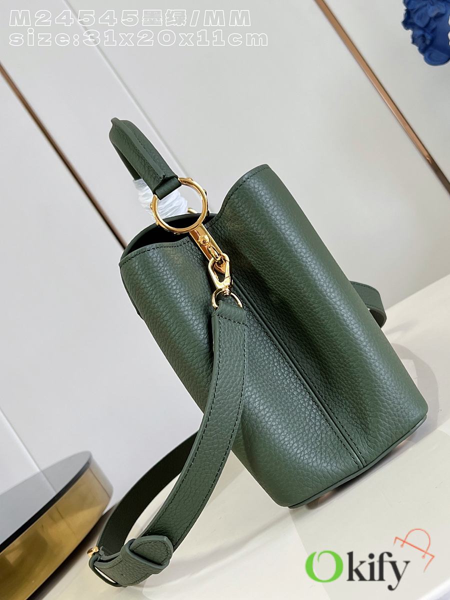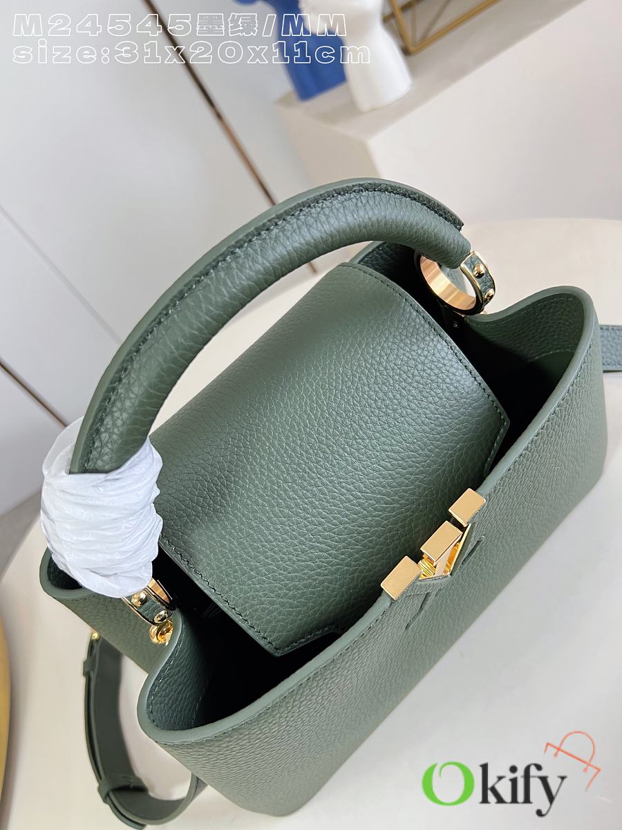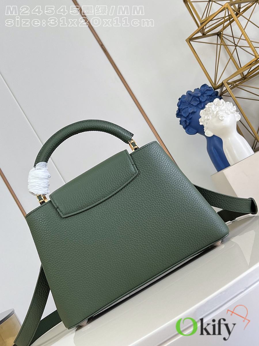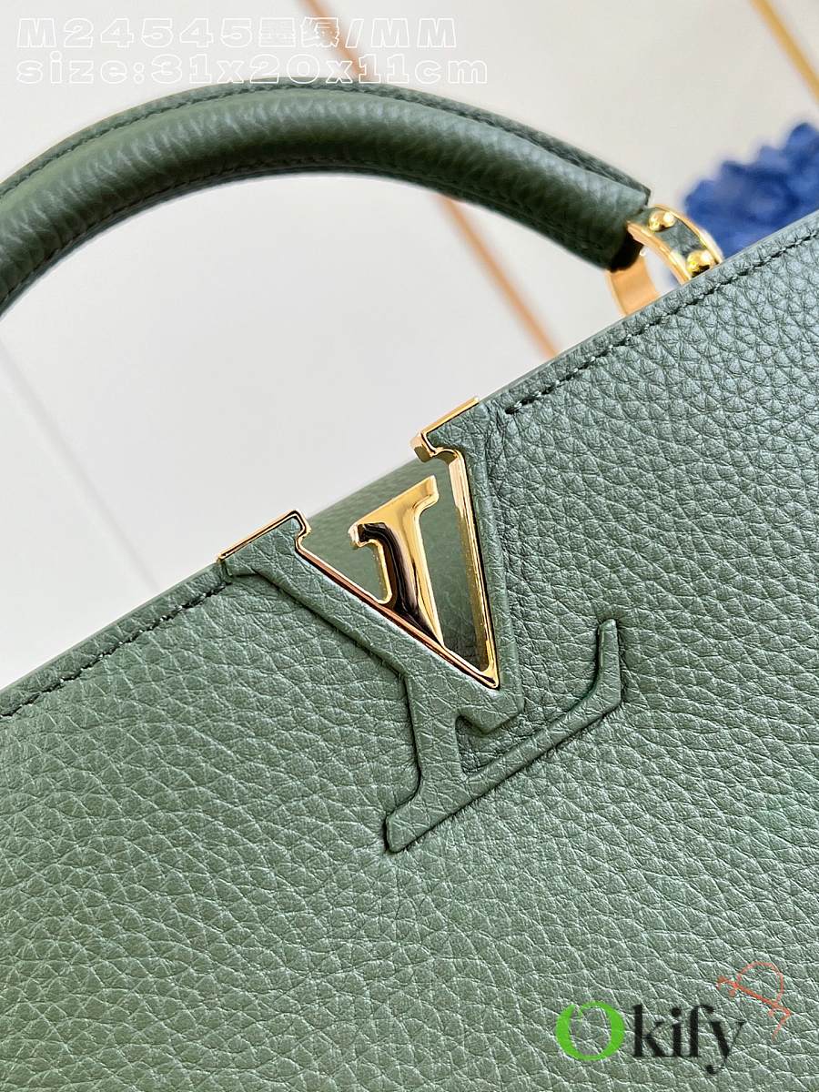 The Capucines medium handbag was launched in 2013, named after the Parisian street where Louis Vuitton first opened its store in 1854. It features full-grain Taurillon calfskin leather with a classic flap: an exterior adorned with blooming Monogram flowers, and an interior with leather-covered LV monogram. Its compact design is suitable for various dimensions