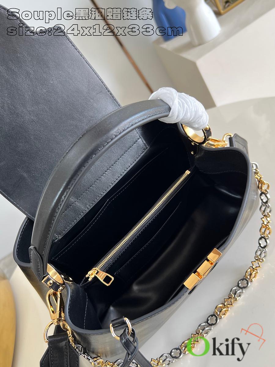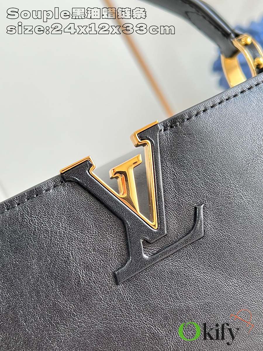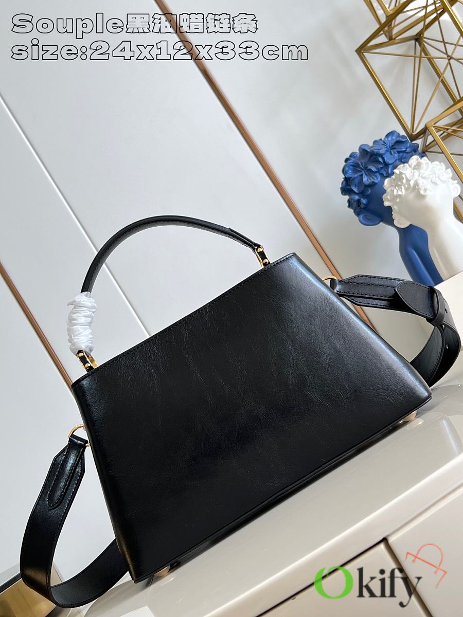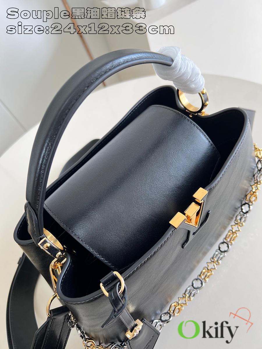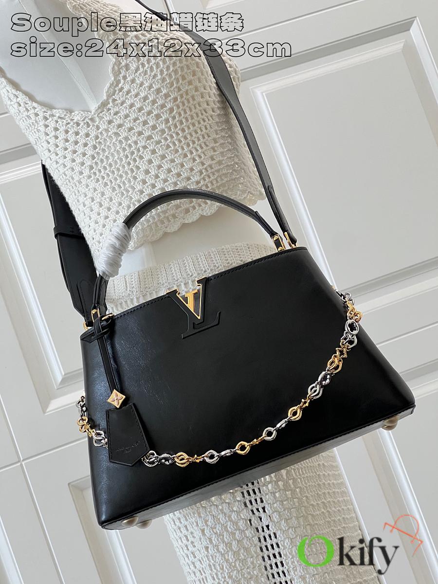This Capucines Souple medium handbag is crafted from soft grained cowhide leather, accented by the iconic key holder and a unique gemstone. The flap, which can be opened externally or internally, offers ample space for your phone and other daily necessities. Suitable for both hand and shoulder use: 24 x 12 x 33 cm (H x W x L