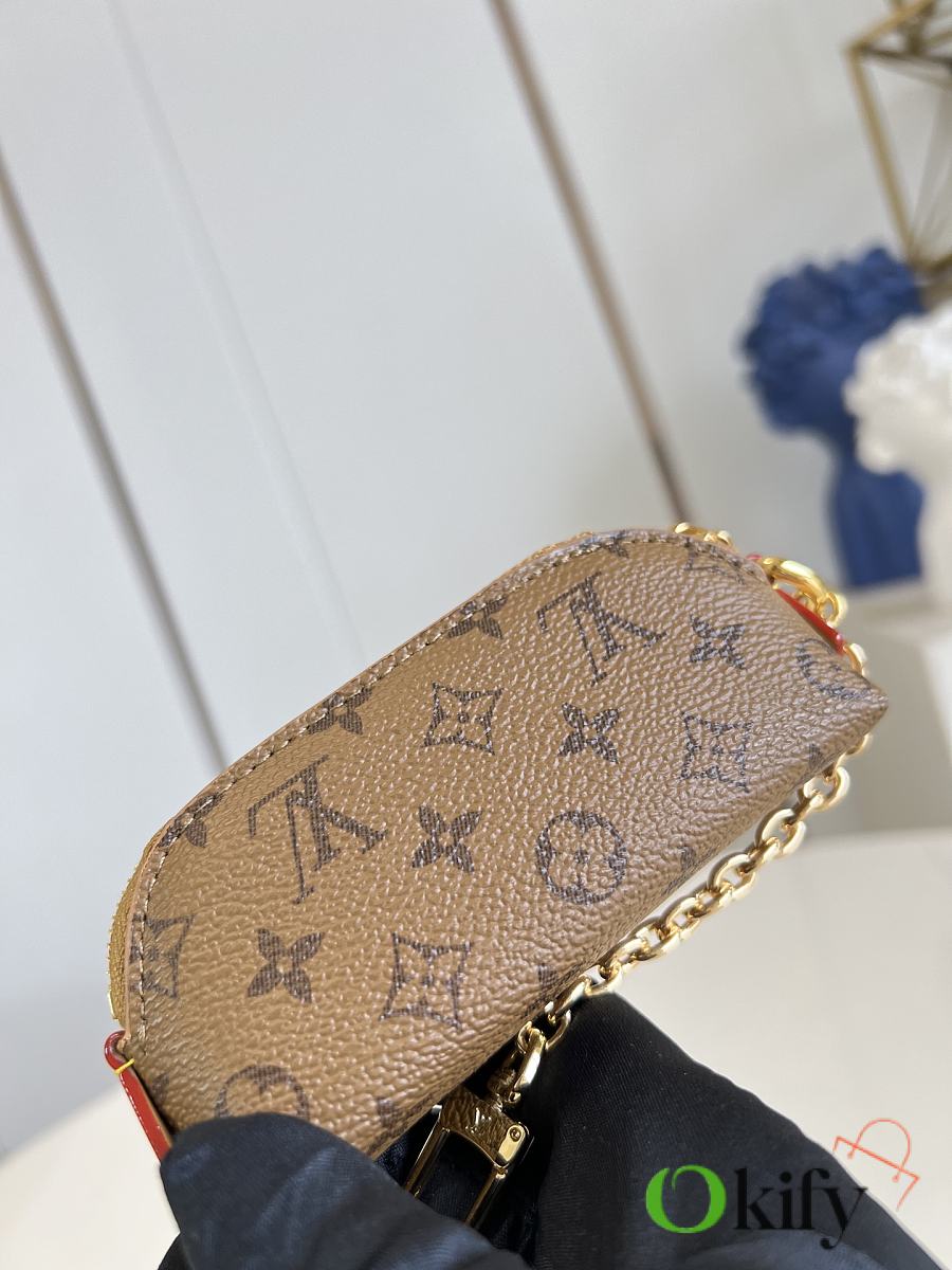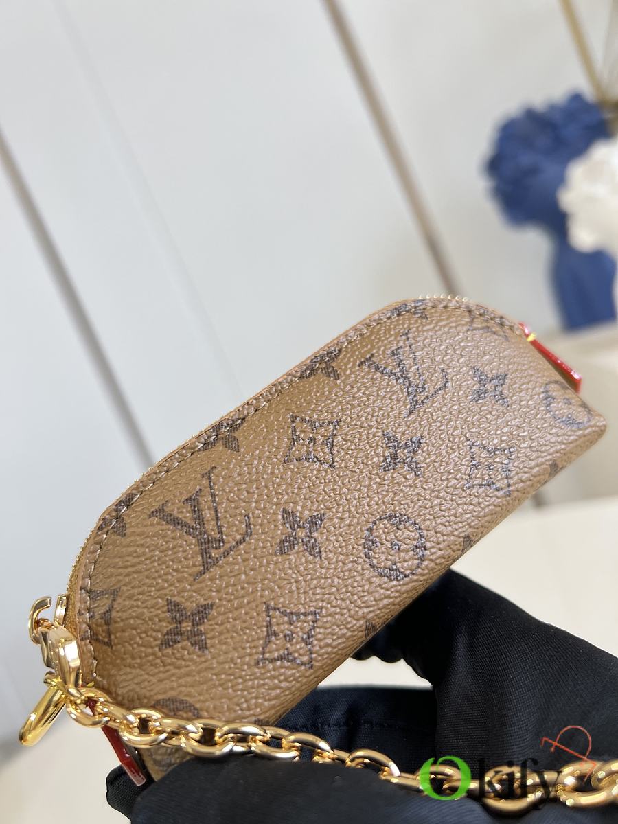 Lipstick's miniature cosmetic bag reconstructs the classic design of the brand's cosmetic bag, creating a perfect storage option for a single lipstick. Monochrome canvas with a Vuittonite lining, accented with a lustrous chain and spring clasp, embodying the eclectic blend of time-honored heritage and functional considerations.