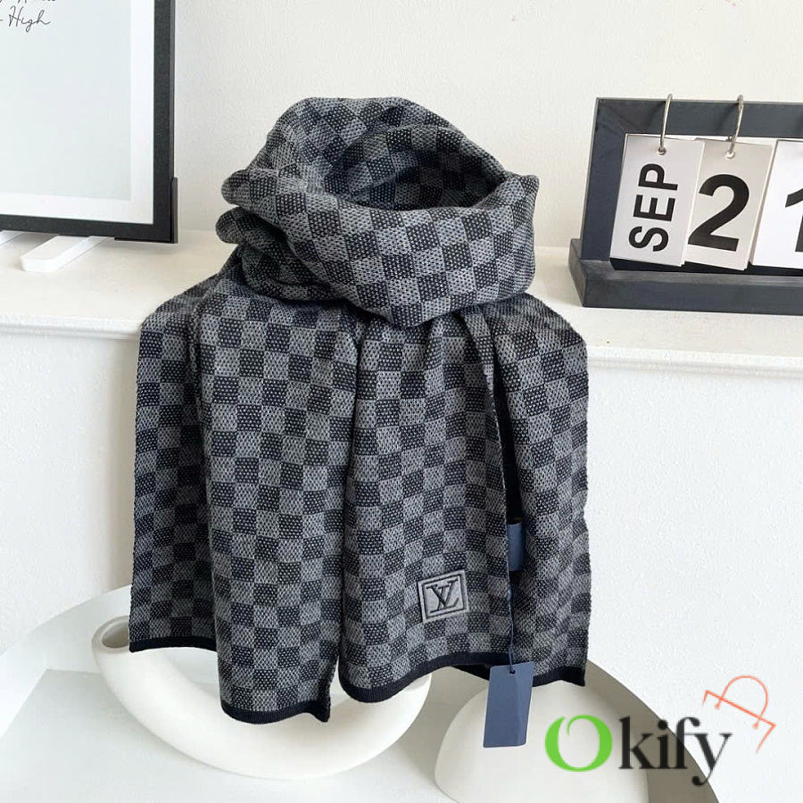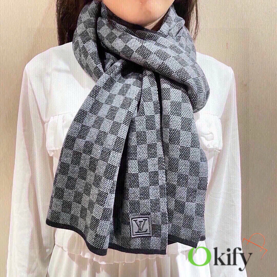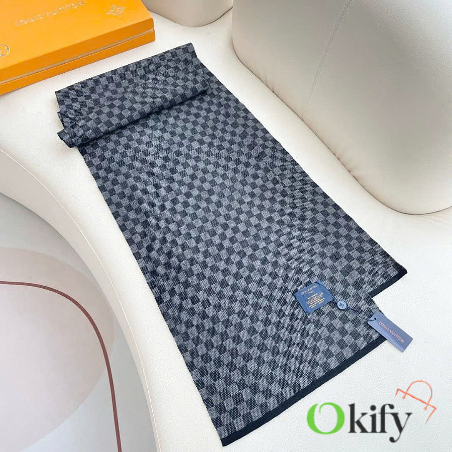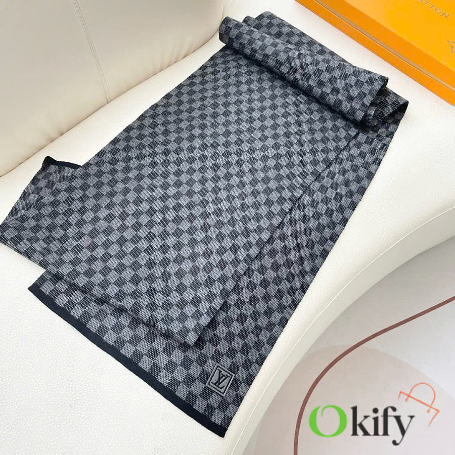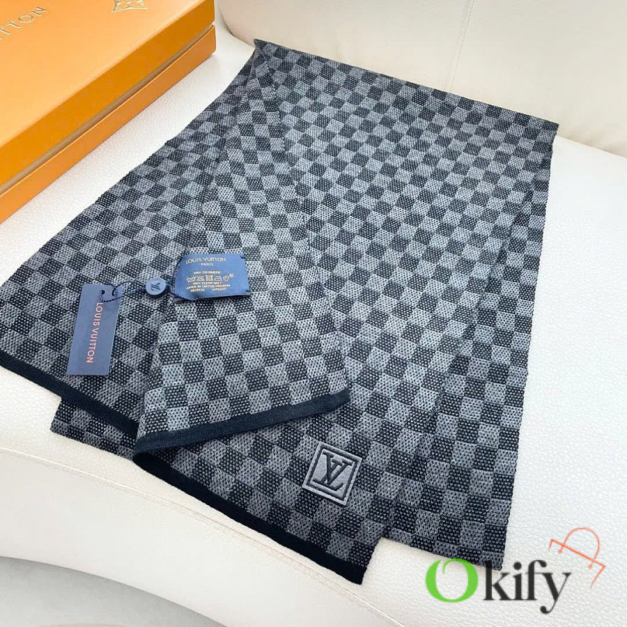 Okify Louis Vuitton Damier Black And Gray Cashmere Scarf 180x32cm