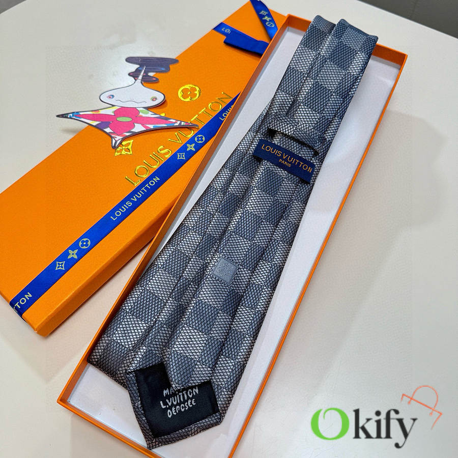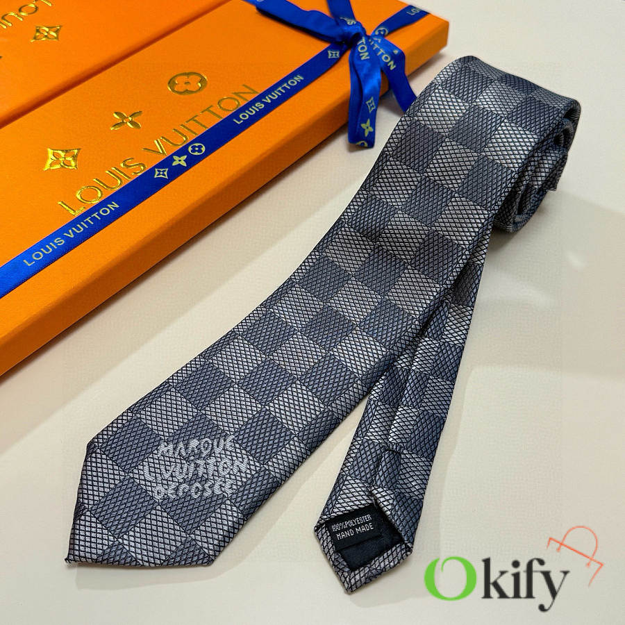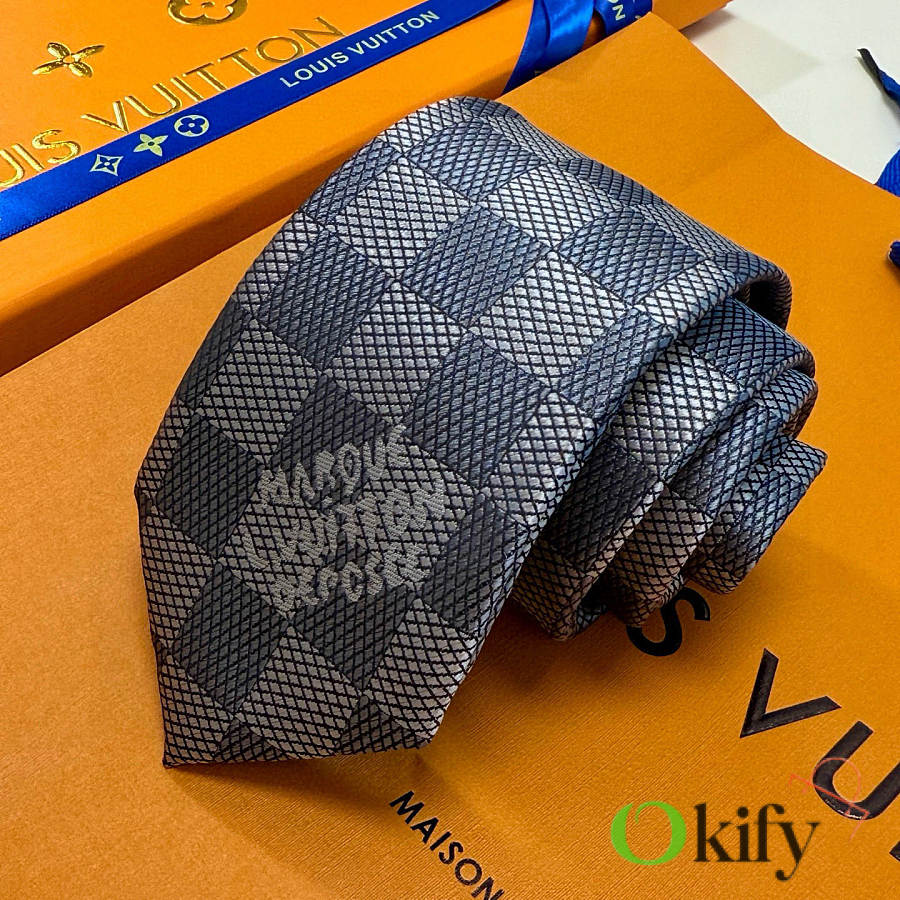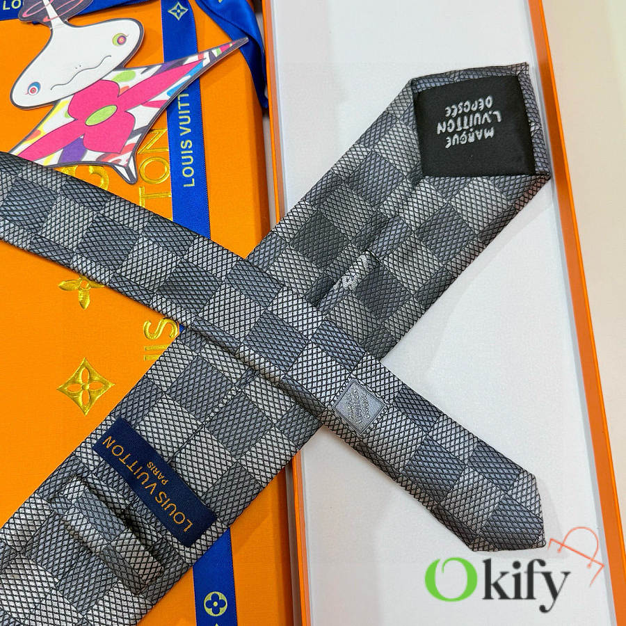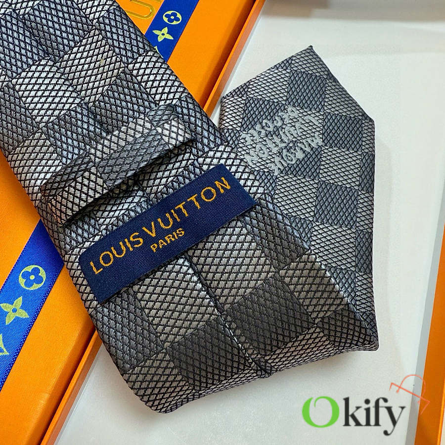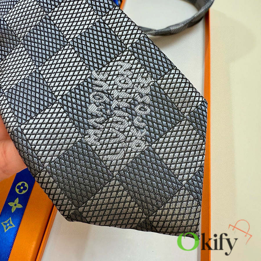Okify Louis Vuitton Damier Gray Jacquard Silk Tie