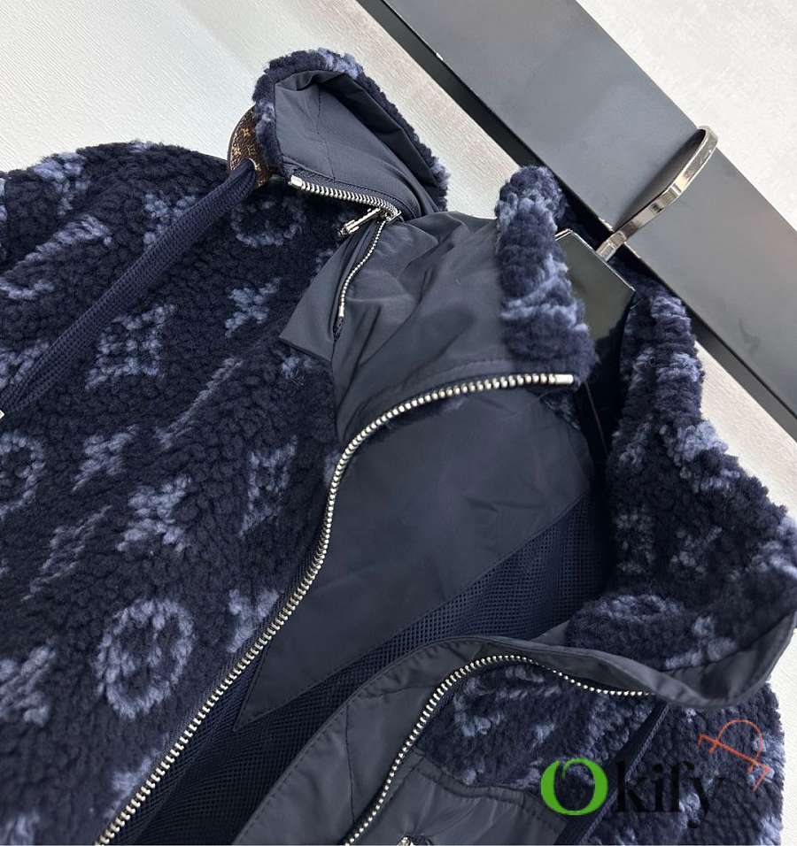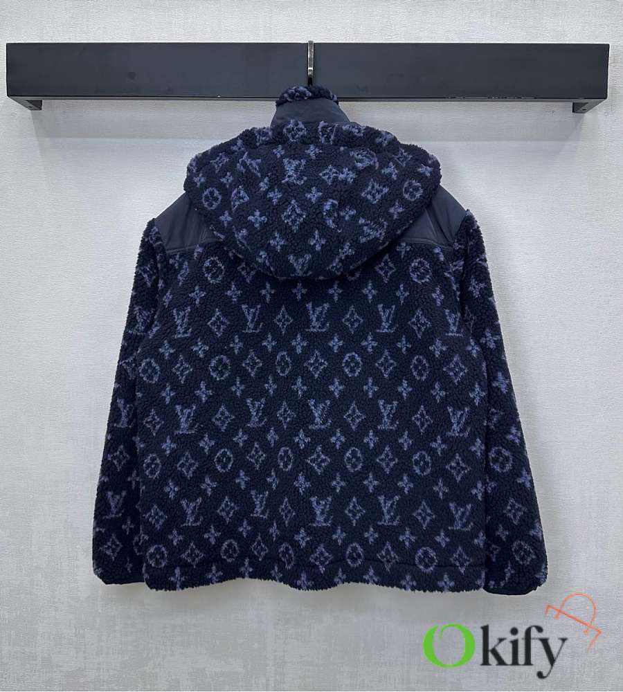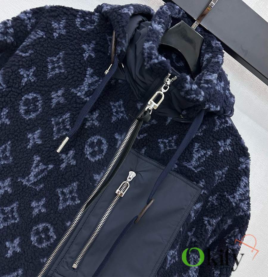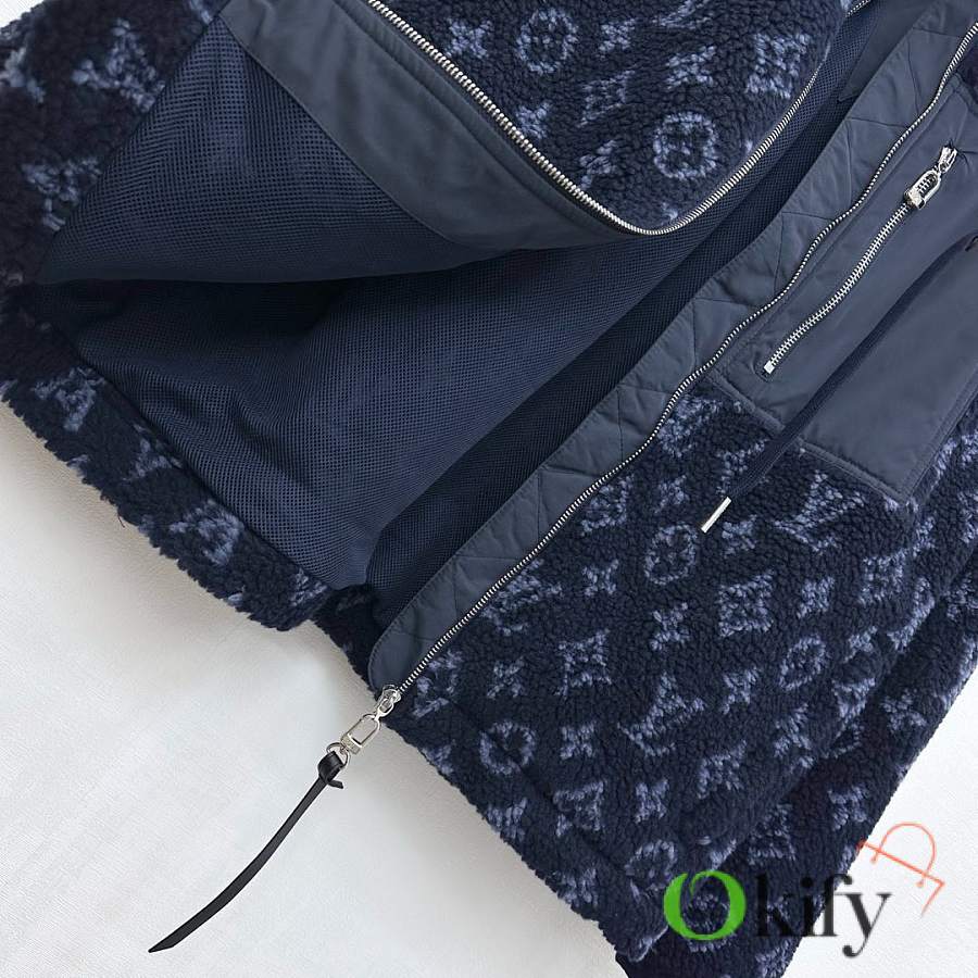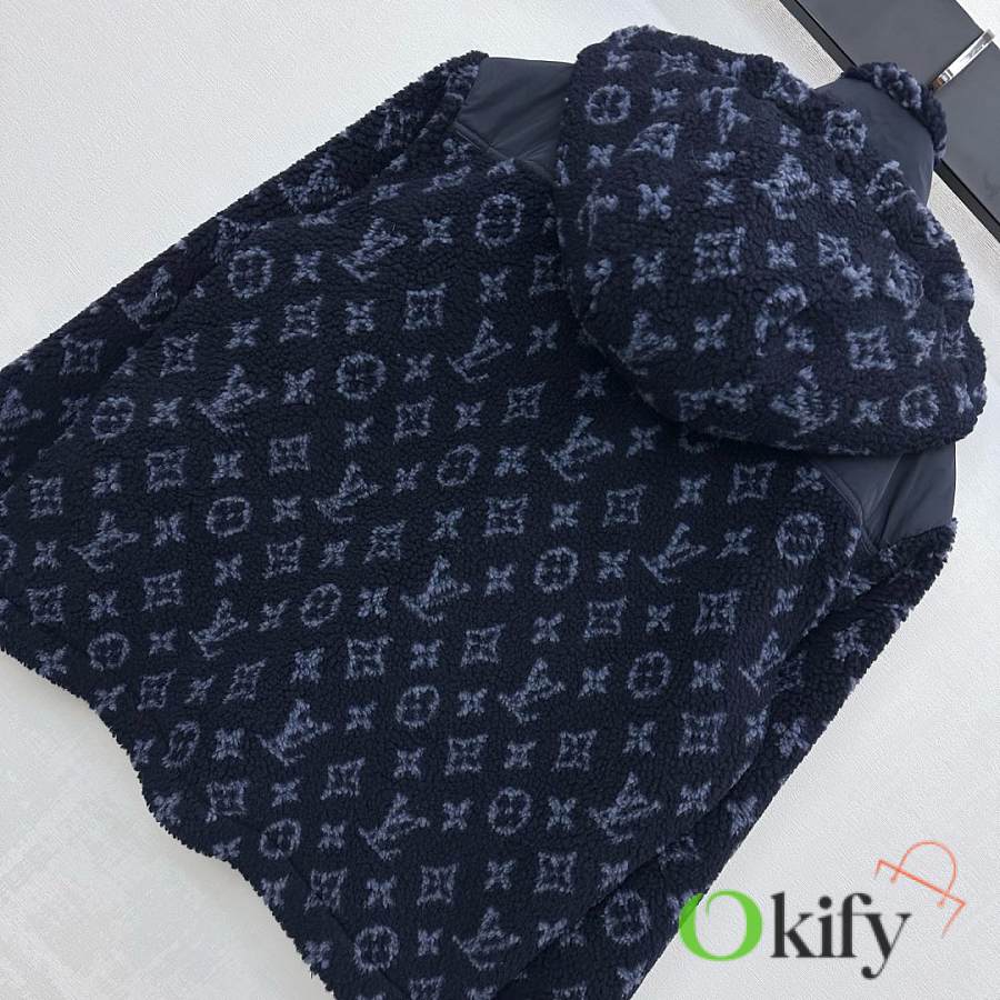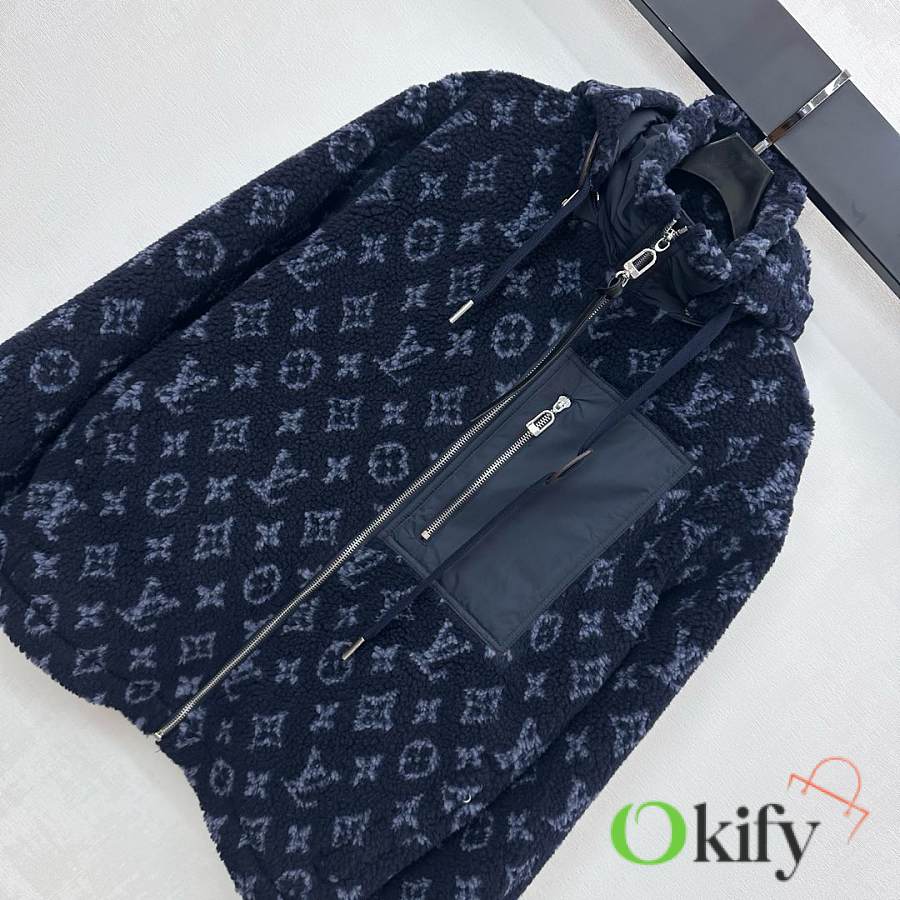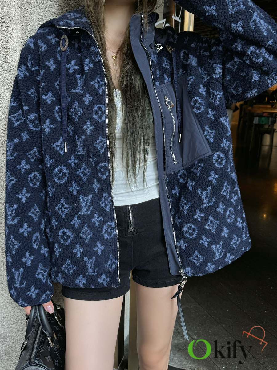Louis Vuitton's new high-end 2025 autumn and winter teddy lambswool hooded jacket is custom-made from imported teddy lambswool, soft and skin-friendly, with a crisp and stylish look. The allover pattern features four-leaf clover elements and a monogram logo, highlighting the brand's tone. The front features a leather label and zipper adjustment, while the nylon chest pocket adds a layered look. The jacket features a 1:1 custom-made fabric and trim, and the hooded zippered jack