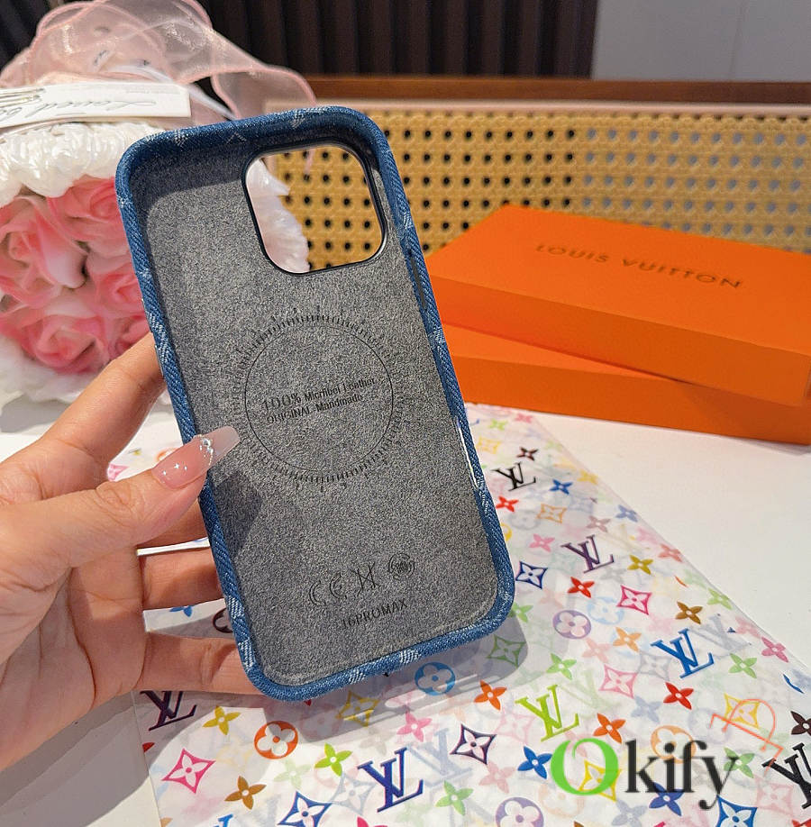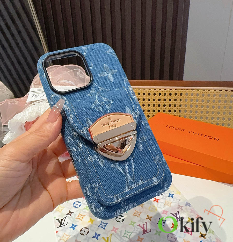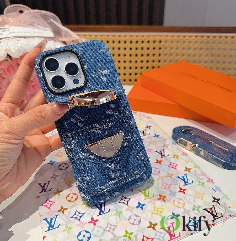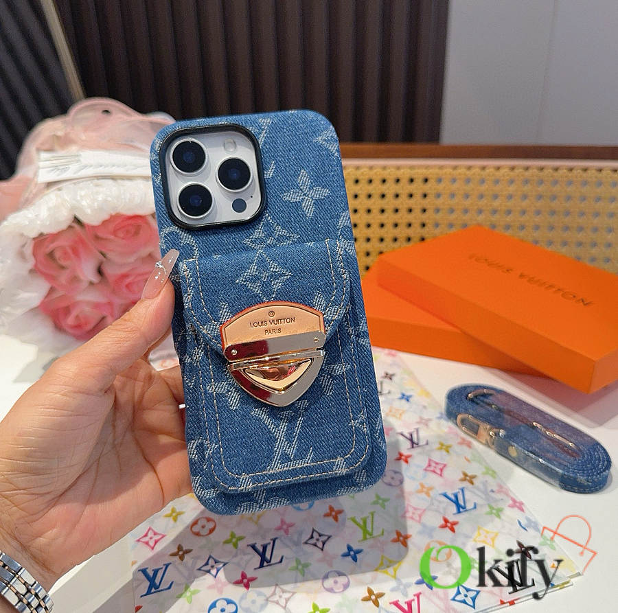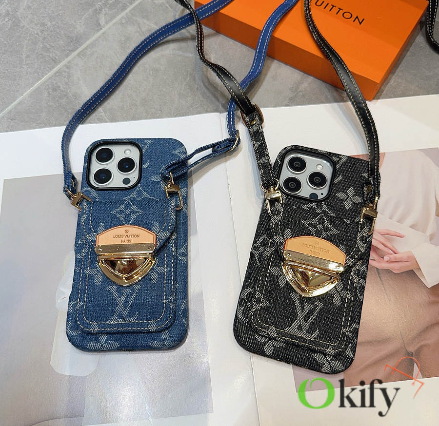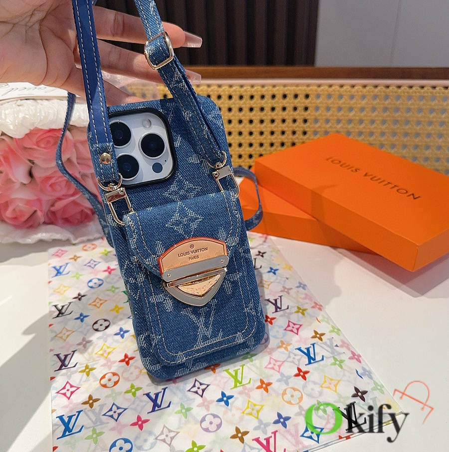Okify Louis Vuitton Denim Blue Phone Case With Card Holder And Strap