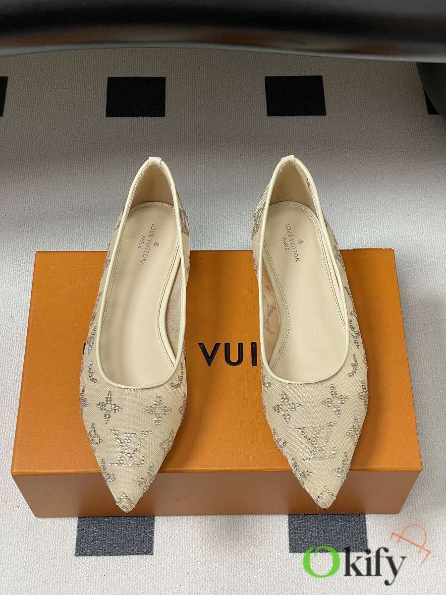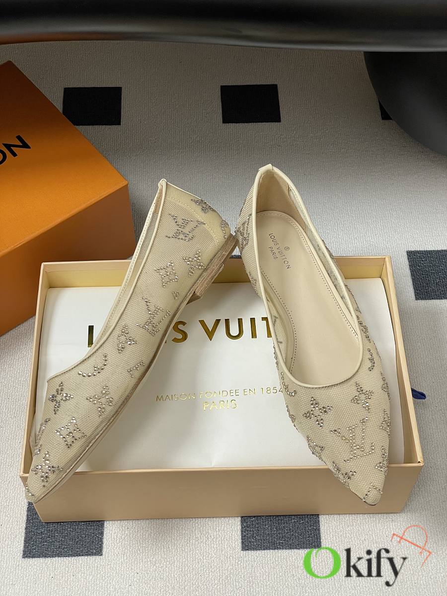 Okify Louis Vuitton Gala Beige Flat Ballet Shoes 1AIDQT