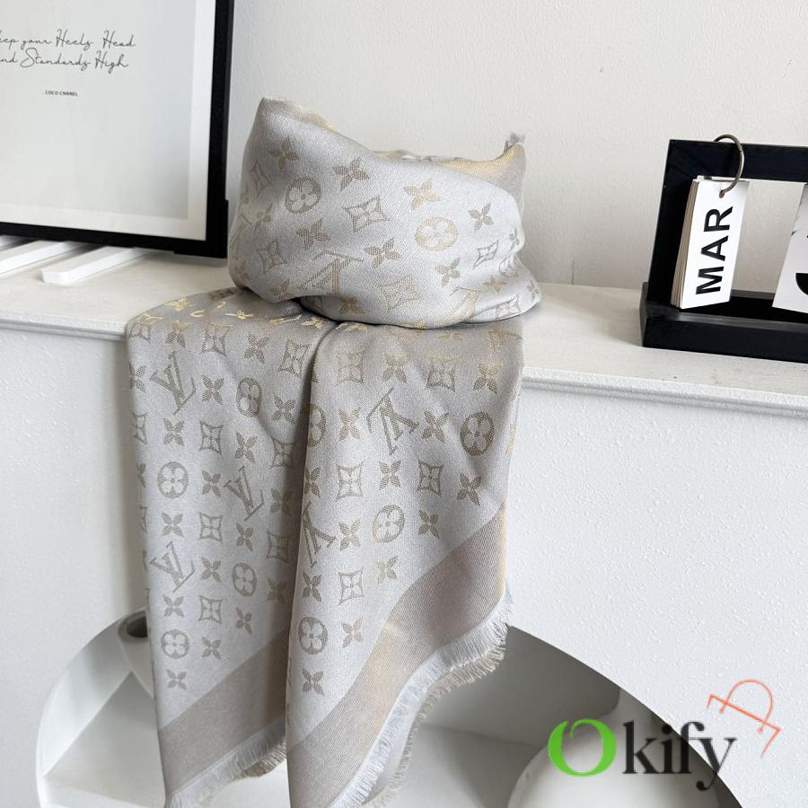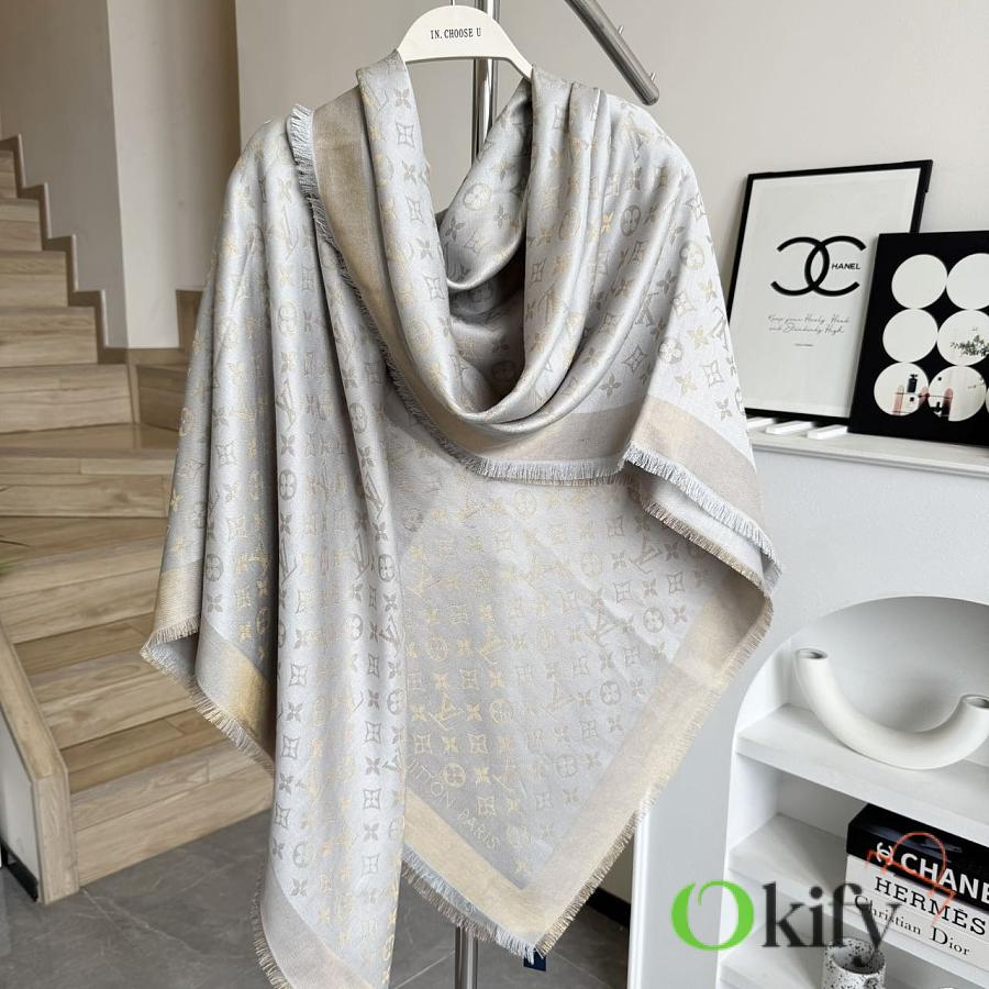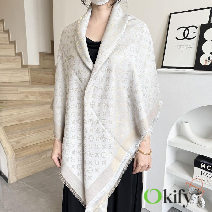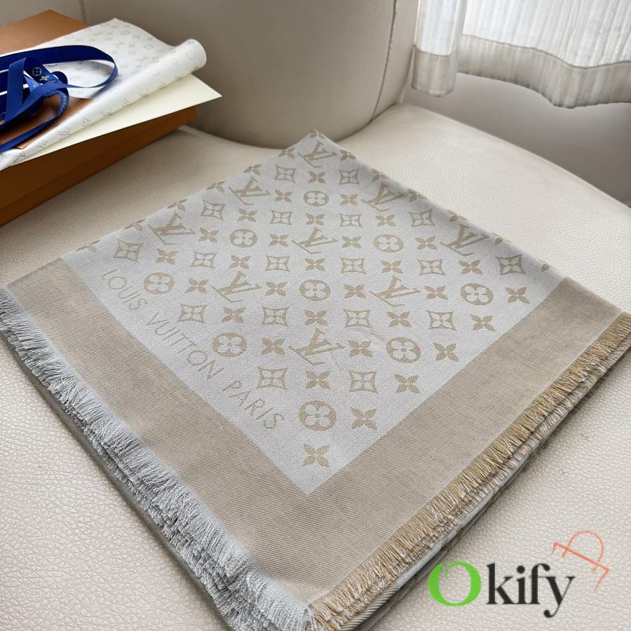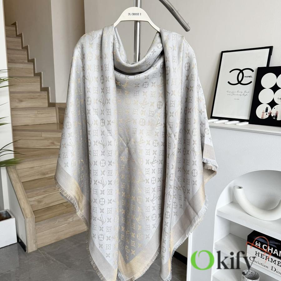 Okify Louis Vuitton Gray Wool And Silk Square Scarf With Gold Monogram 140x140cm