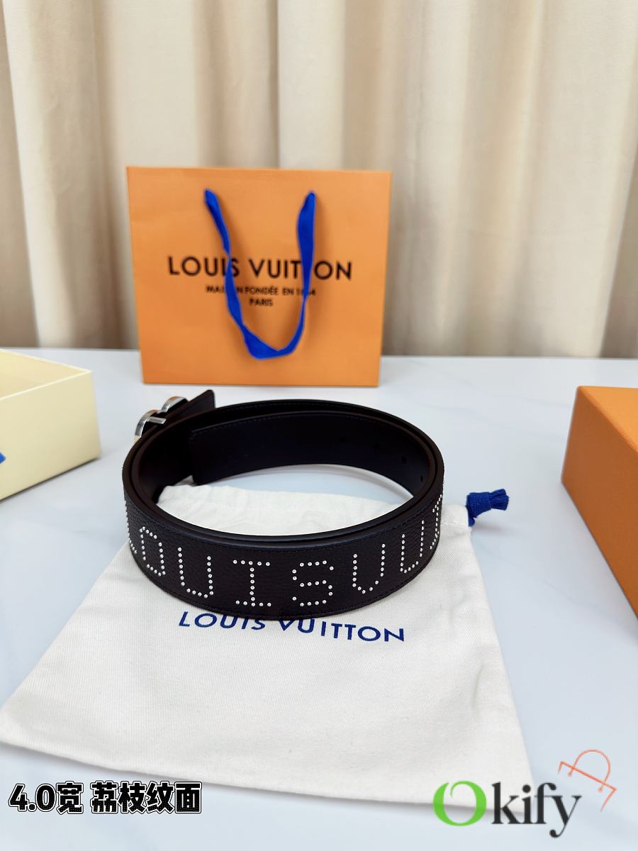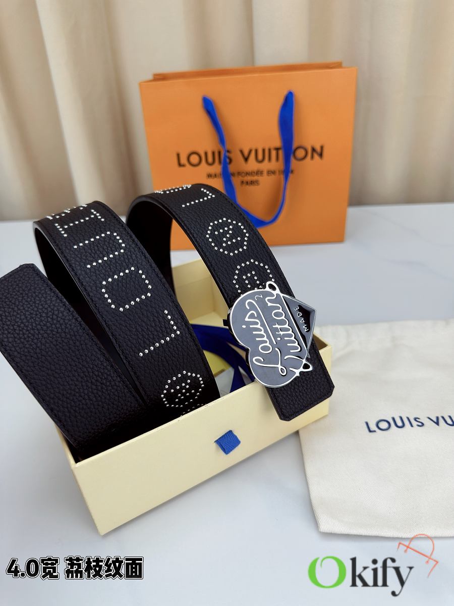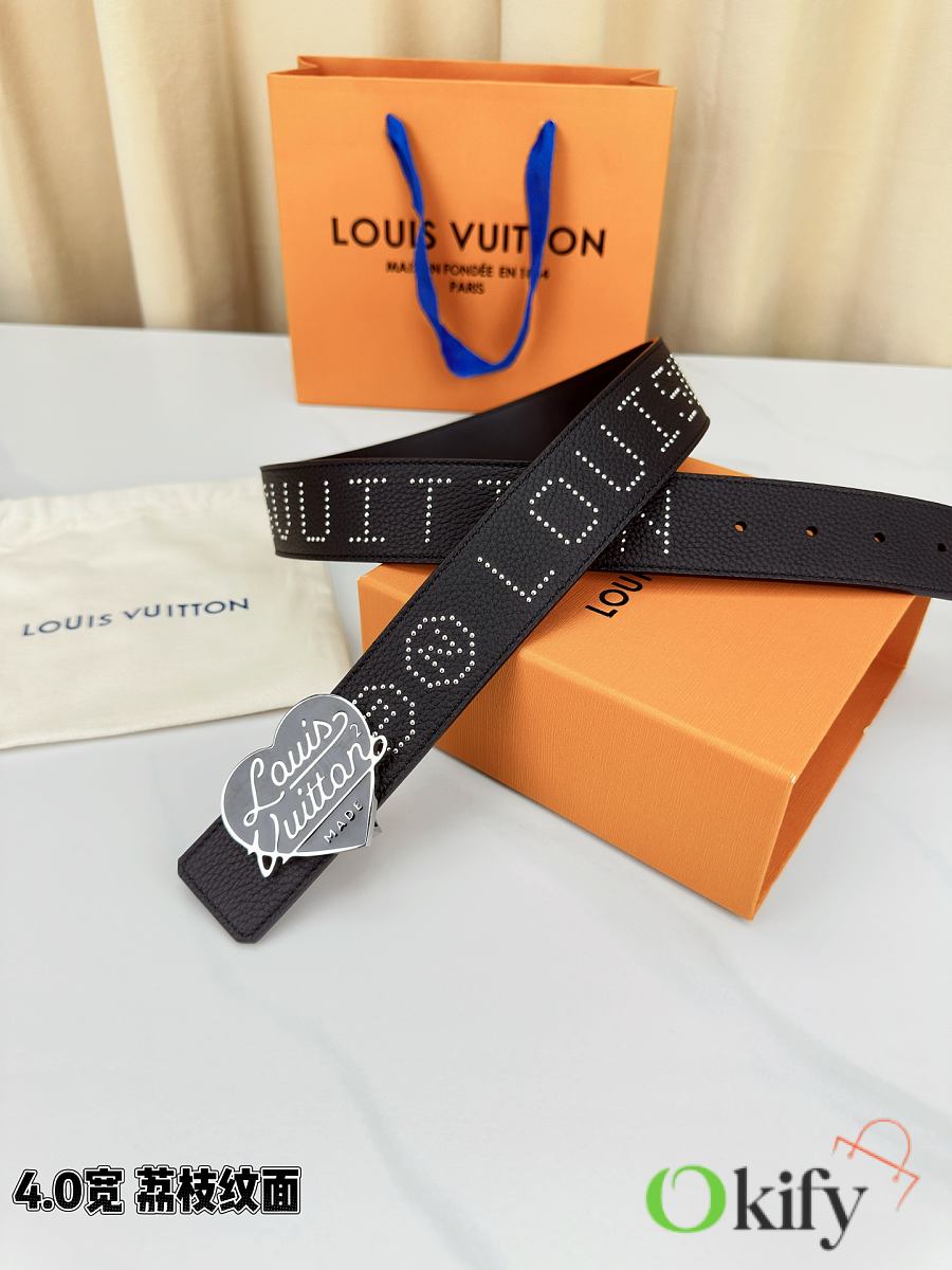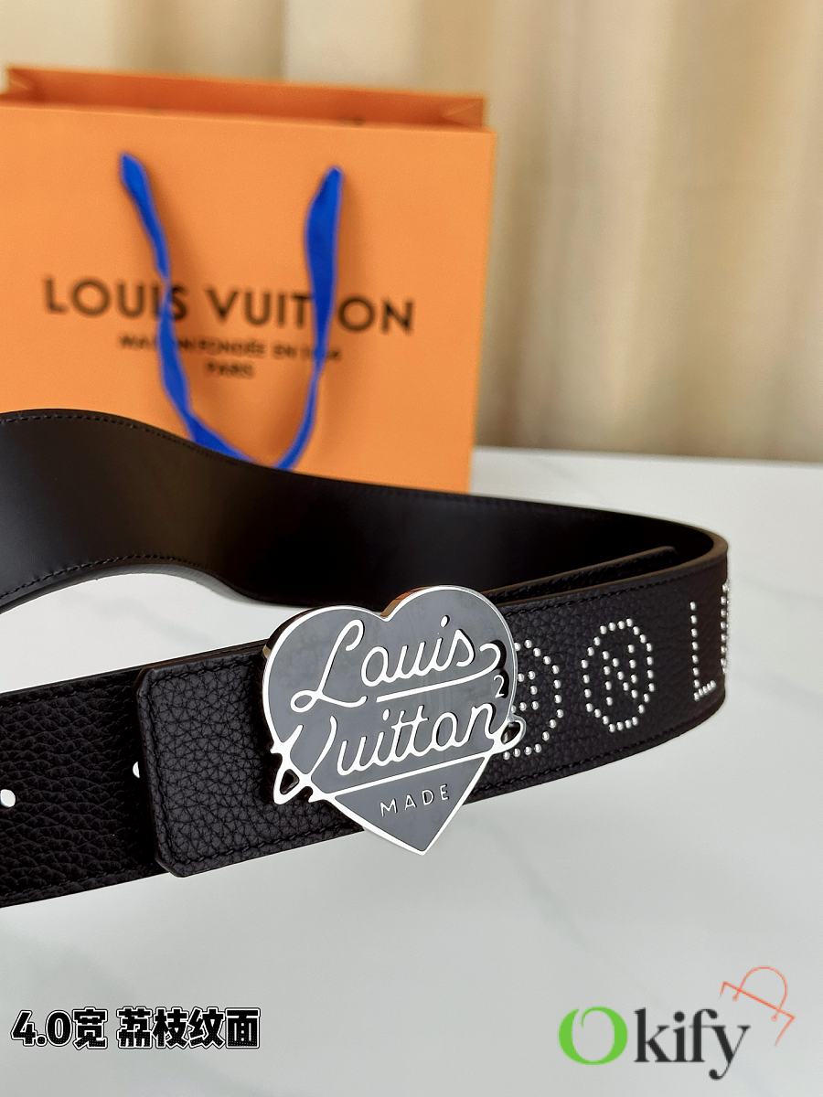 Okify Louis Vuitton Heart Buckle Black Belt 4cm