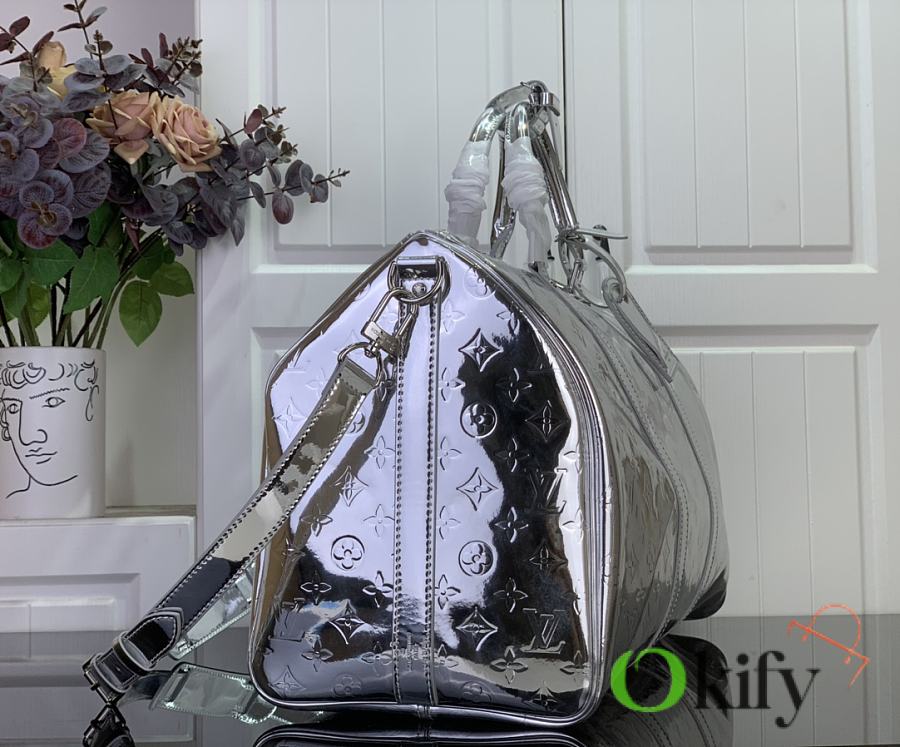 The Monogram Miroir canvas conveys a retro-futuristic style, while the gleaming metal hardware and mesh lining reveal meticulous details. The durable material can easily withstand various weather conditions, and the top handle and detachable and adjustable shoulder strap make it easy to carry on board.