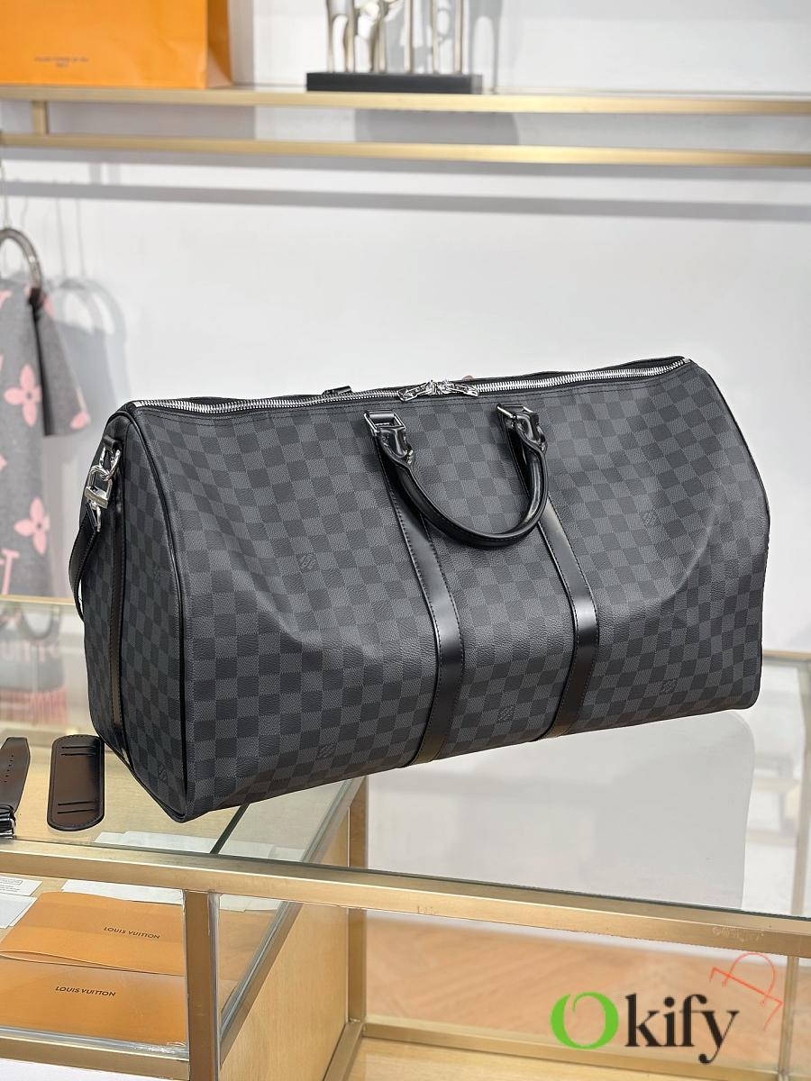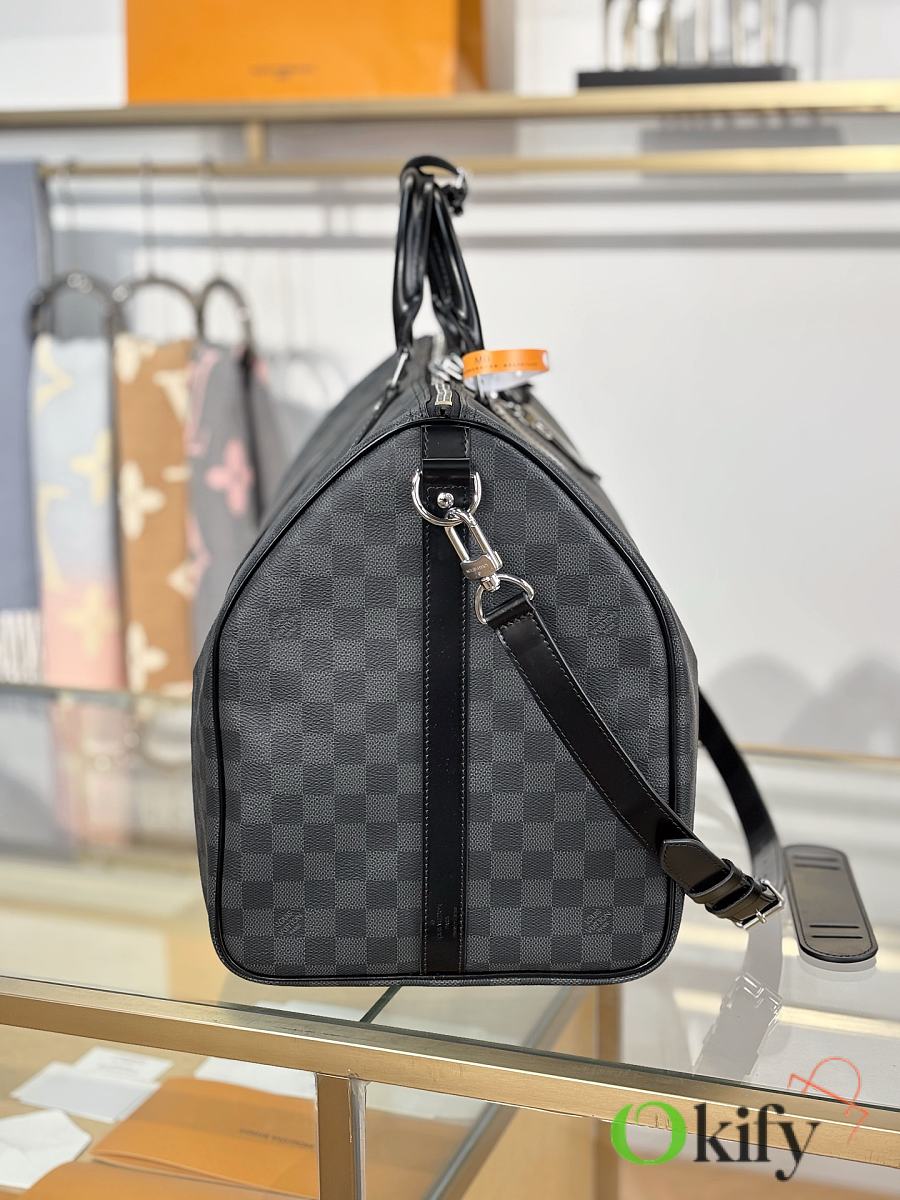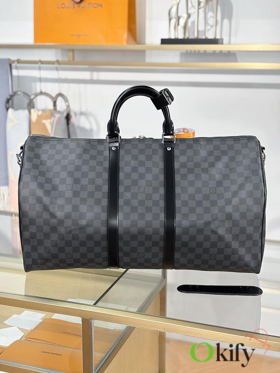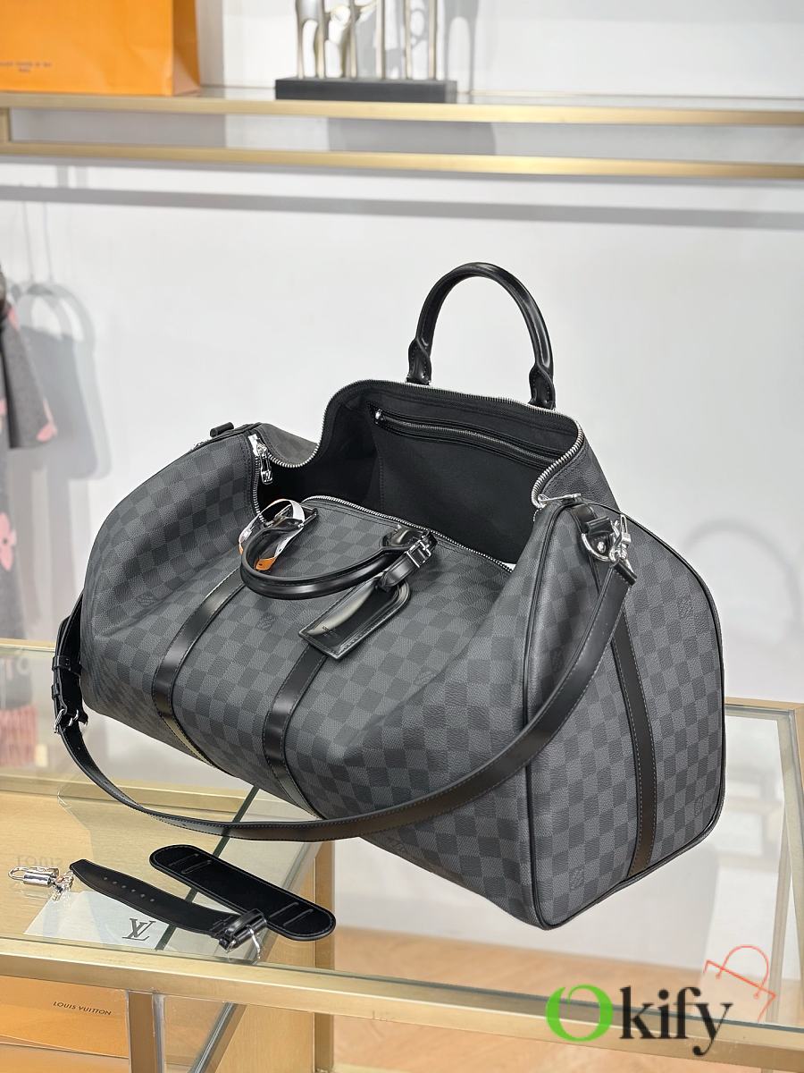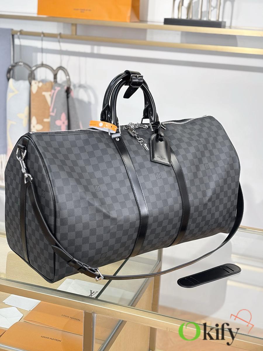 Okify Louis Vuitton Keepall Bandouliere Damier Bag In Black N41413 55x31x26cm