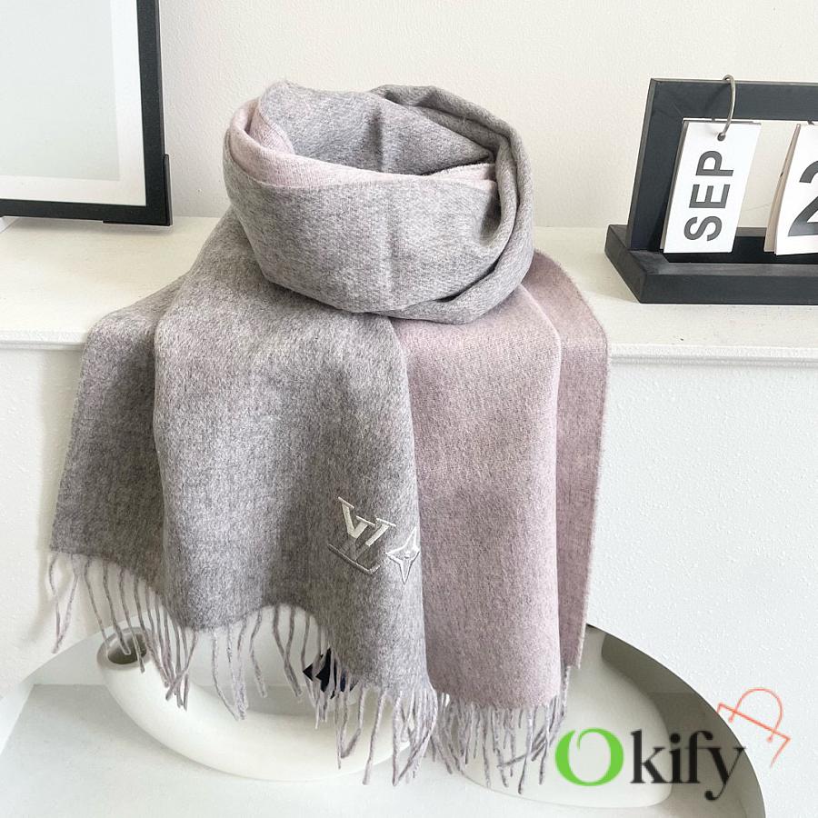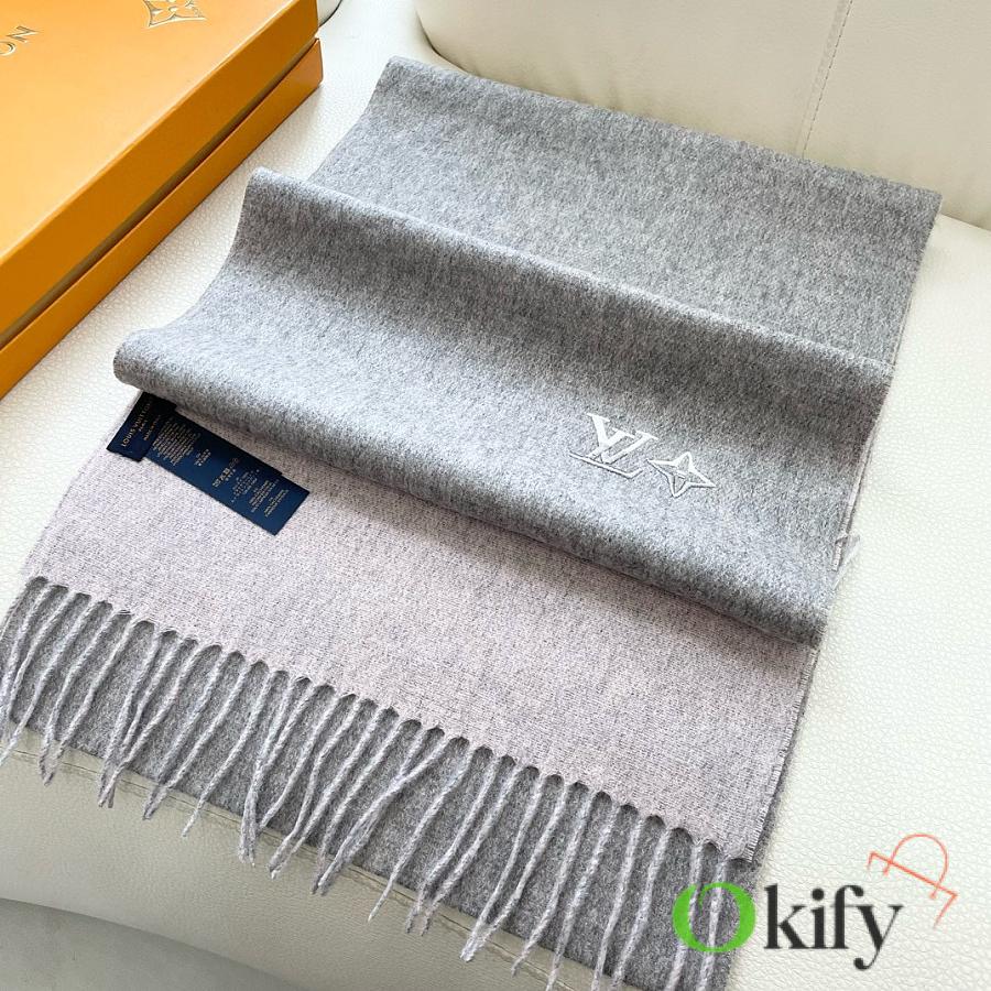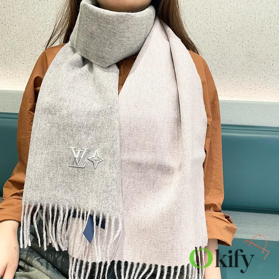 Okify Louis Vuitton Light Gray Cashmere Scarf 180x32cm