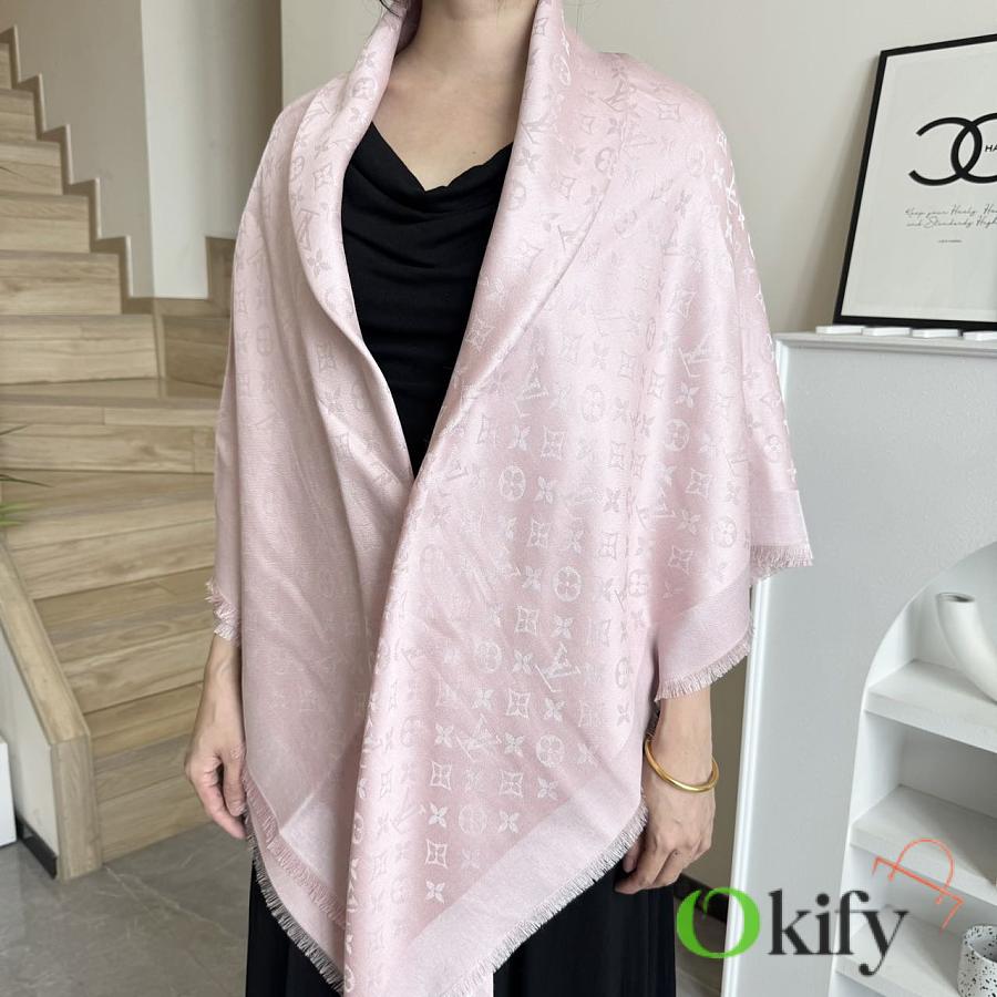 Okify Louis Vuitton Light Pink Wool And Silk Square Scarf 140x140cm
