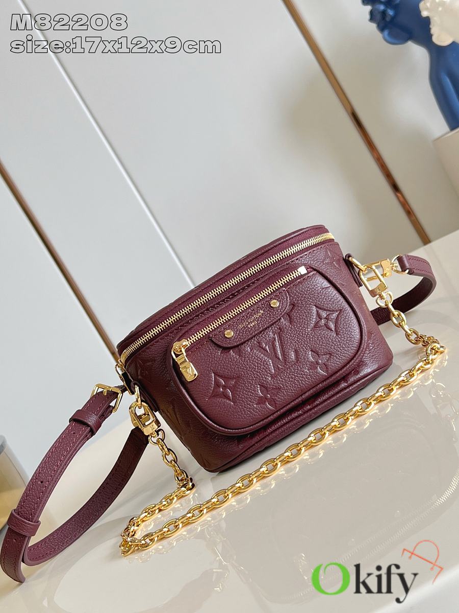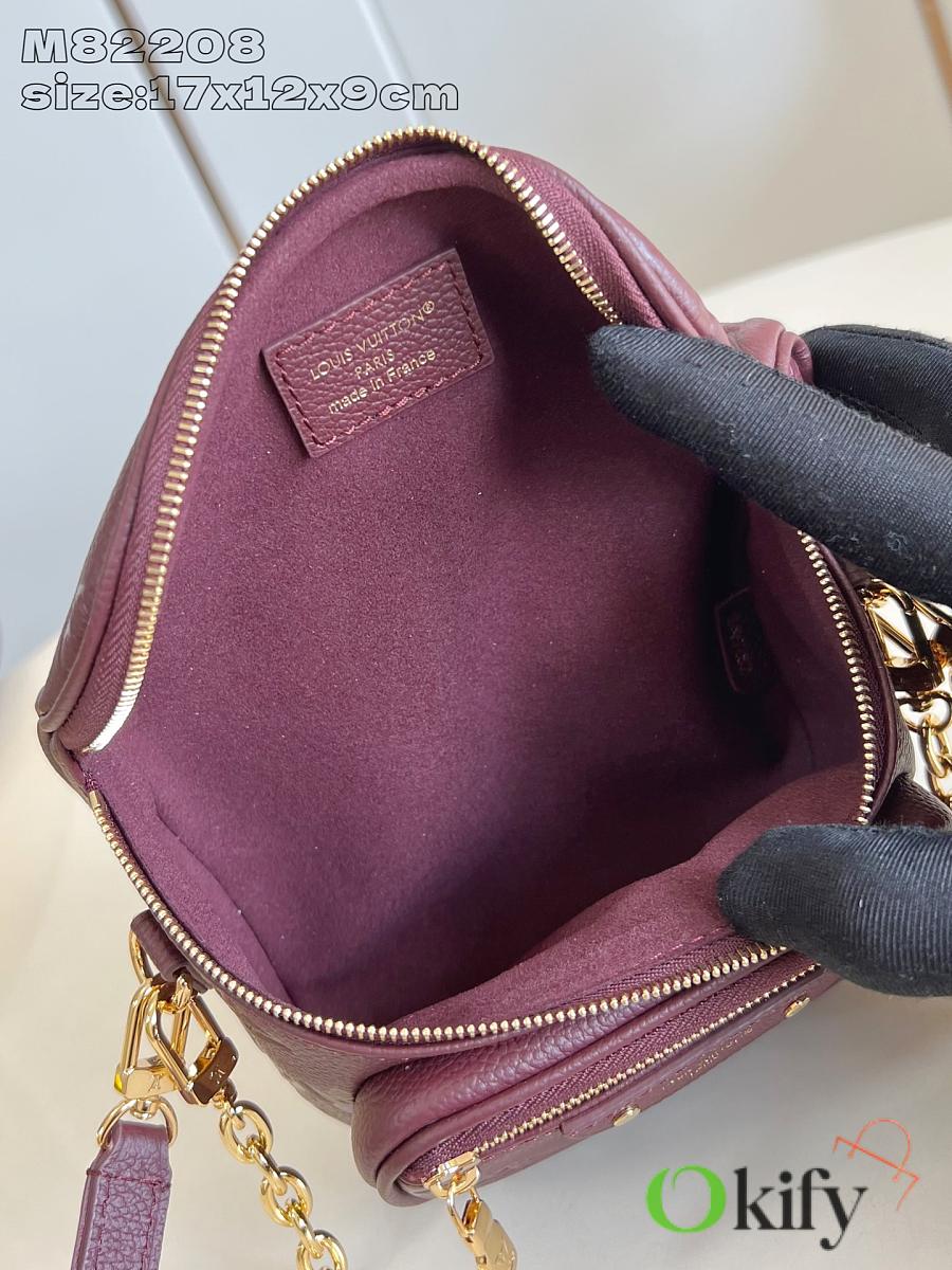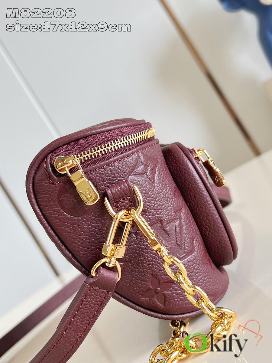 This Mini Bumbag from the LV Gradient collection features Monogram Empreinte leather with a gradient, summery hue. The stylish design features a zippered main compartment and a Louis Vuitton leather label on the front pocket. A detachable chain and removable, adjustable shoulder strap allow for versatile shoulder or crossbody carry.