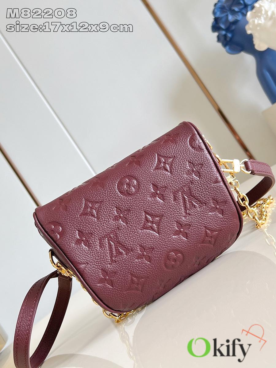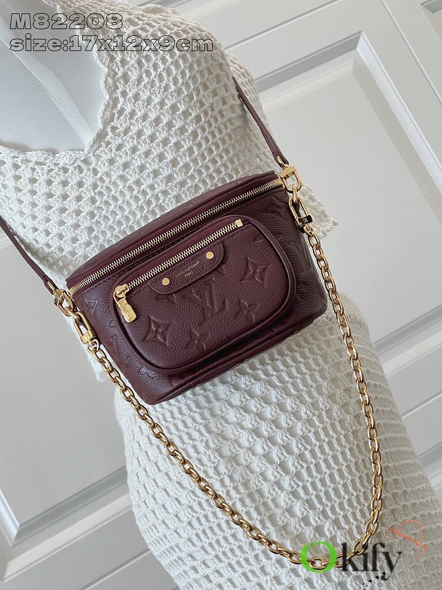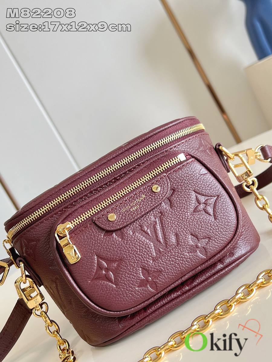 This Mini Bumbag from the LV Gradient collection features Monogram Empreinte leather with a gradient, summery hue. The stylish design features a zippered main compartment and a Louis Vuitton leather label on the front pocket. A detachable chain and removable, adjustable shoulder strap allow for versatile shoulder or crossbody carry.