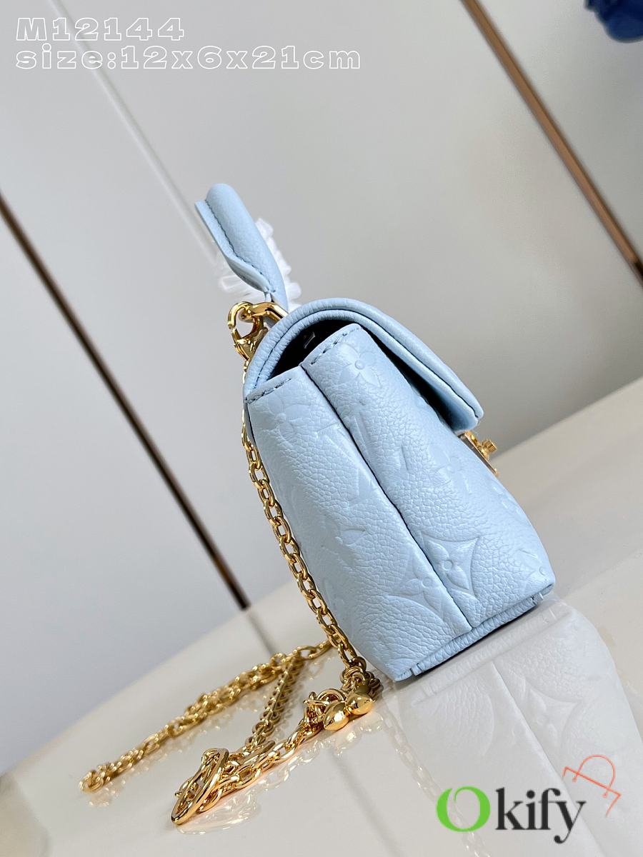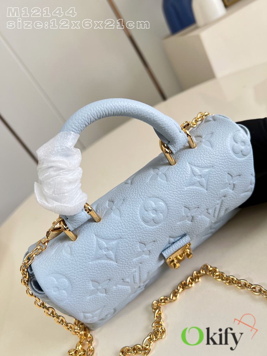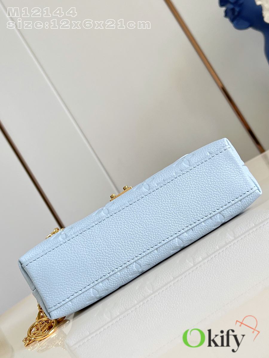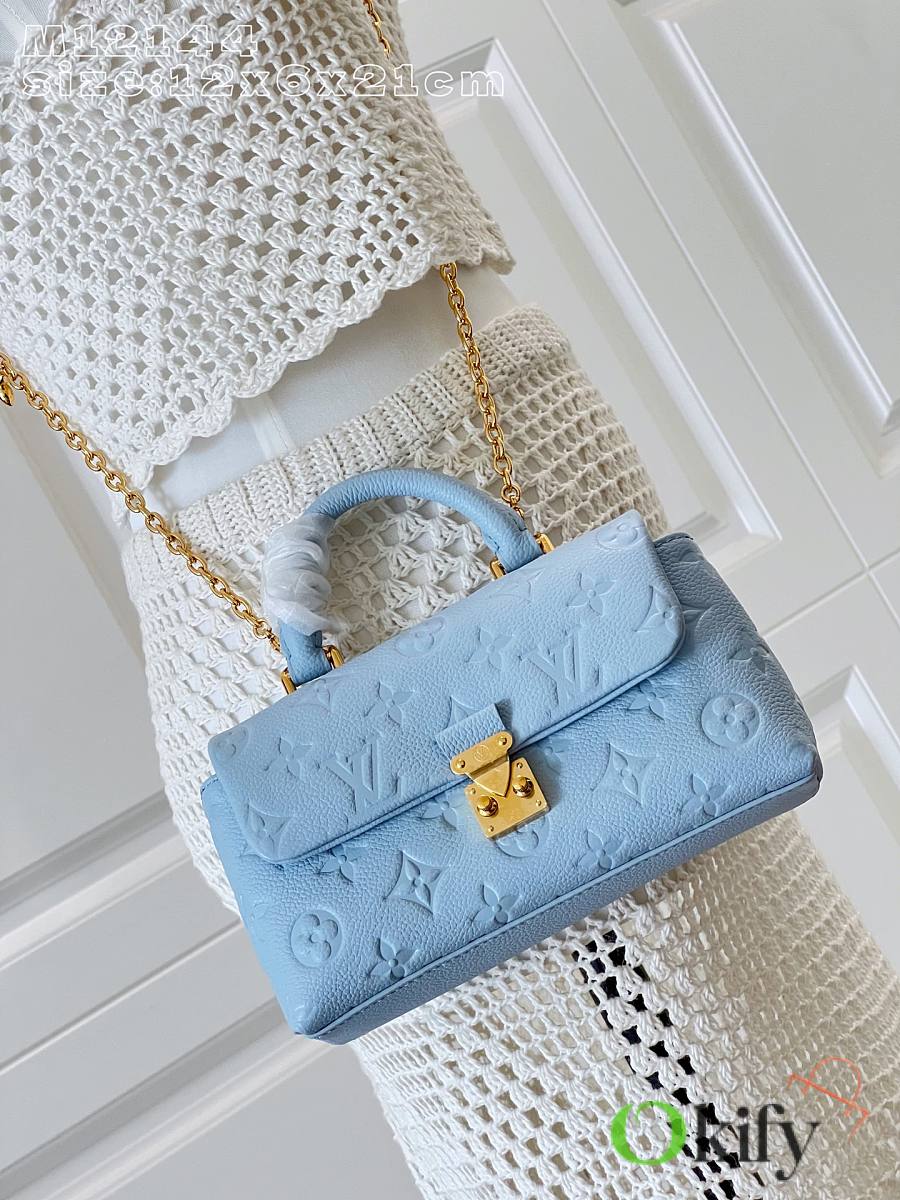 This Nano Madeleine handbag features a graceful design crafted from Monogram Empreinte leather, adorned with an S-lock clasp and chain, and incorporating LV Circle embellishments. It offers flexible storage for everyday essentials and can be carried in multiple ways.