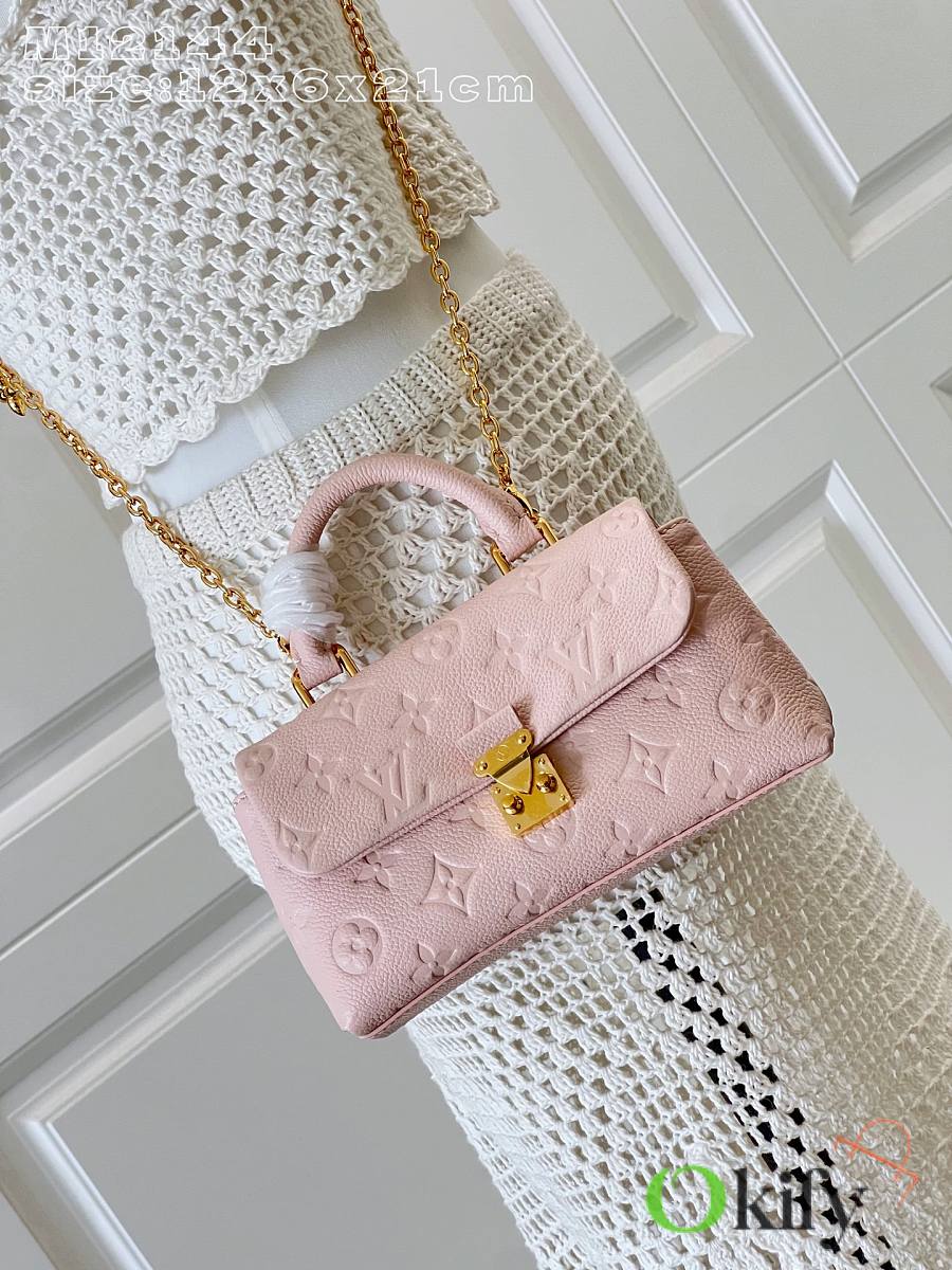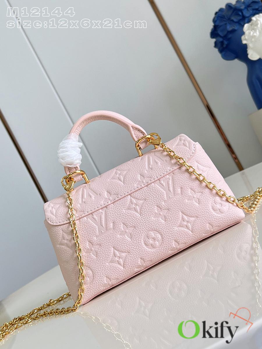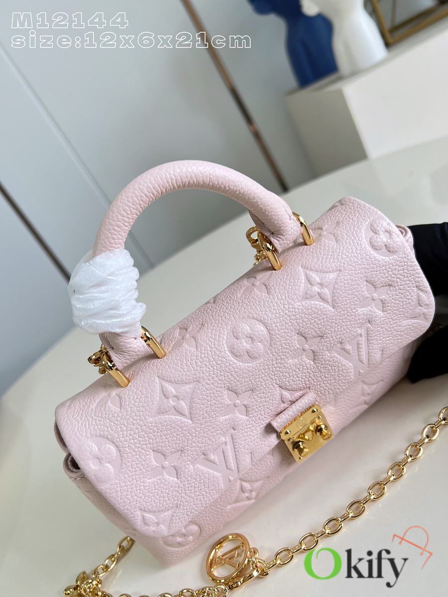 This Nano Madeleine handbag features a graceful design crafted from Monogram Empreinte leather, adorned with an S-lock clasp and chain, and incorporating LV Circle embellishments. It offers flexible storage for everyday essentials and can be carried in multiple ways.
