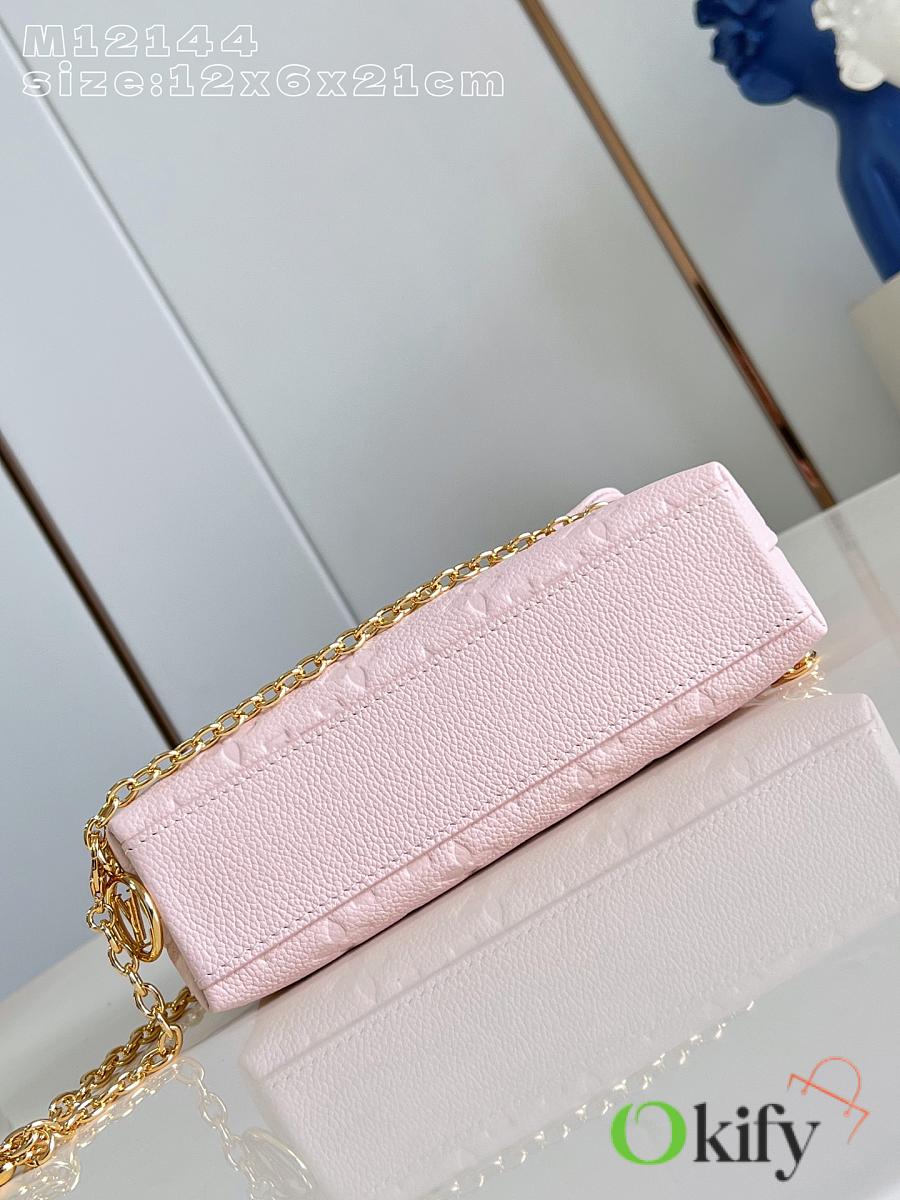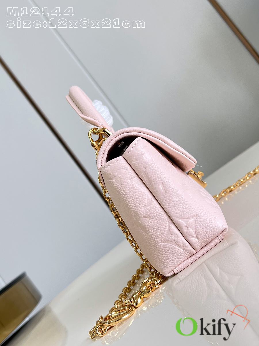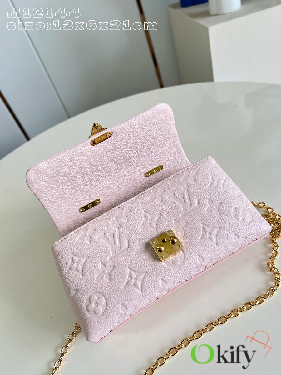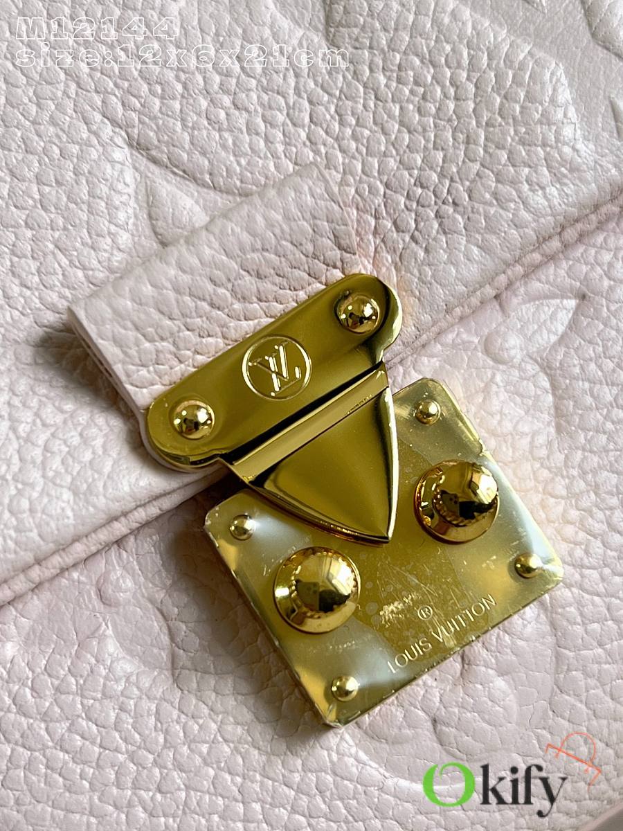 This Nano Madeleine handbag features a graceful design crafted from Monogram Empreinte leather, adorned with an S-lock clasp and chain, and incorporating LV Circle embellishments. It offers flexible storage for everyday essentials and can be carried in multiple ways.