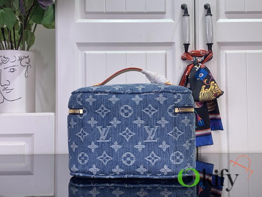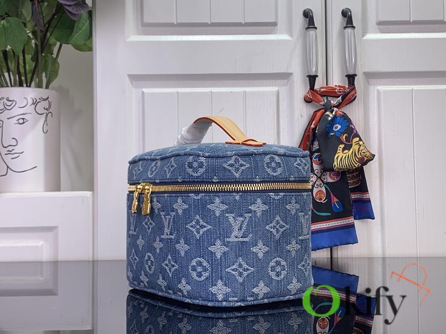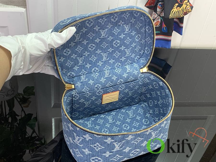 Monogram denim paired with leather and metal hardware infuses this Nice mini cosmetic bag with effortless elegance. Its clever design and practical functionality make it easy to store your beauty essentials for home or travel. An interior slip pocket and washable lining add a touch of practicality to its stylish design.