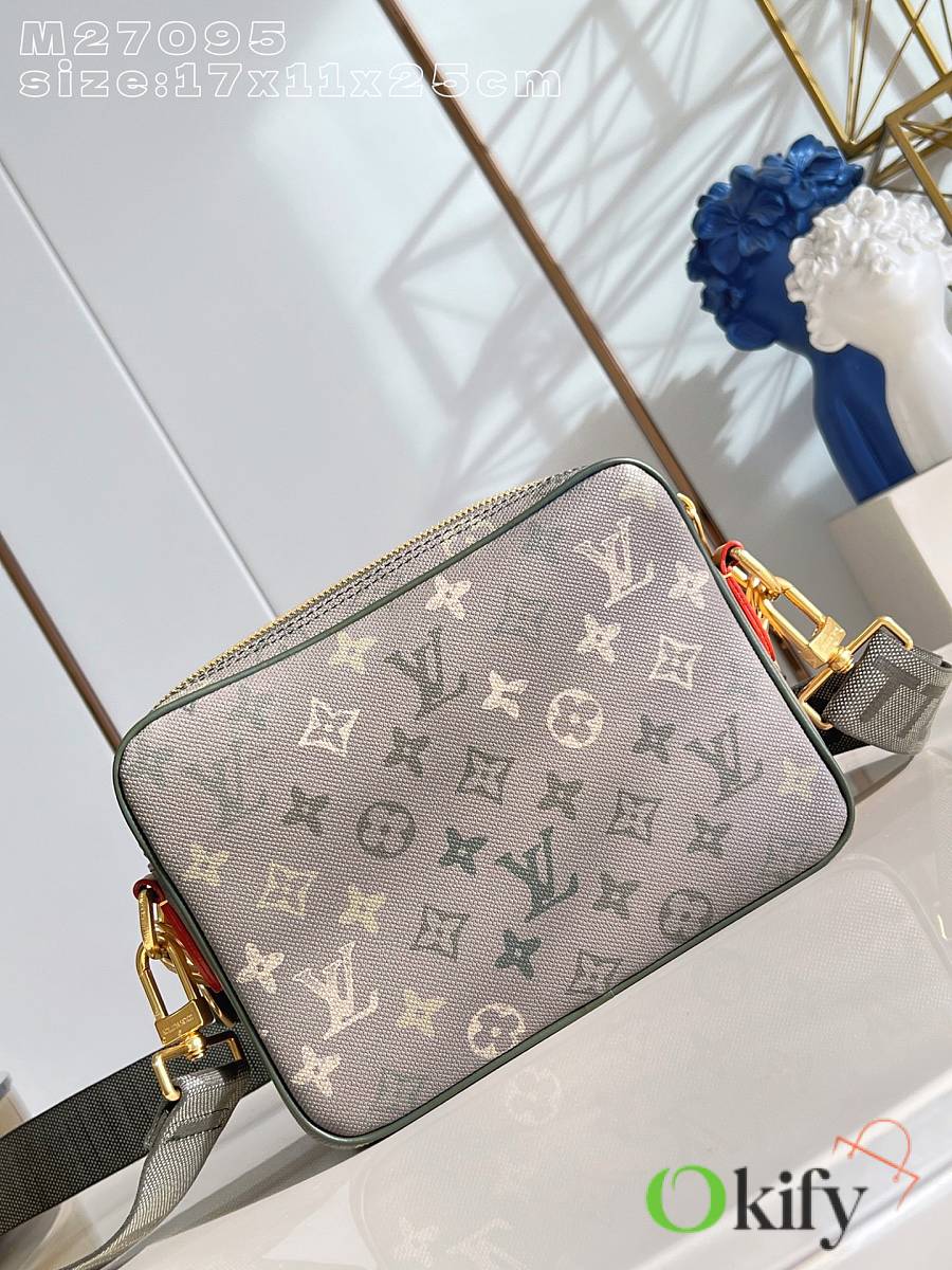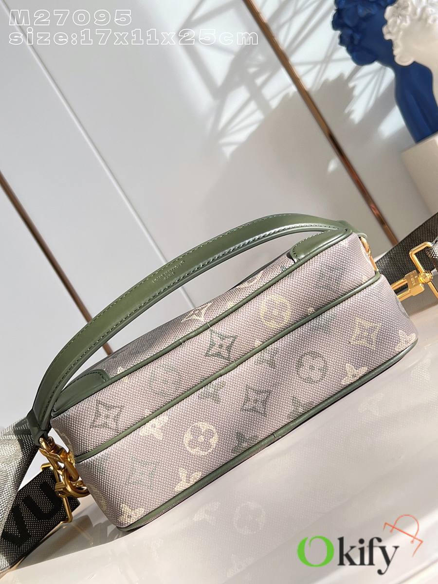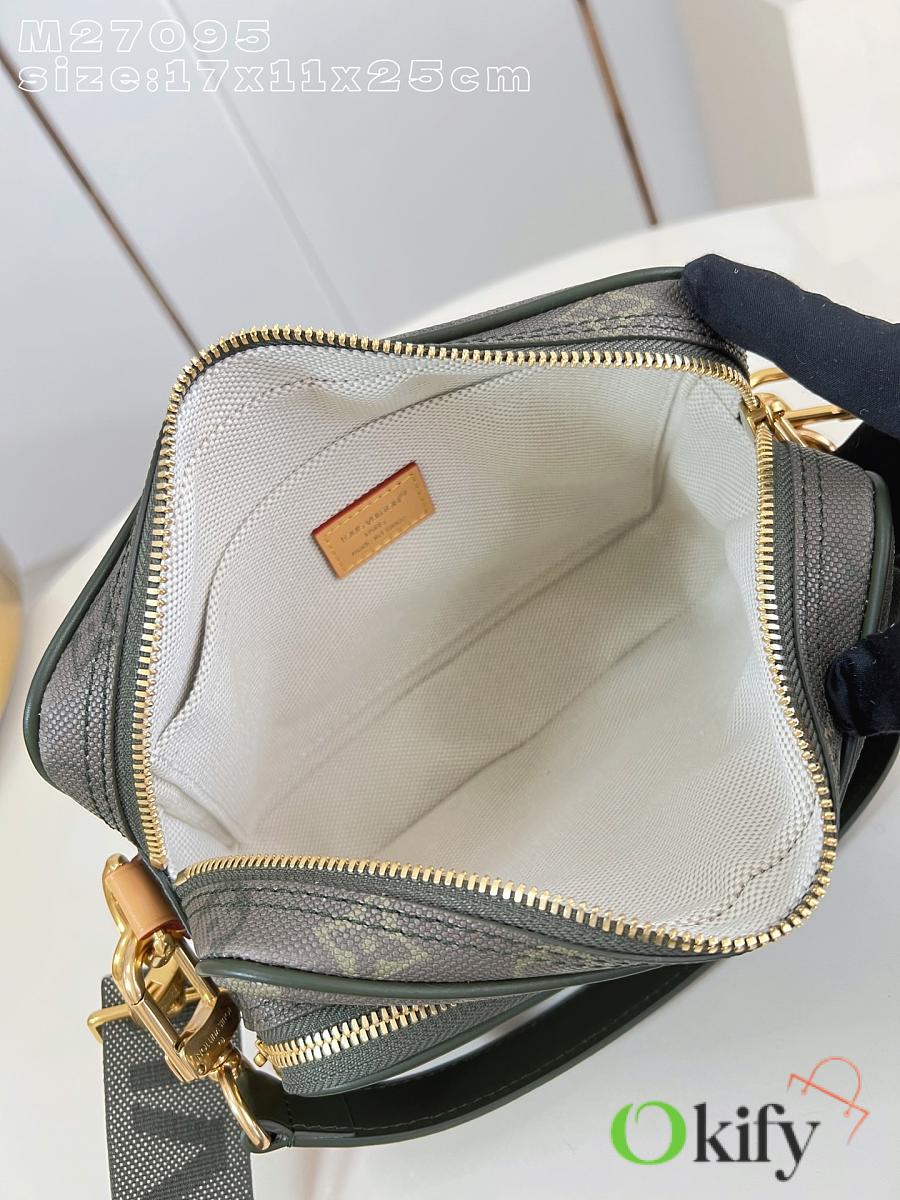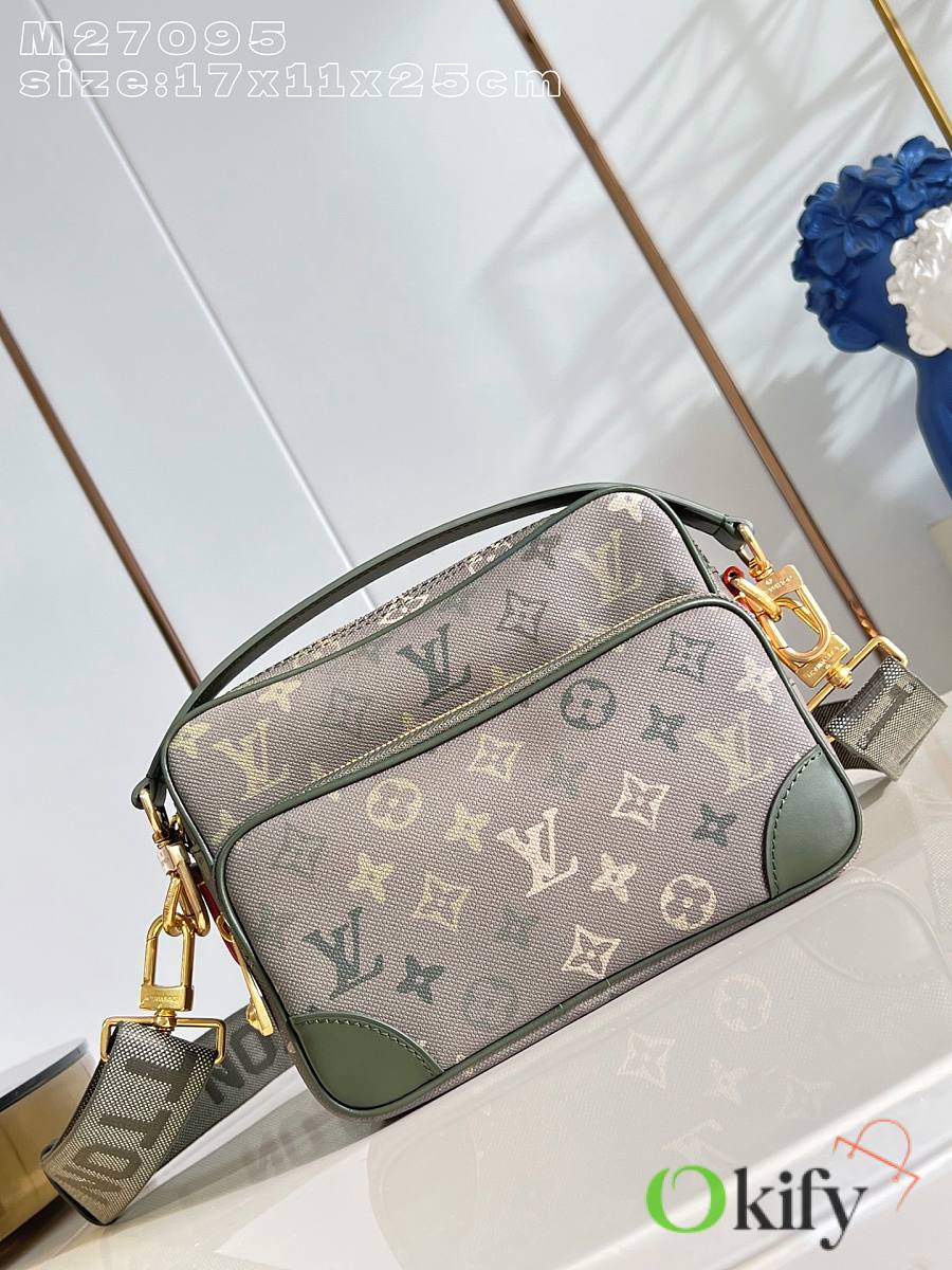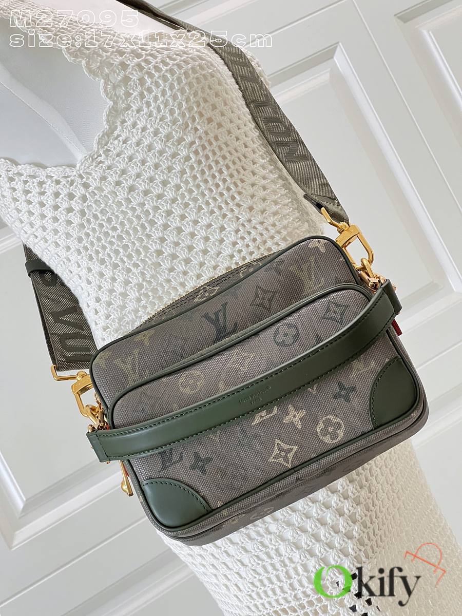 This Nil crossbody bag features a retro design crafted from Monogram Heritage canvas, with a main compartment, interior patch pocket, and zip front pocket. The top leather handle and shoulder strap are detachable, offering versatile carrying options. Front pocket Marque L85963218Vuitton Déposée print added.