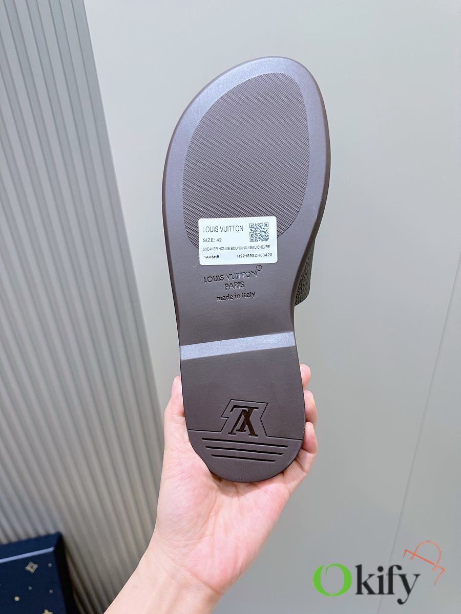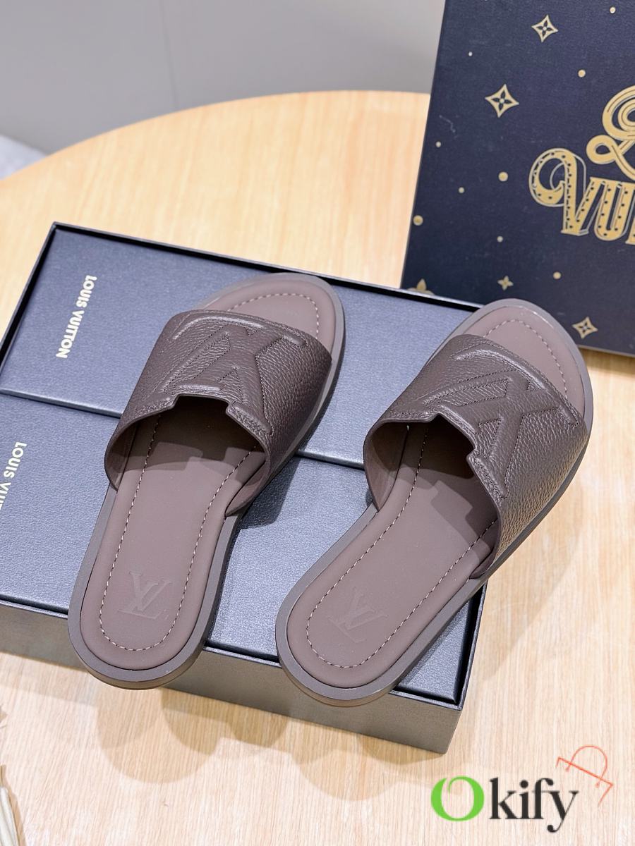 Okify Louis Vuitton Portofino Dark Brown Men Slides