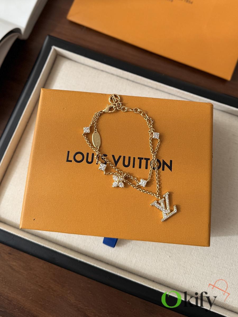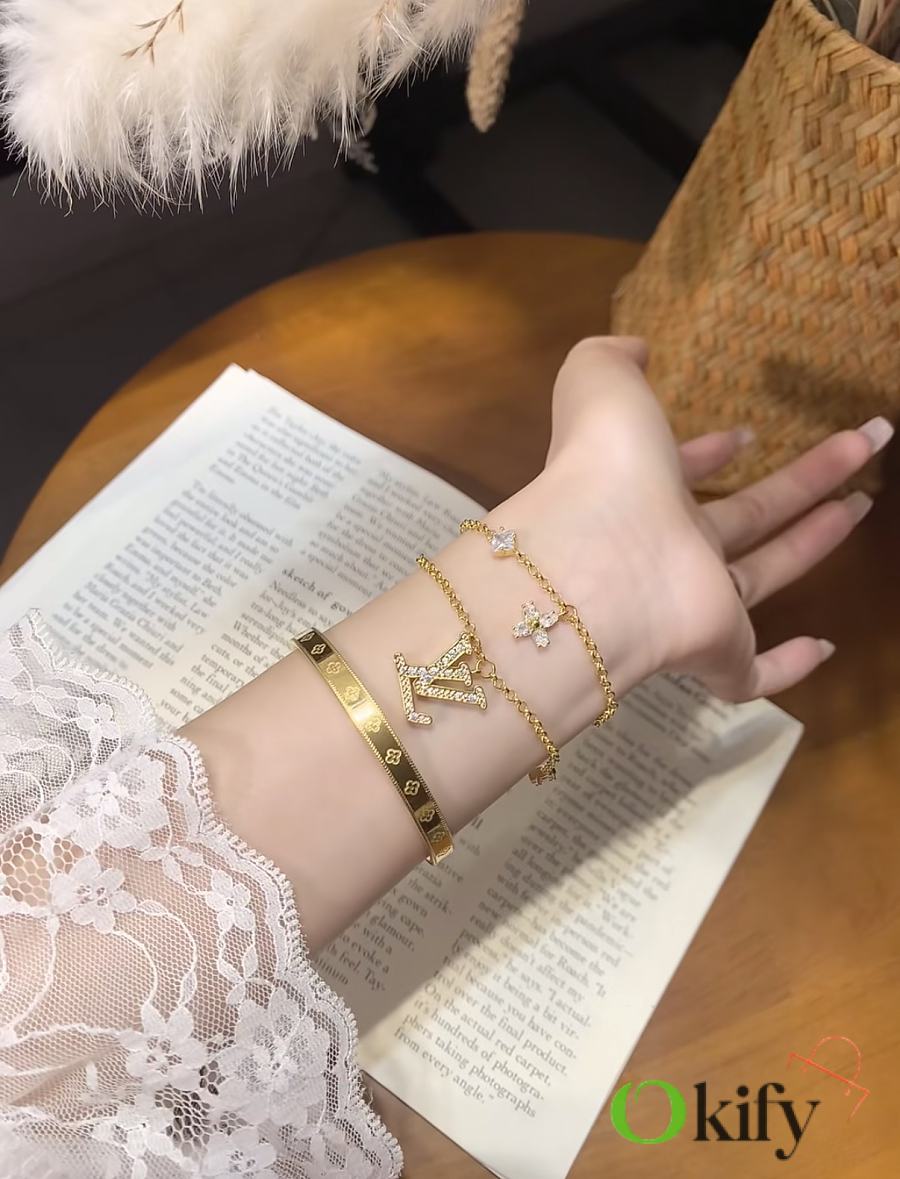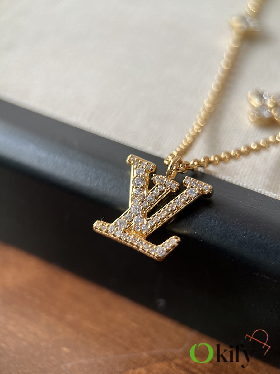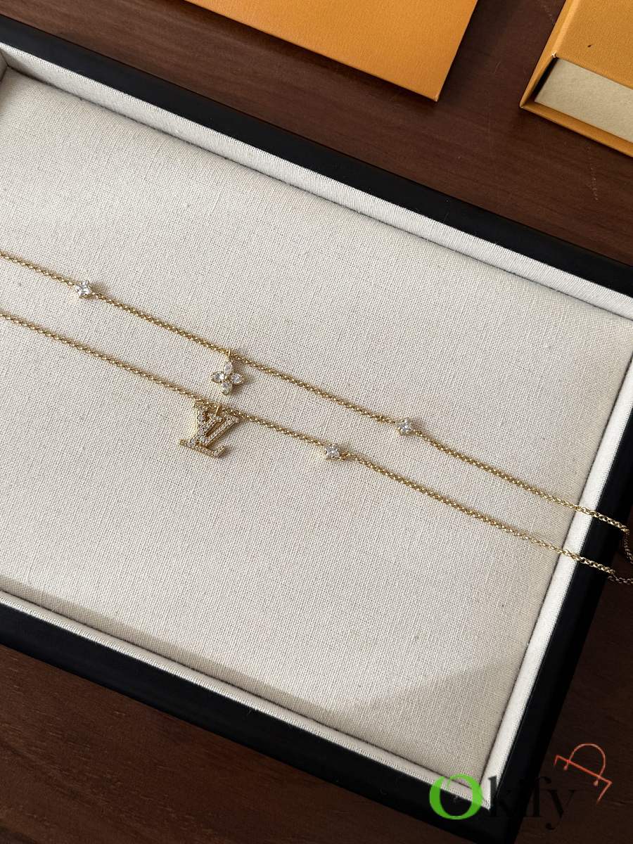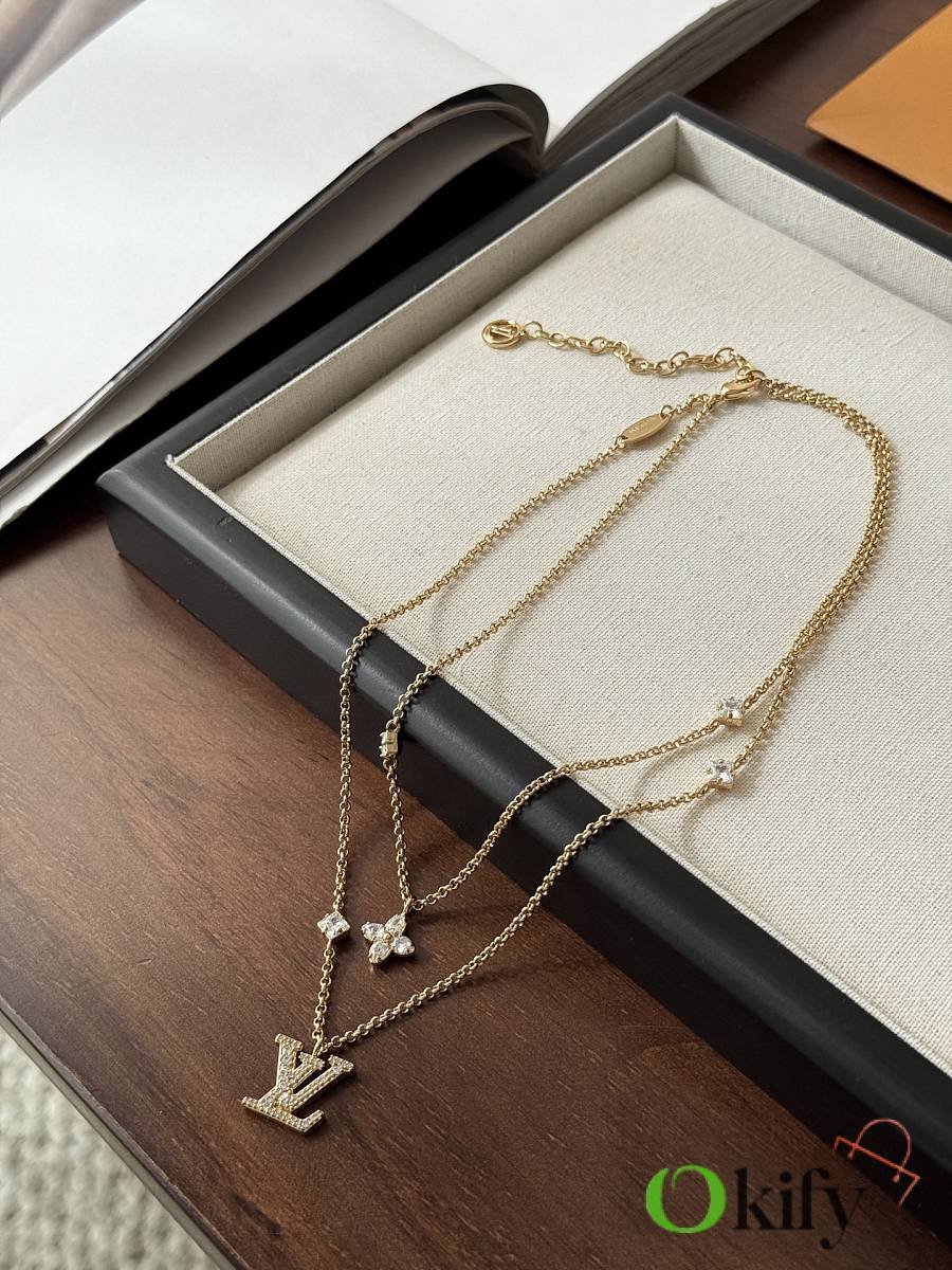 (Bracelet & Necklace) The Lady collection features delicate double chains constructed from dazzling metal, adorned with Monogram, floral, and LV lettering, conveying a sense of purity and feminine charm. Sparkling crystals add a touch of elegance. The entire necklace is made of brass plated with gold, and the 5A grade zircon is made of the same material as those in boutiques. The zircon is extremely sparkly, and the chain also has 4 large zircon. The necklace features a double chain design crafted with lustrous metal. The necklace features a hypoallergenic, nickel-free plating process with a 0.3mm thick gold plating. It also undergoes a wear-resistant and hardening treatment before leaving the factory, ensuring it won't easily fade! Necklace size 35-41cm adjustable