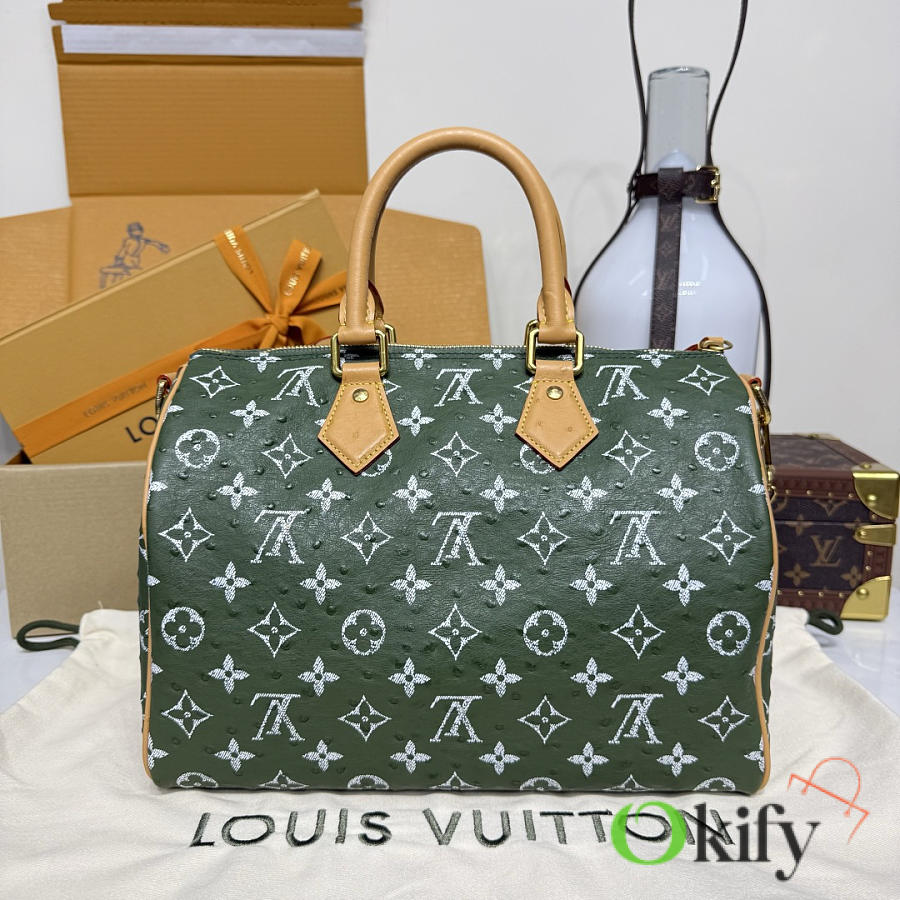 Okify Louis Vuitton Speedy Bag In Green Ostrich M21122 32x18x22.5cm