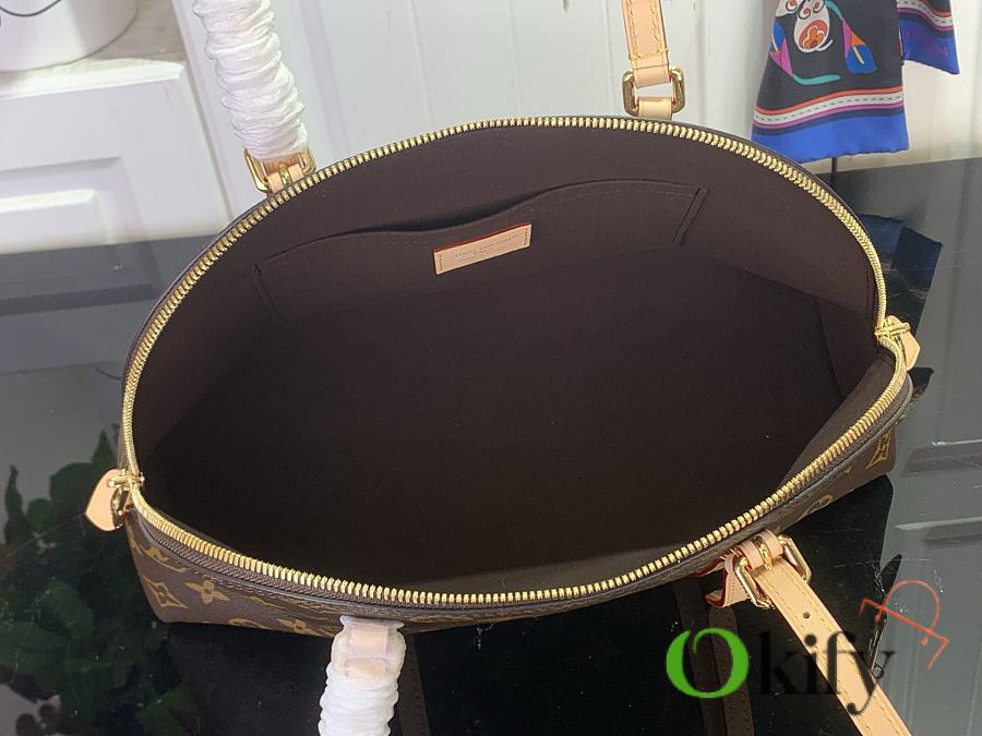 This Squire handbag pays homage to the Alma handbag, its predecessor born in 1934, and is designed for urban commuting with Monogram canvas and cowhide leather trim. Its perfect size can accommodate a tablet and other everyday essentials, while the striking padlock and other metal hardware echo the brand's traditional trunk elements.