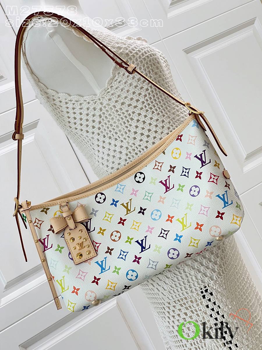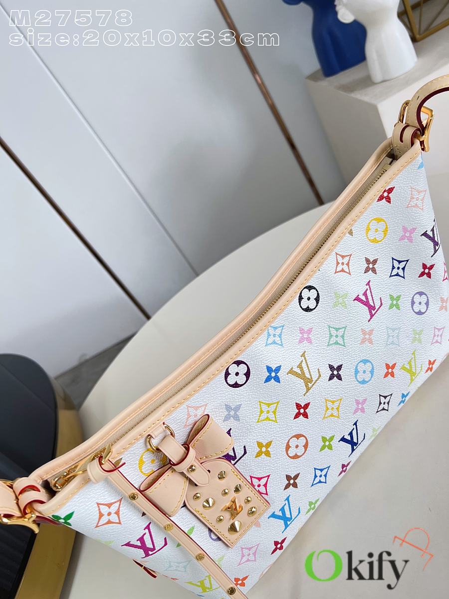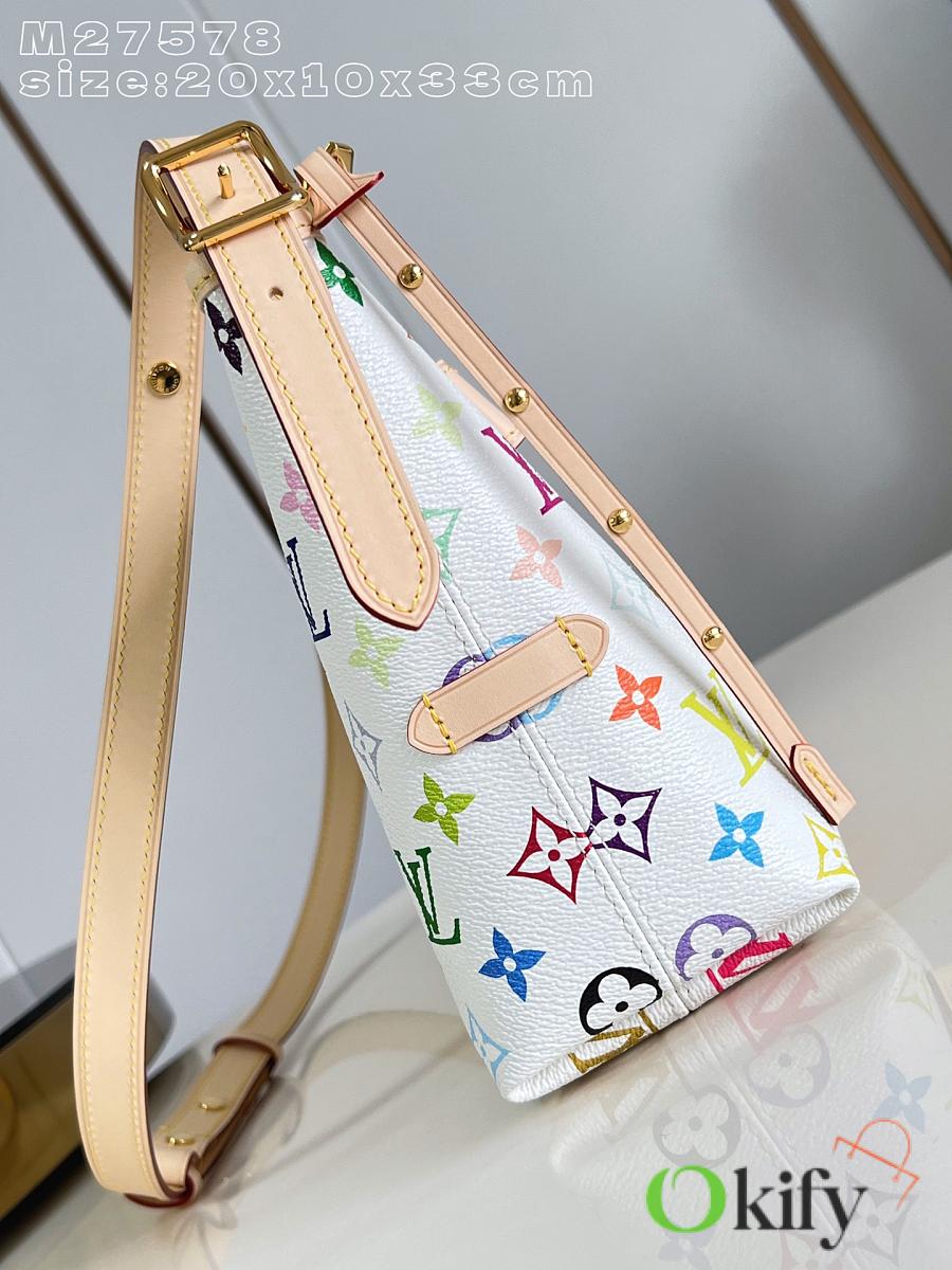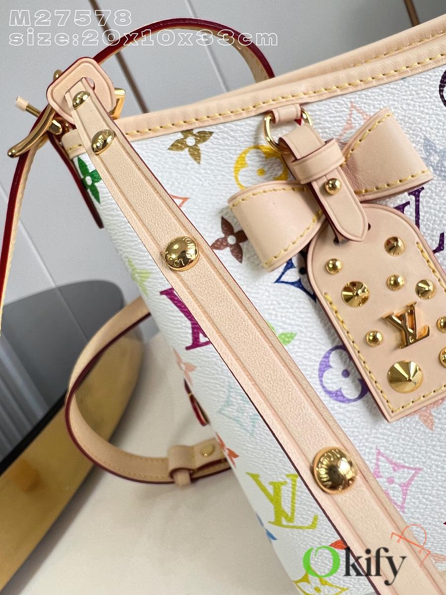 This LV x TM Carryall East West handbag is from the Louis Vuitton x Takashi Murakami reissue collection. It cleverly incorporates the bright colors of the Japanese artist into Monogram coated canvas. Calfskin trim outlines a fitted silhouette, while the nameplate embellishes with an elegant bow detail.