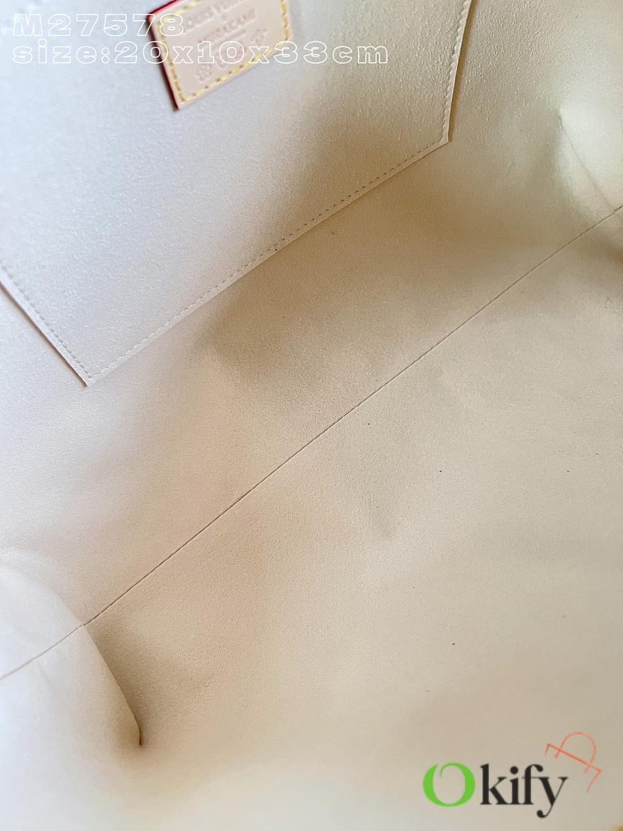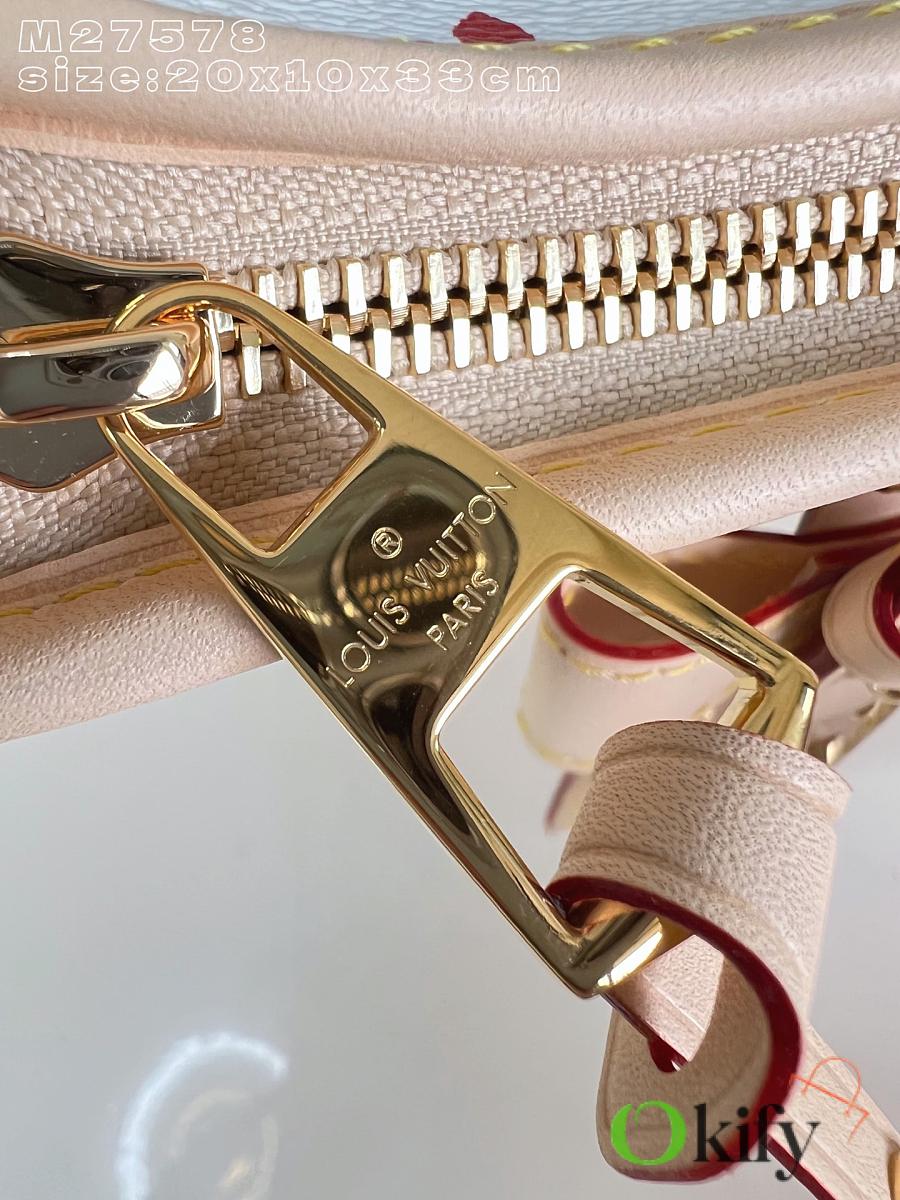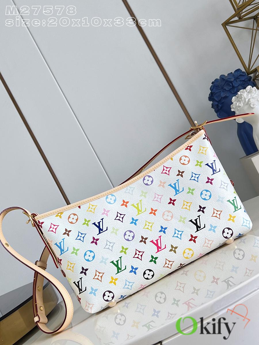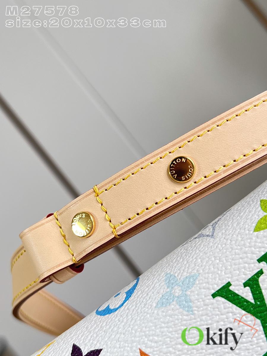This LV x TM Carryall East West handbag is from the Louis Vuitton x Takashi Murakami reissue collection. It cleverly incorporates the bright colors of the Japanese artist into Monogram coated canvas. Calfskin trim outlines a fitted silhouette, while the nameplate embellishes with an elegant bow detail.