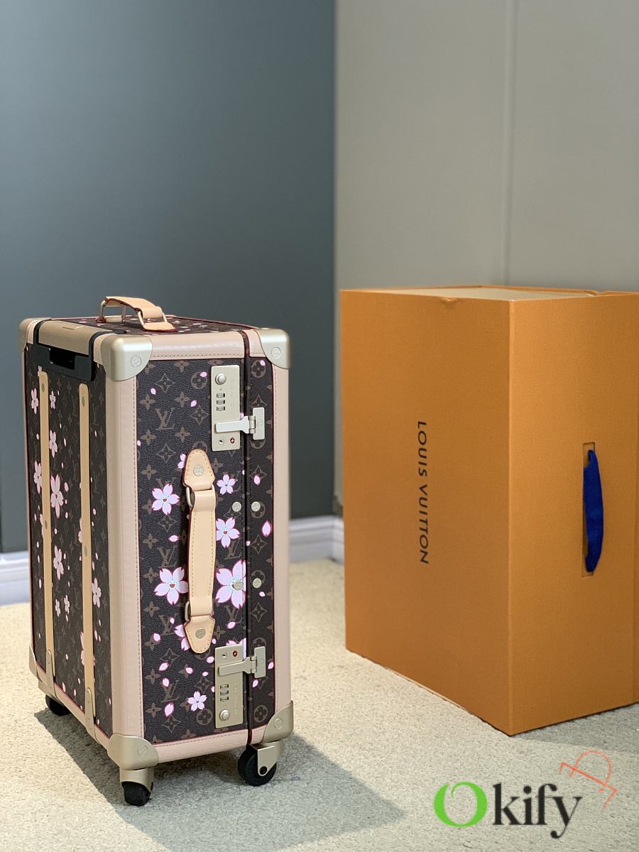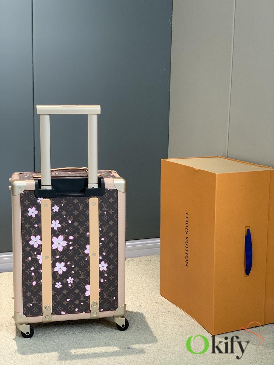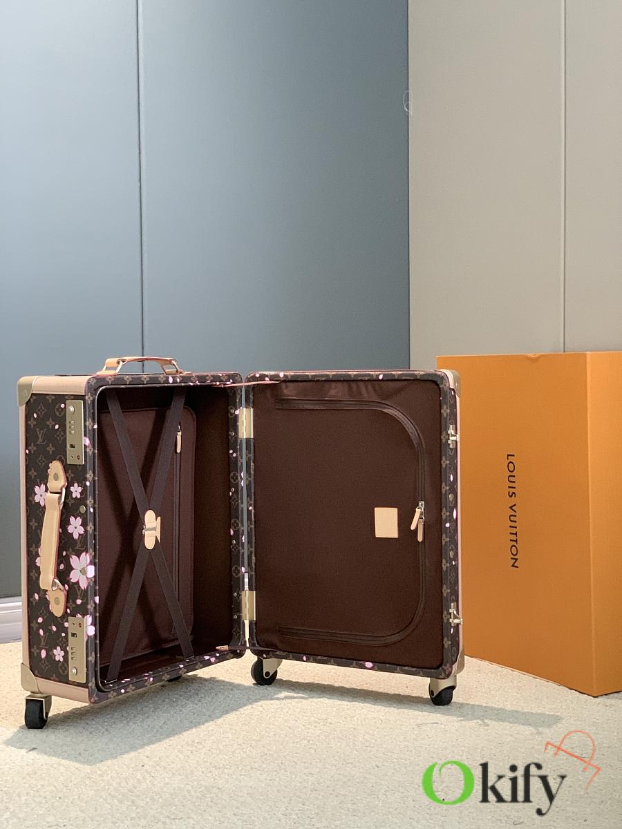 The Rolling Trunk suitcase is made of Monogram canvas and leather, with reinforced corners,
