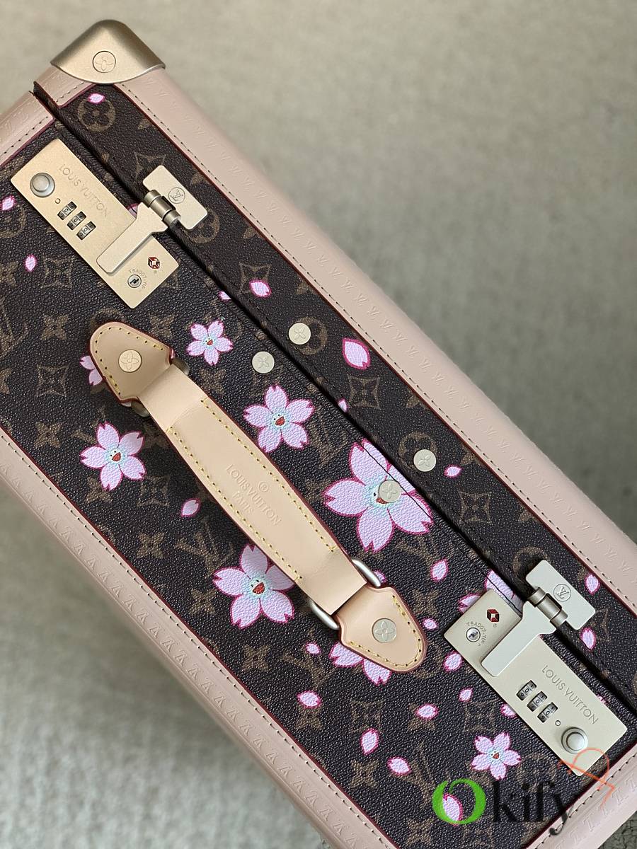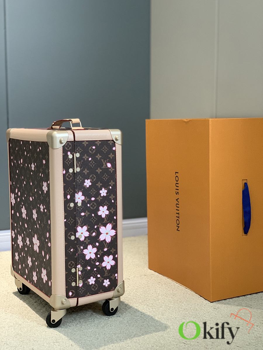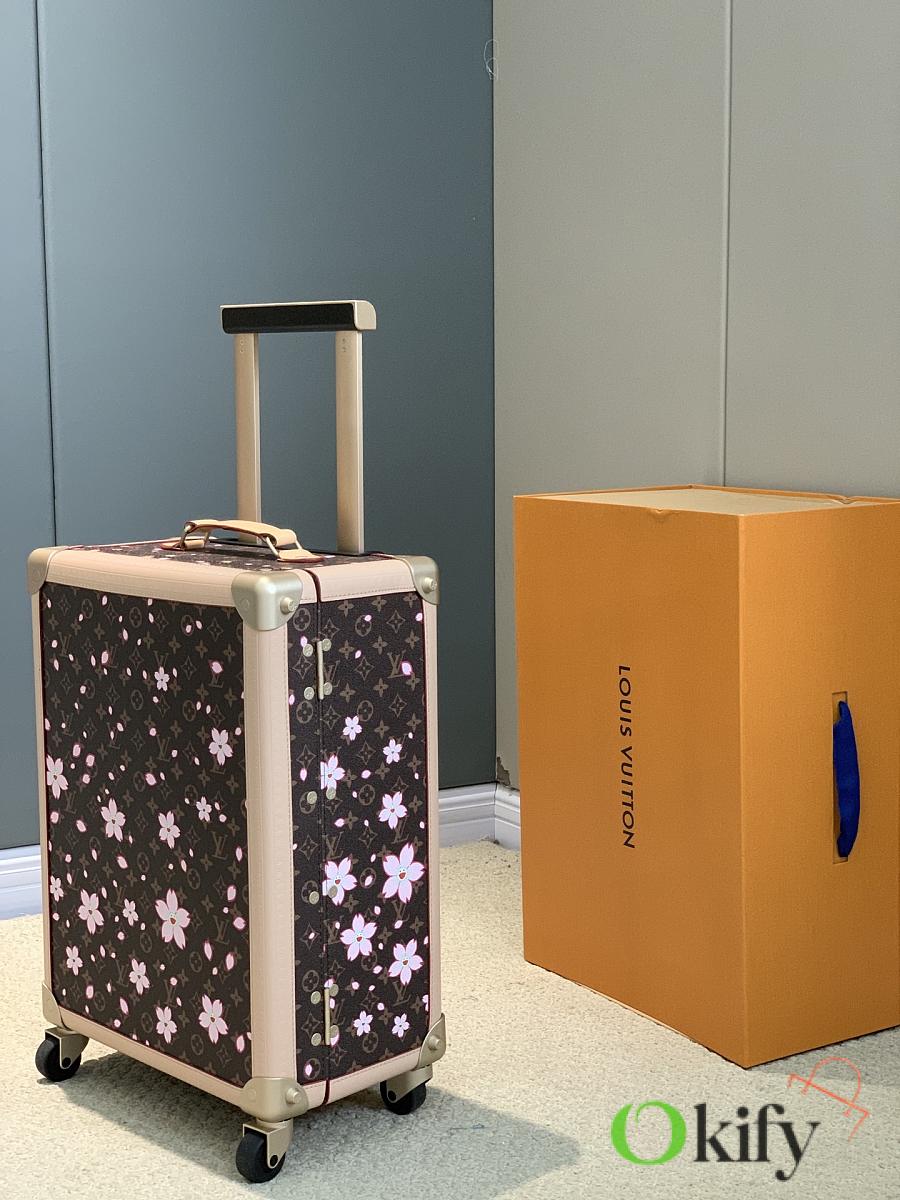 The Rolling Trunk suitcase is made of Monogram canvas and leather, with reinforced corners,