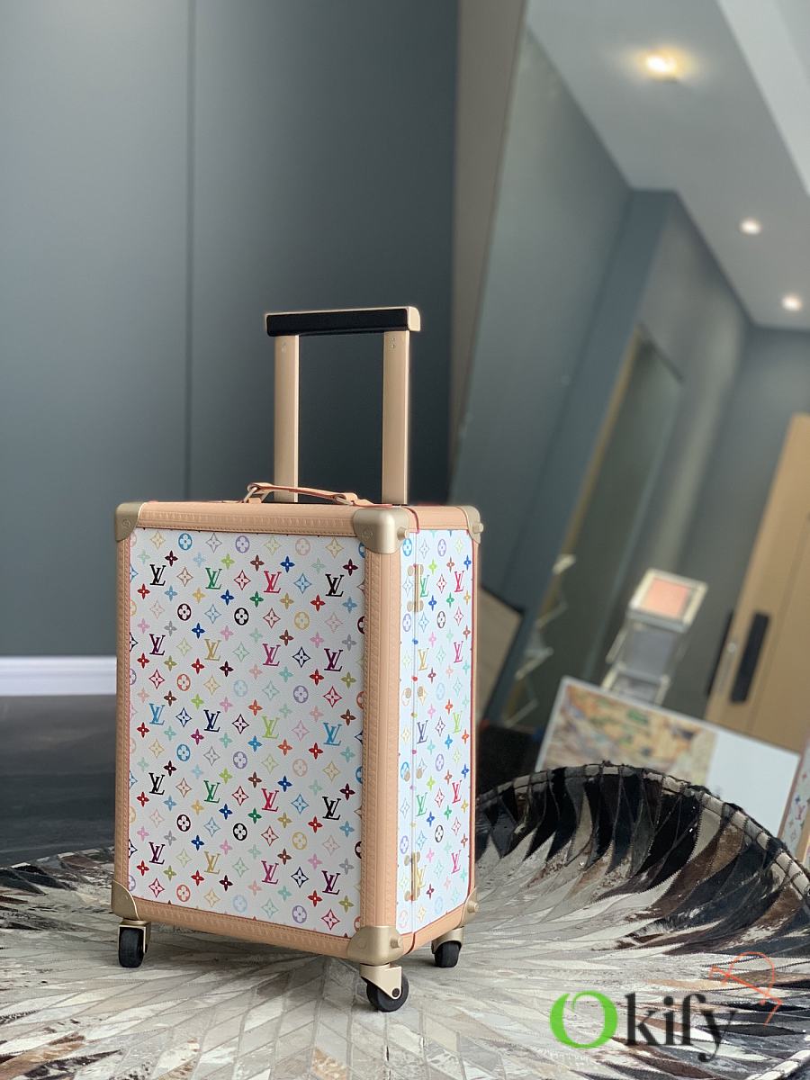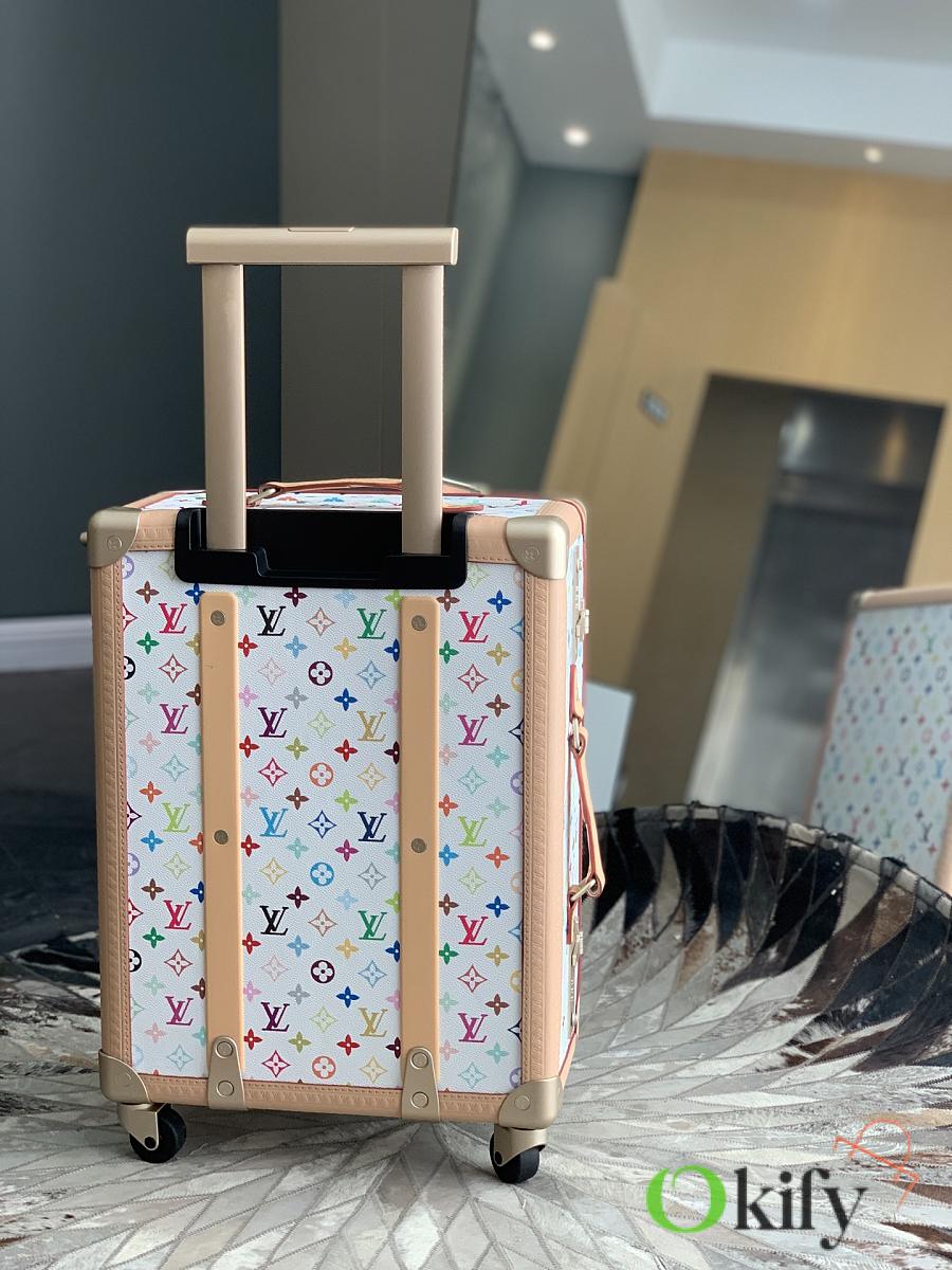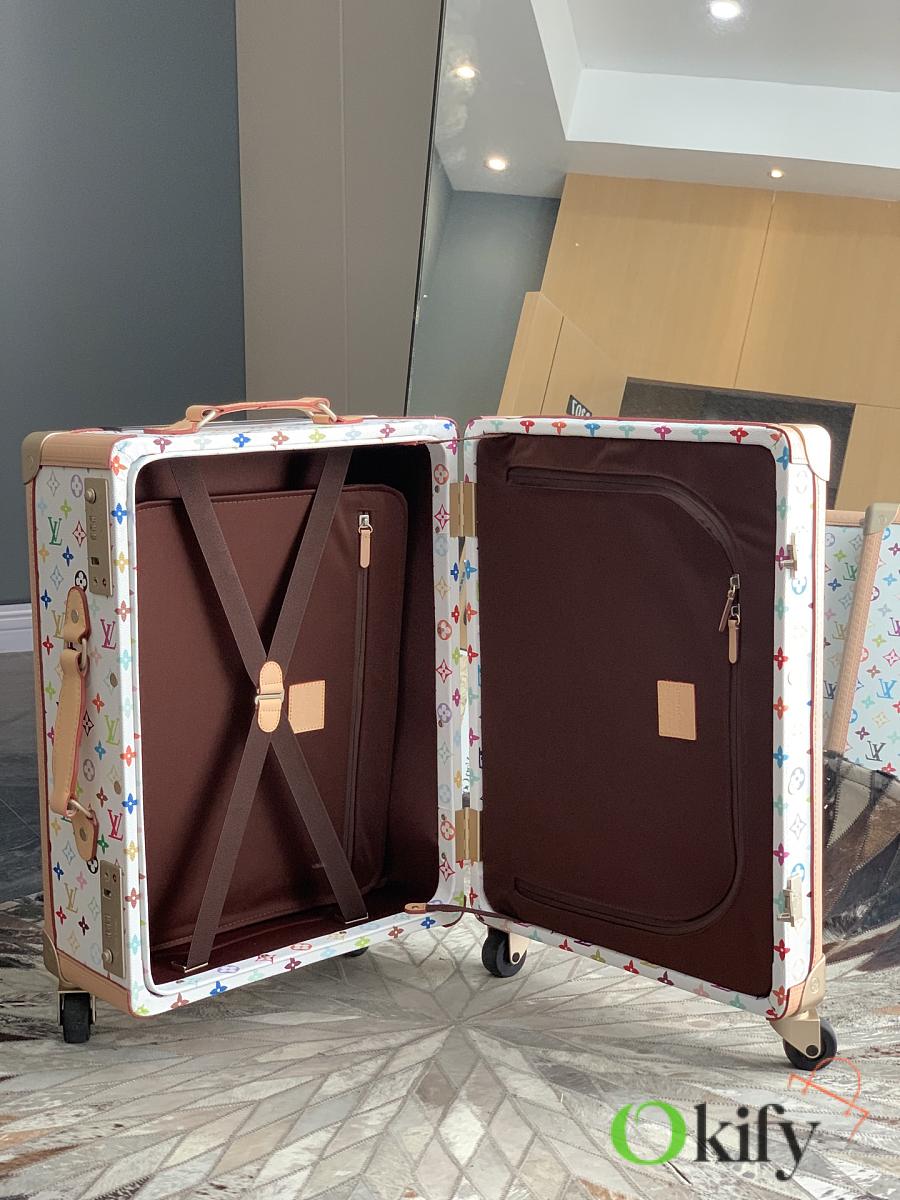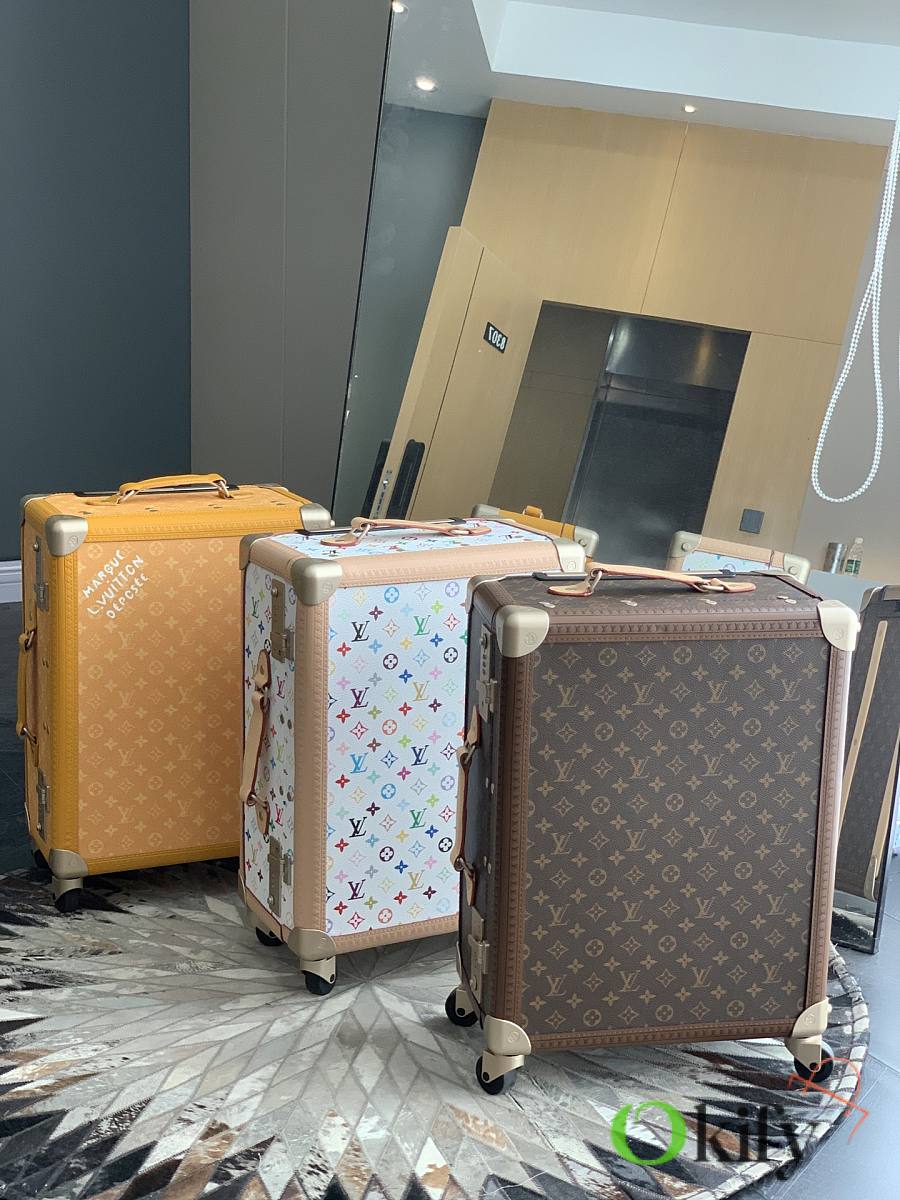 The Rolling Trunk suitcase is made of Monogram canvas and leather, with reinforced corners,