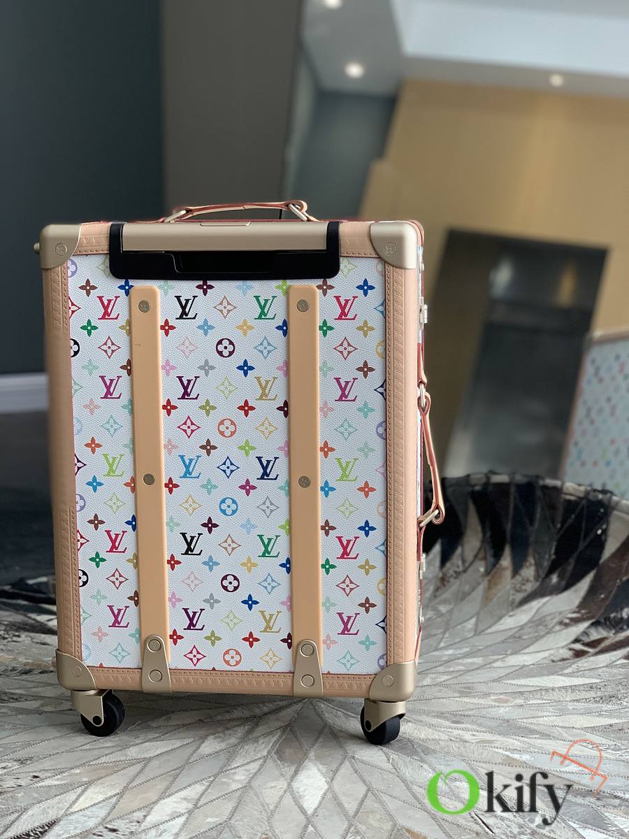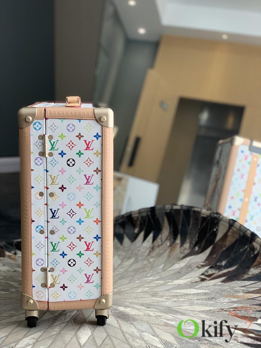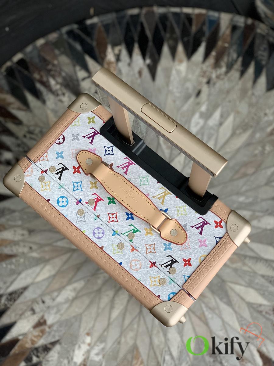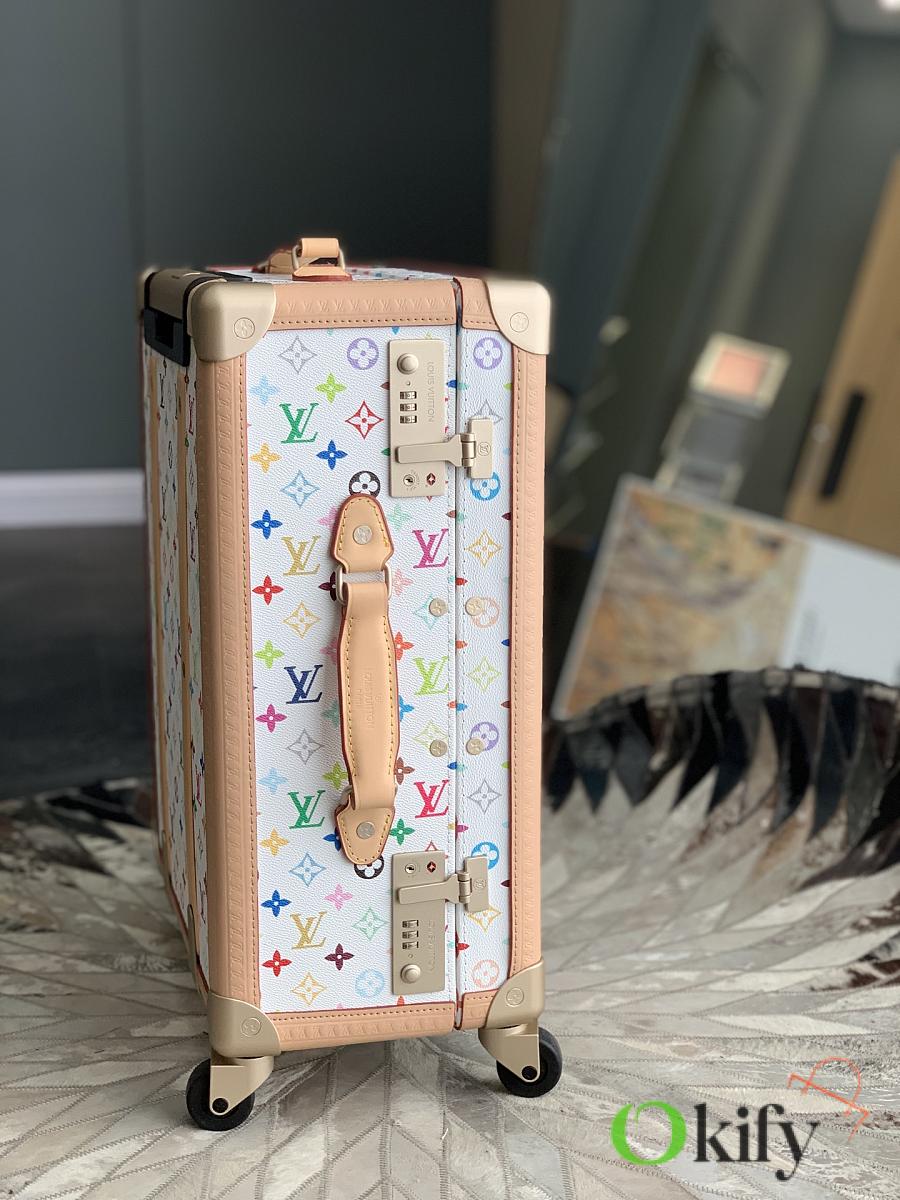 The Rolling Trunk suitcase is made of Monogram canvas and leather, with reinforced corners,