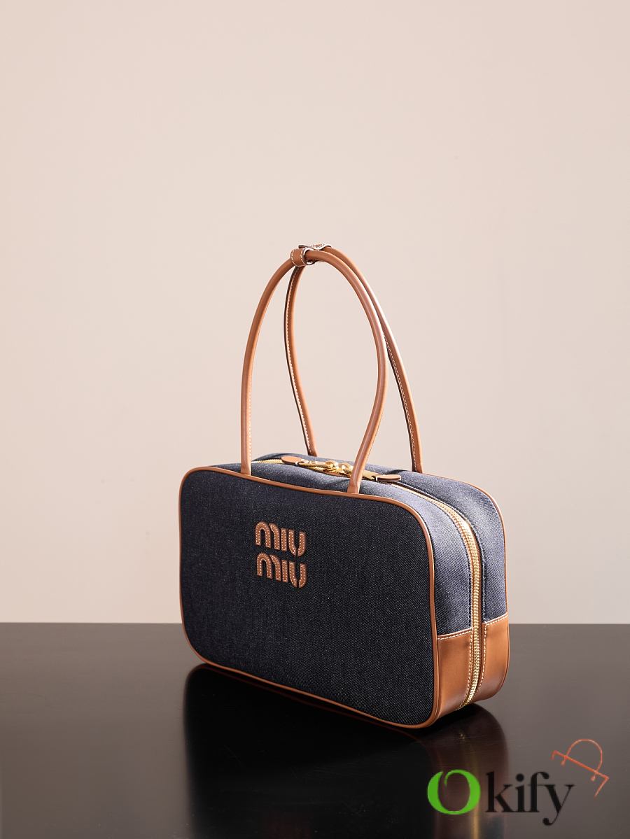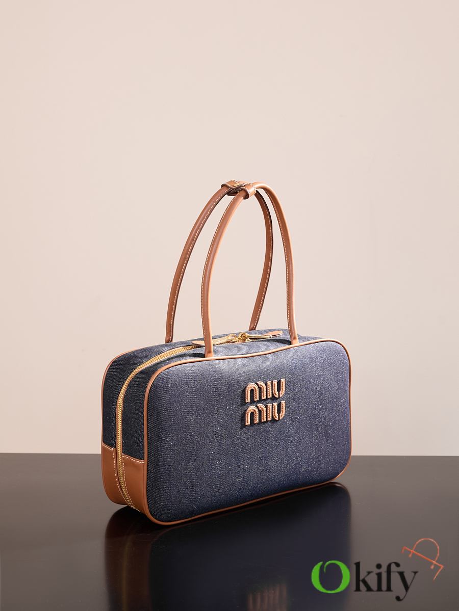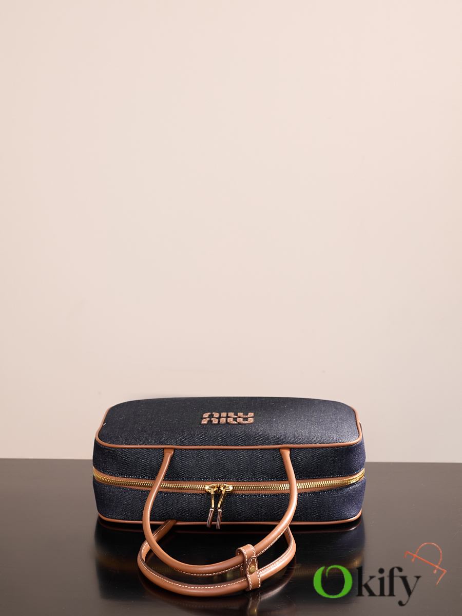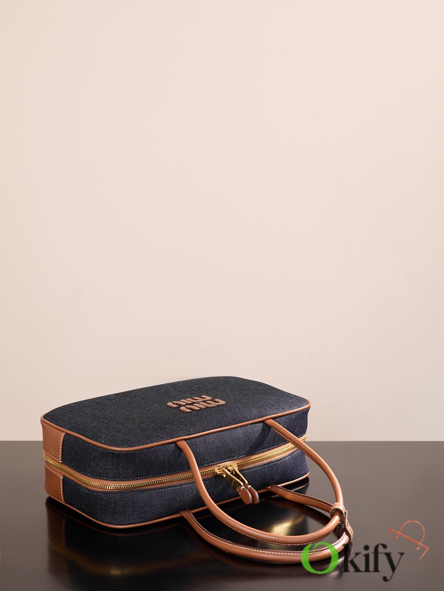 The denim blue texture and exquisite details complement each other Lined with double zippered pockets Combining retro and sporty styles Large capacity