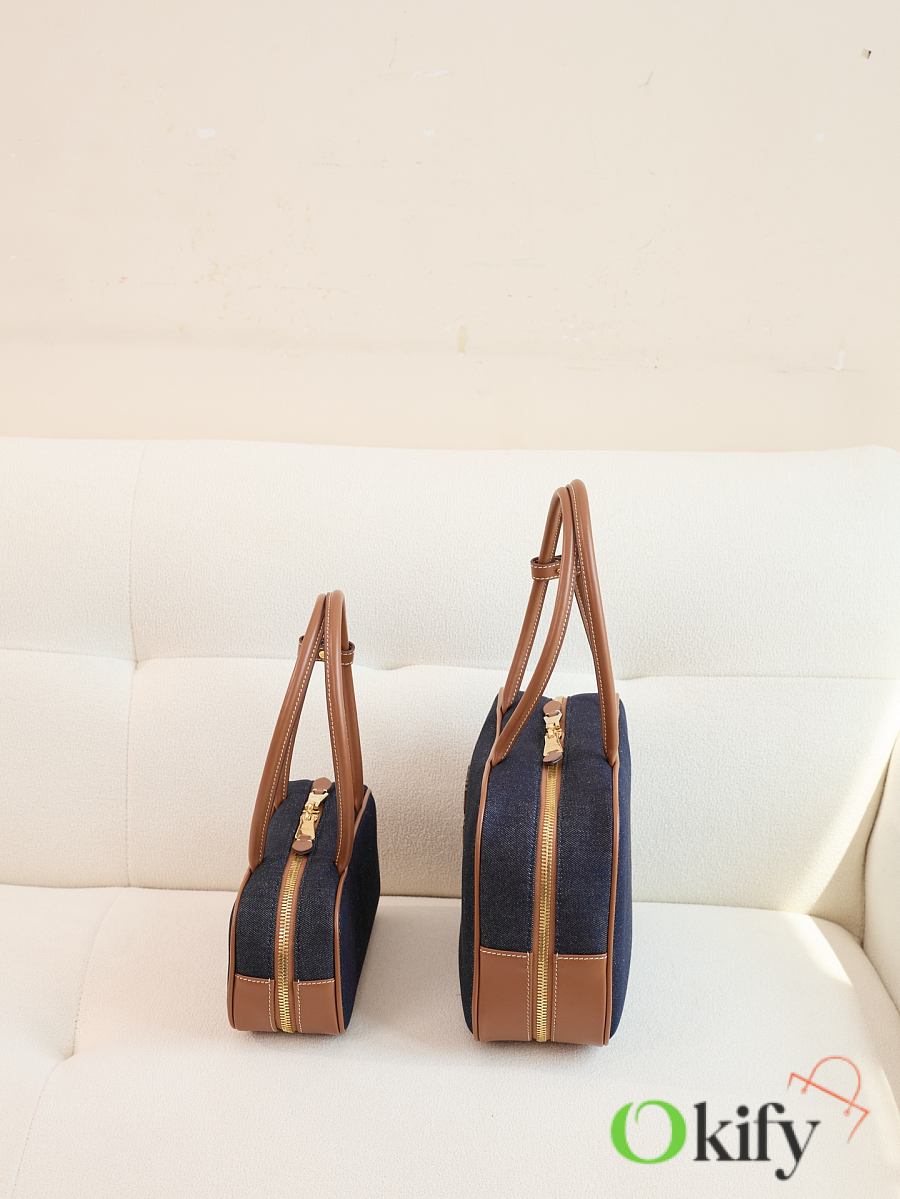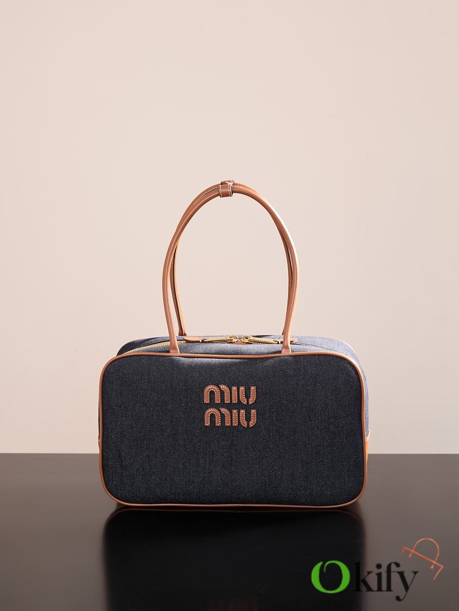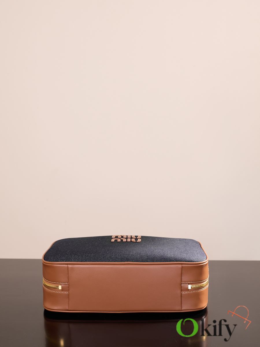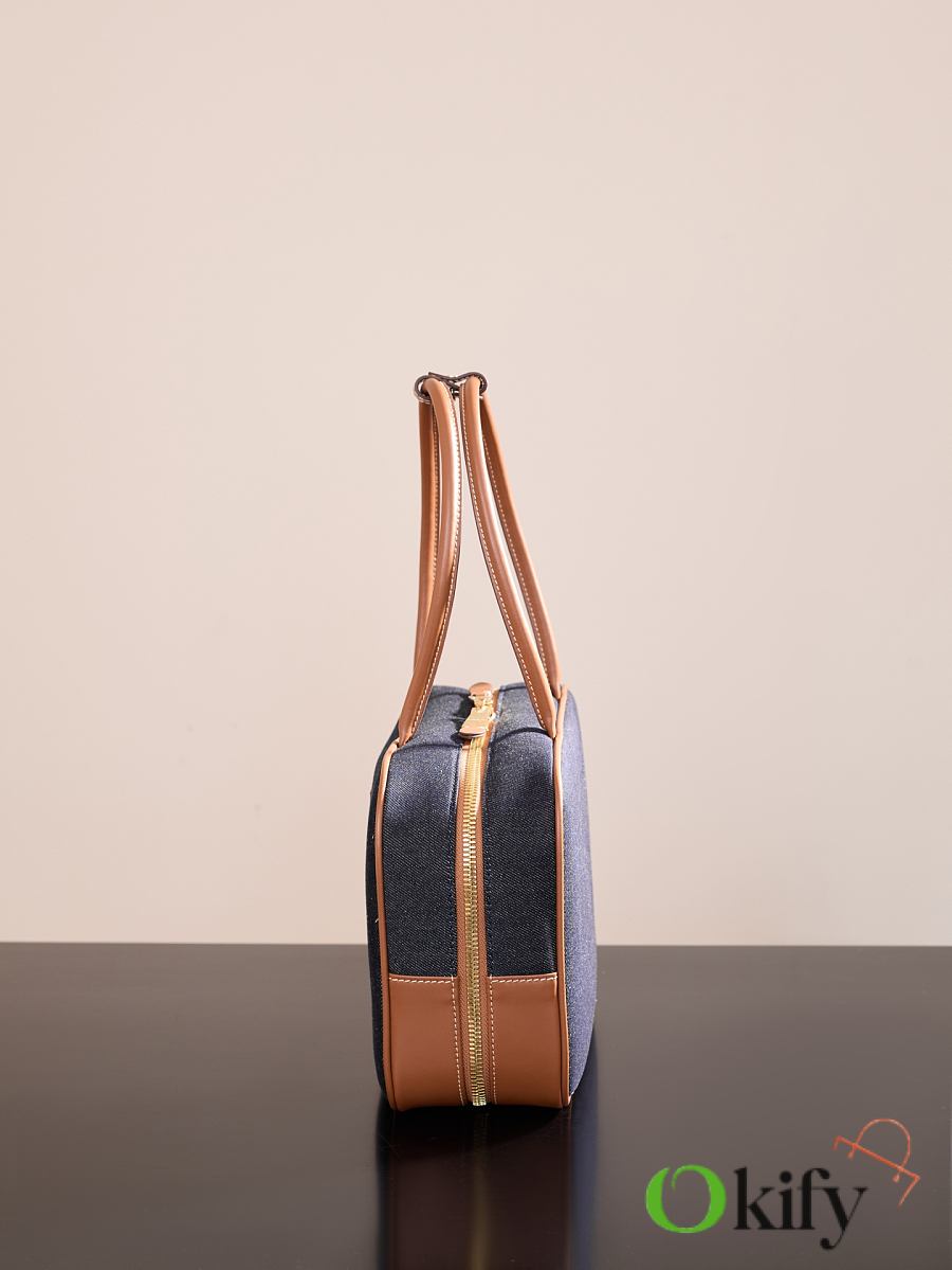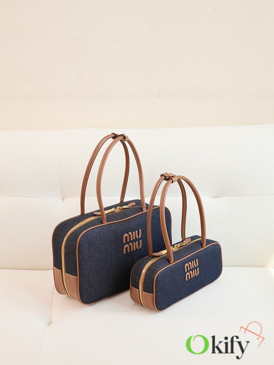 The denim blue texture and exquisite details complement each other Lined with double zippered pockets Combining retro and sporty styles Large capacity
