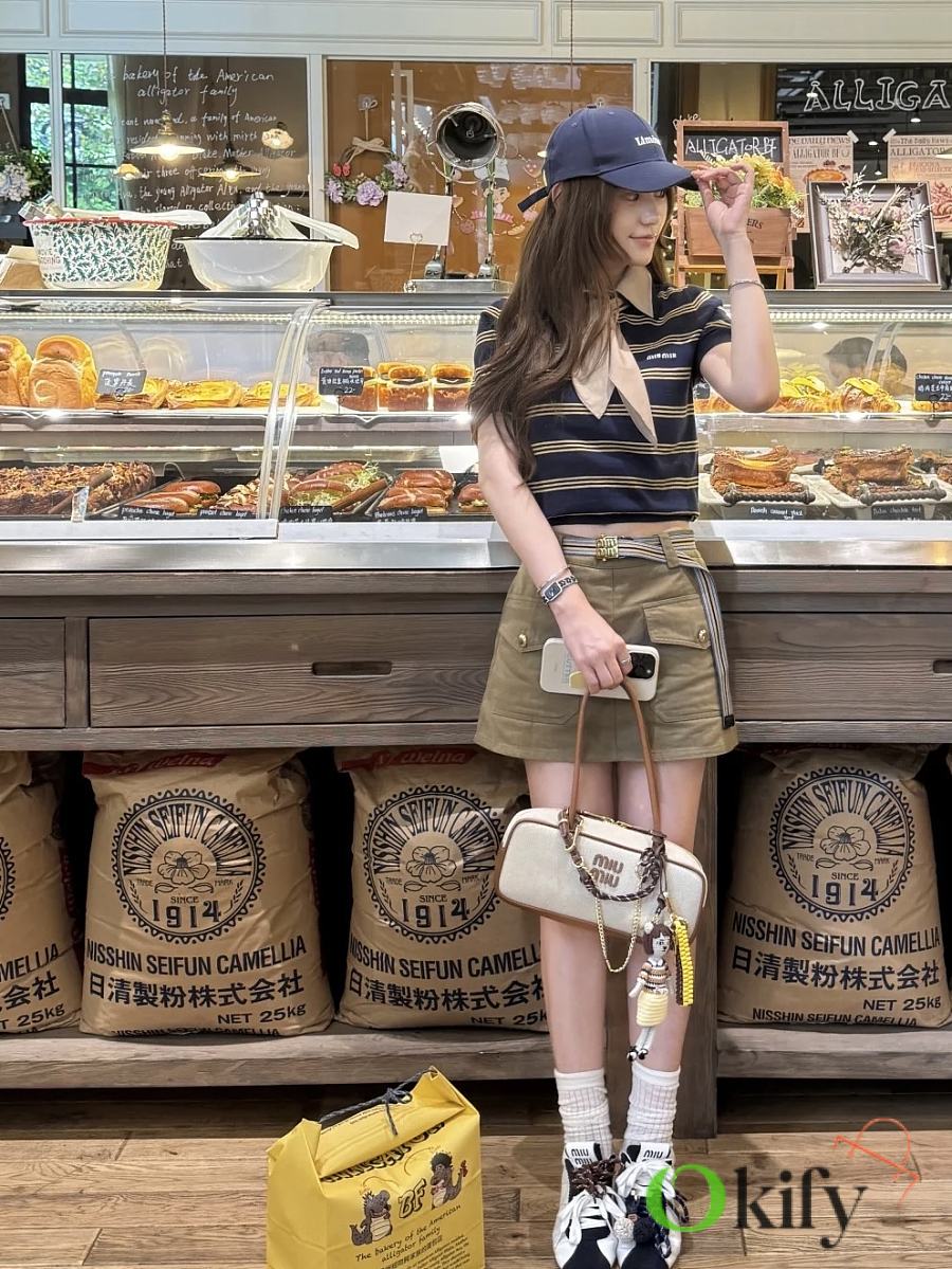 Okify MiuMiu Beau Small Canvas And Leather Bag 28x11.5x8cm