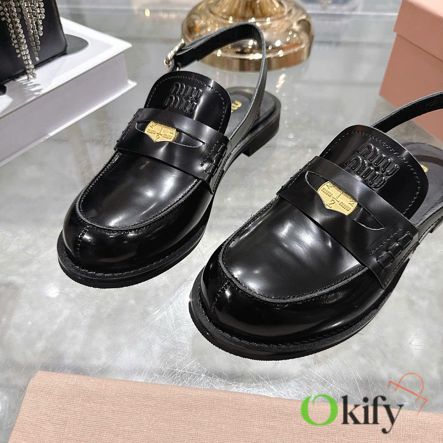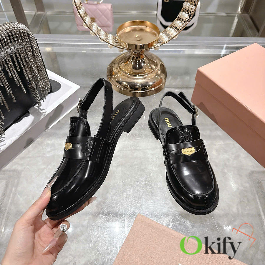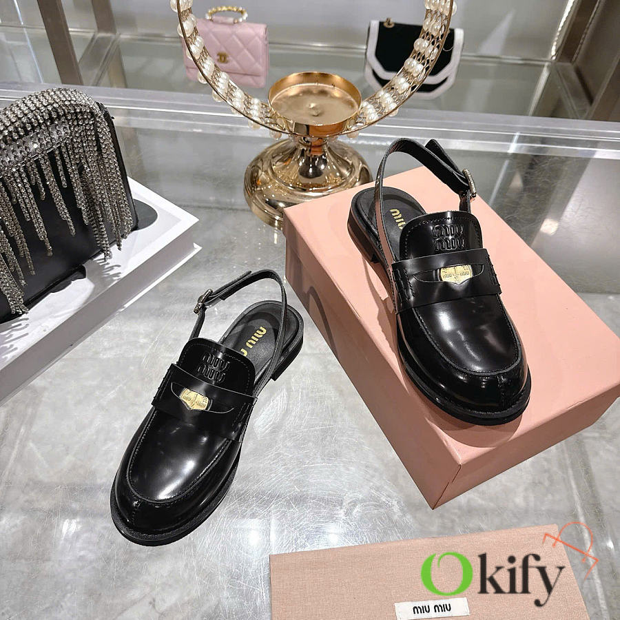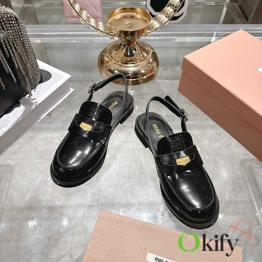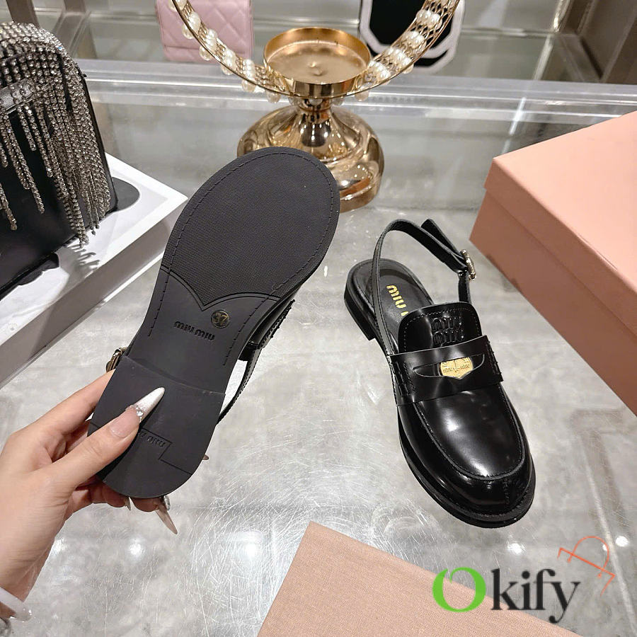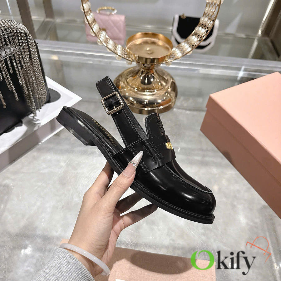Okify MiuMiu Black Women Slingback Loafers 2.5cm