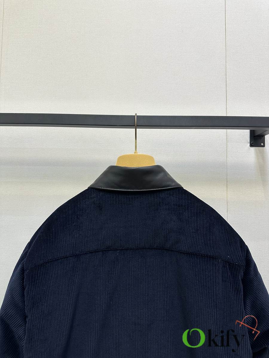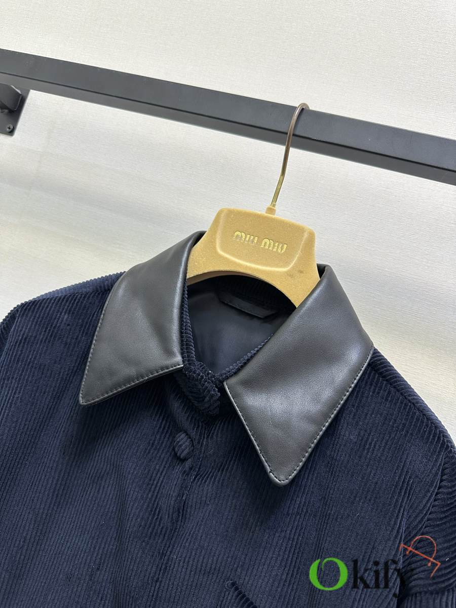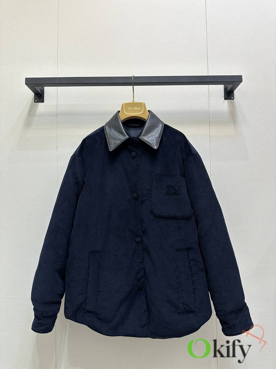 Okify MiuMiu Dark Blue Bomber Jacket With Polo Colar
