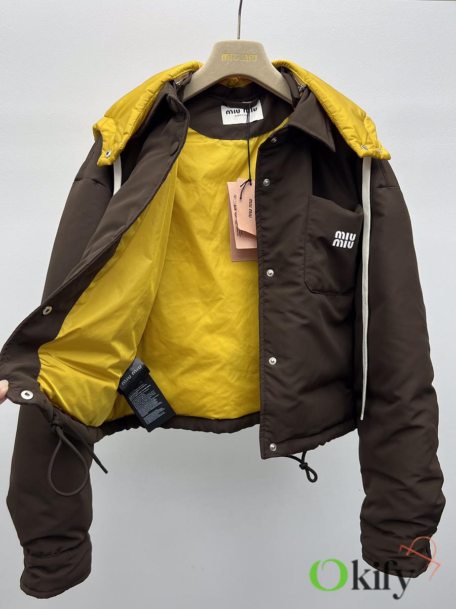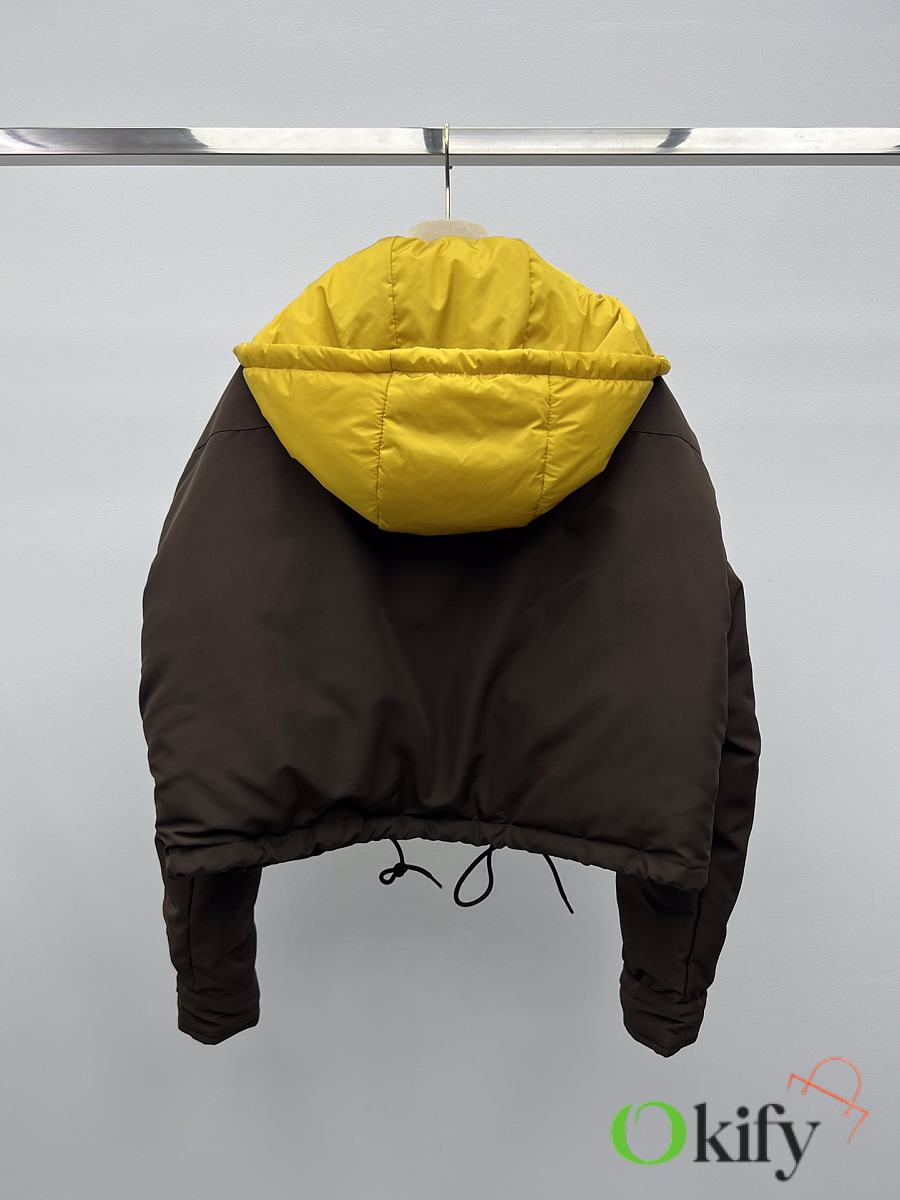 Color contrasts and sporty elements set this technical down Pongé hooded jacket apart. Features a slightly cropped silhouette, a detachable hood, and windproof fabric. The functionality of a classic wardrobe that symbolizes youth and uniqueness