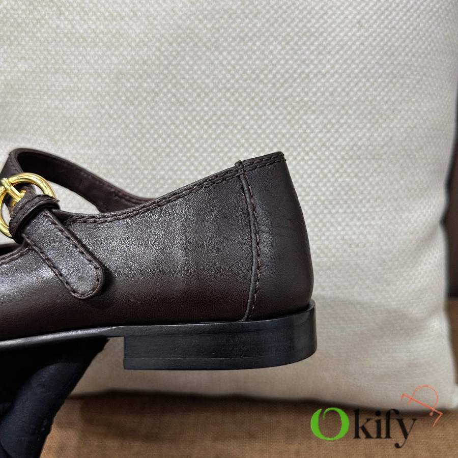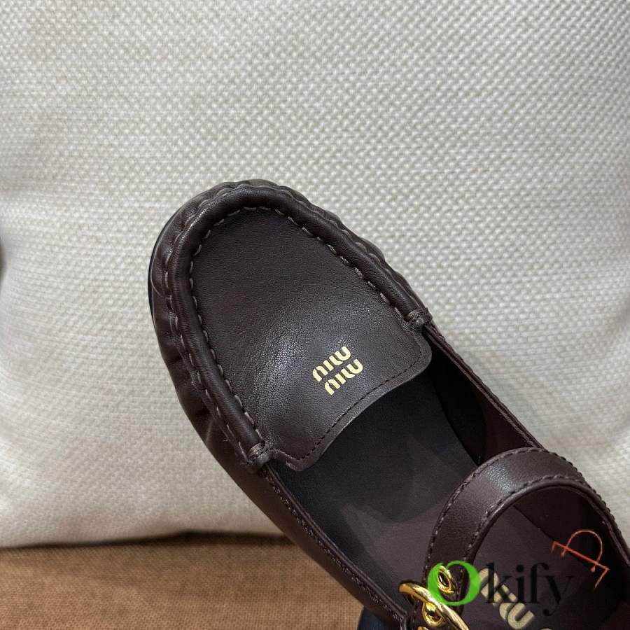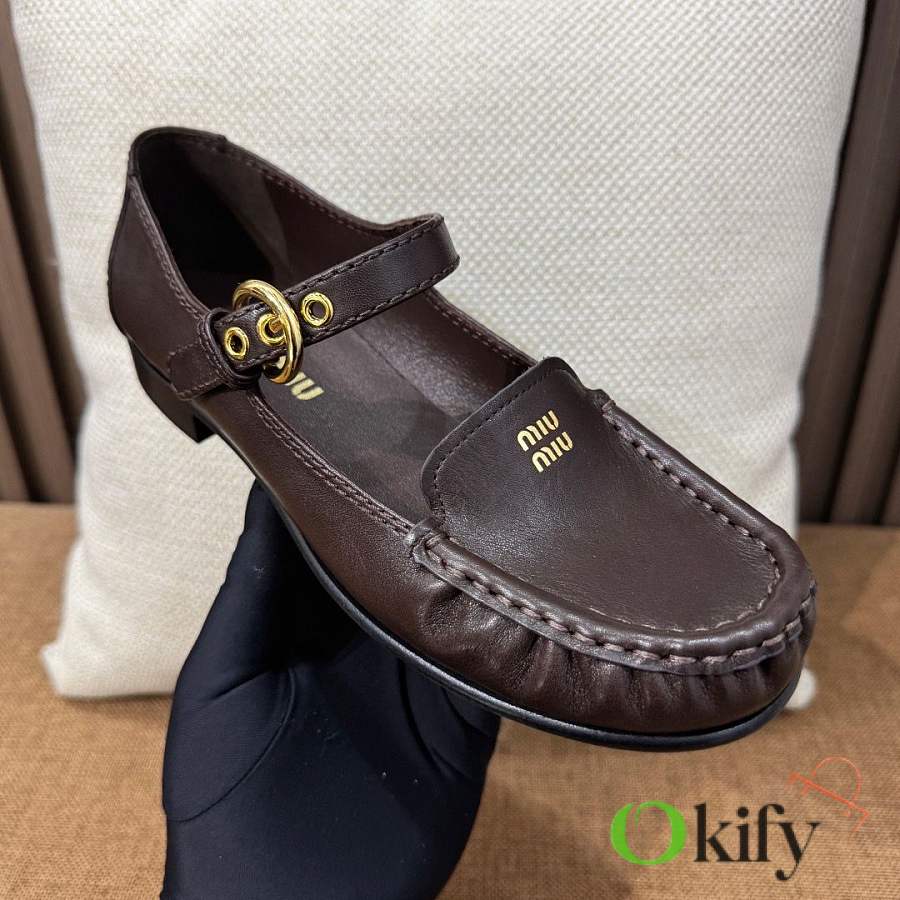 Okify MiuMiu Dark Brown Matte Loafers With Straps