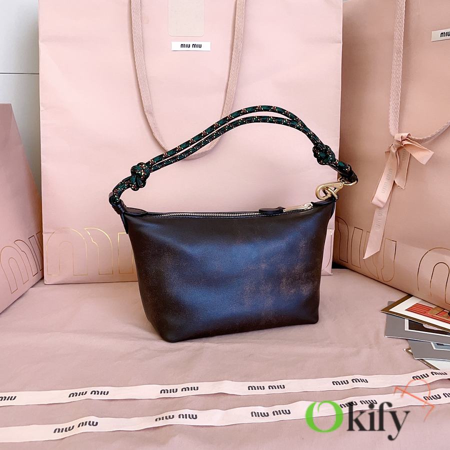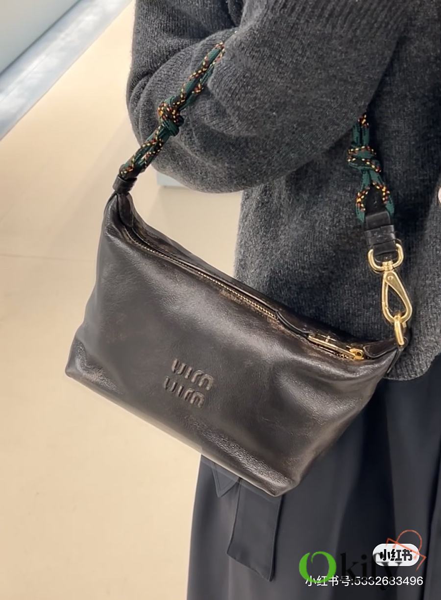 Vintage Distressed Soft Lambskin, Signature Miu Logo on Front, Cotton Lining, Ultra-Lightweight, Large Capacity, Looks Great with Any Style, Suitable for All Seasons. Dimensions: Bottom Length 19cm, Opening Width 25.5cm, Height 14cm, Bottom Width 10cm