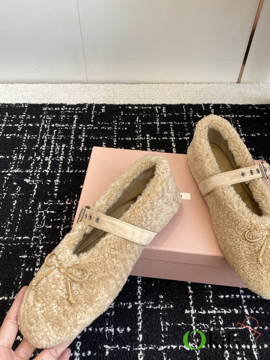 Miu Miu's new autumn and winter deck shoes, lambswool boat shoes, flat shoes, slip-on shoes The playful lace-up bow and the brushed lining make the wearing experience more comfortable and stylish. It has a great sense of design and can fully capture the autumn and winter atmosphere. It is comfortable and fashionable. The wool material, lambskin lining and original mold rubber outsole are used.