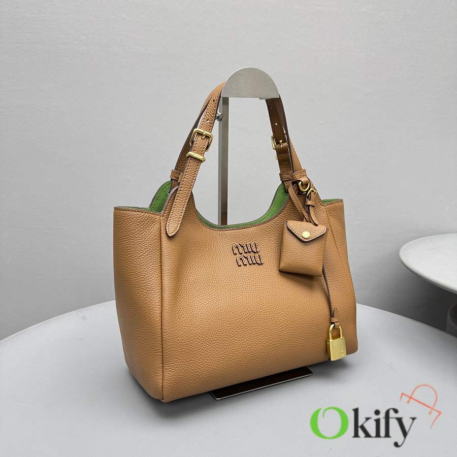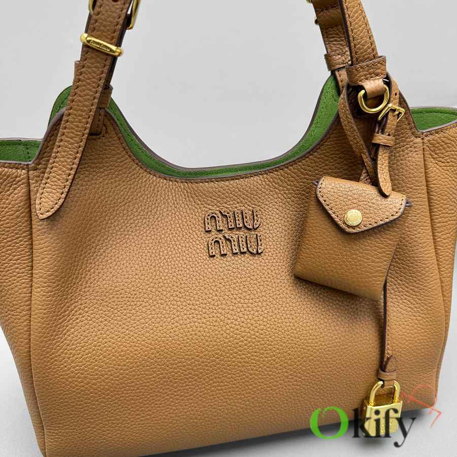 Miu's new limited-edition lychee-patterned leather shopping basket! This new basket bag features a unique design, soft leather, and a grained surface that makes it more durable and wear-resistant. The adjustable shoulder strap allows for both hand-carrying and shoulder-carrying, making it suitable for everyday outings or casual gatherings. Its size is large enough to hold everyday essentials, and most importantly, it goes with everything!
