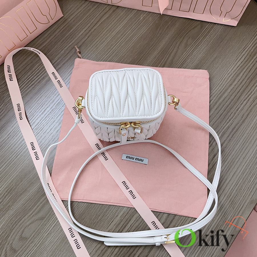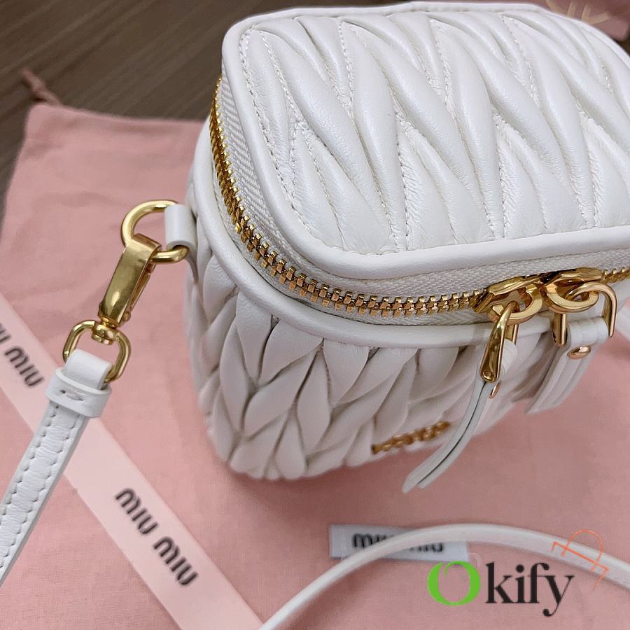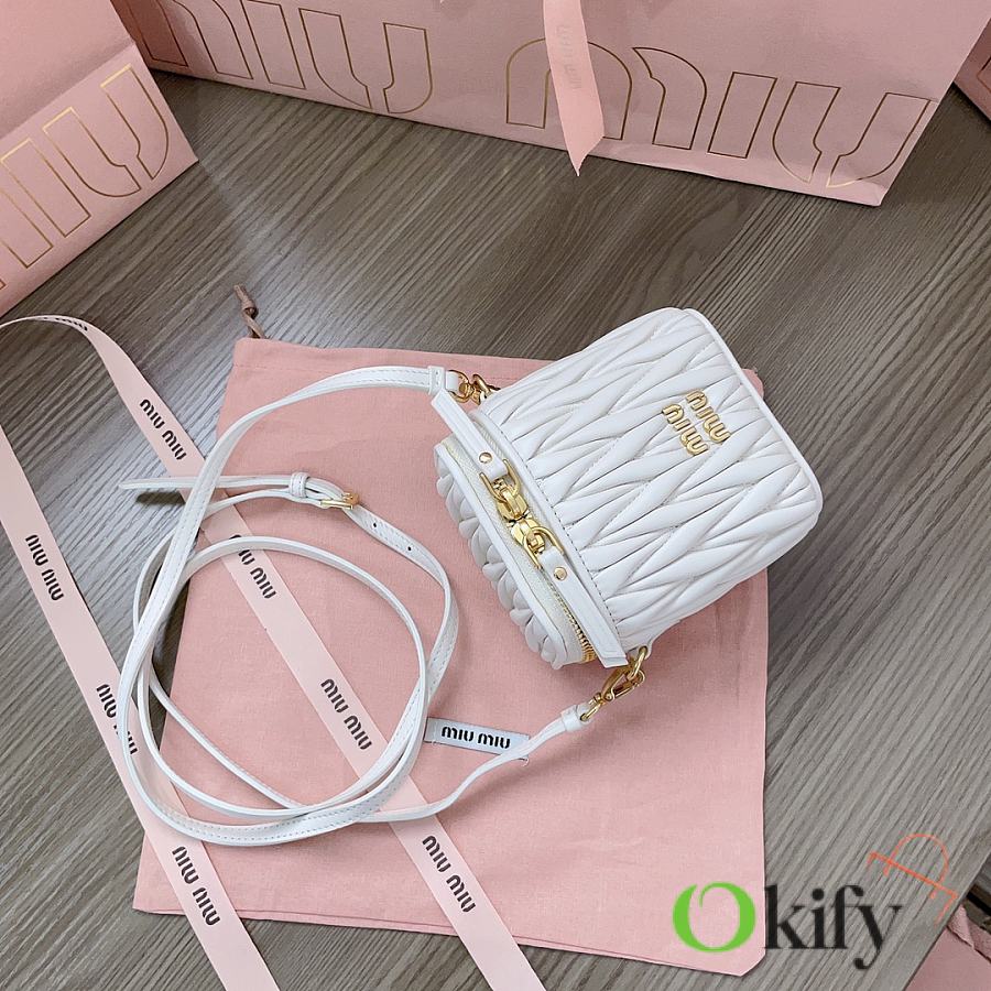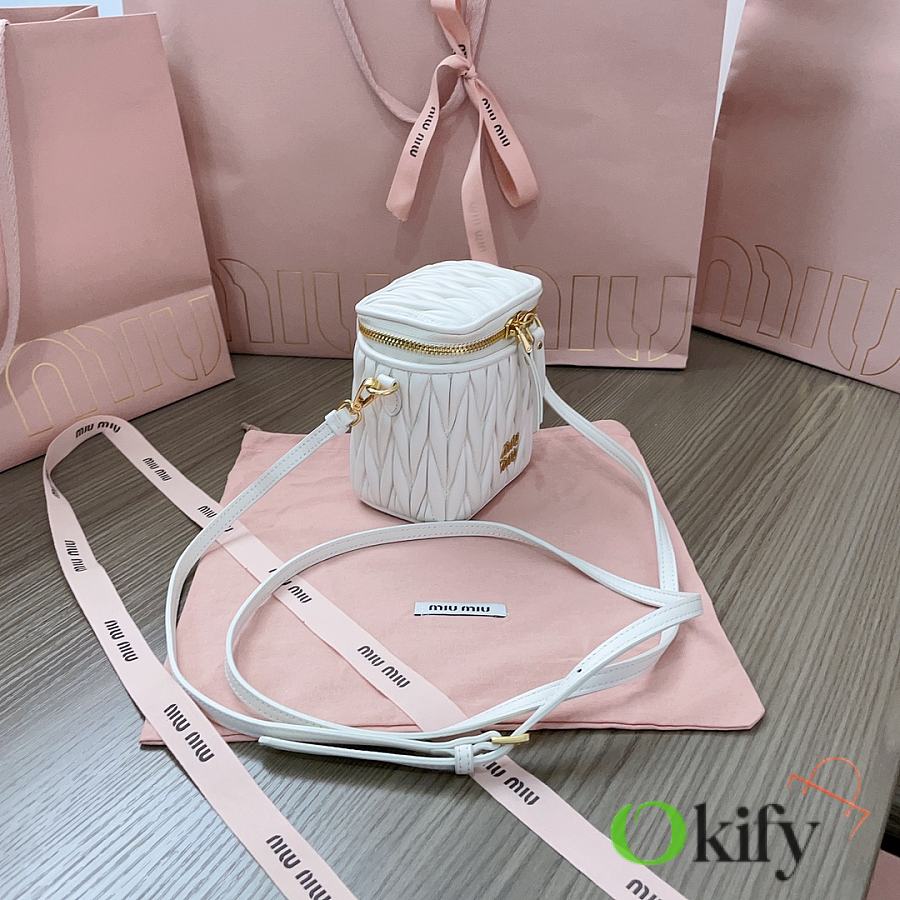 This new 5NR018 ultra-mini cosmetic bag is made of top-grade imported lambskin with exquisite Matelasse craftsmanship, featuring a three-dimensional texture. Its stylish and simple design exudes sophistication and elegance. It has a zip closure, a metal logo on the front, a detachable and adjustable leather shoulder strap, cotton satin lining, and a mirror recess.