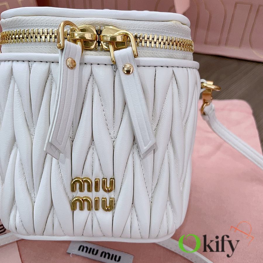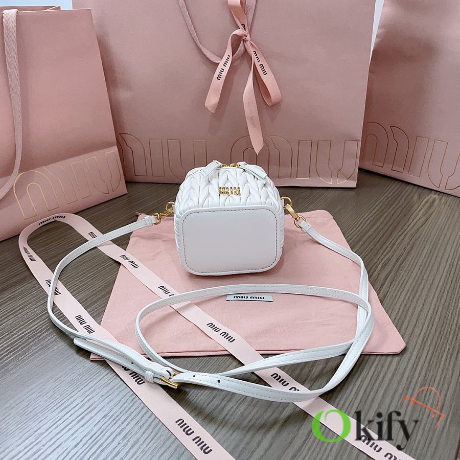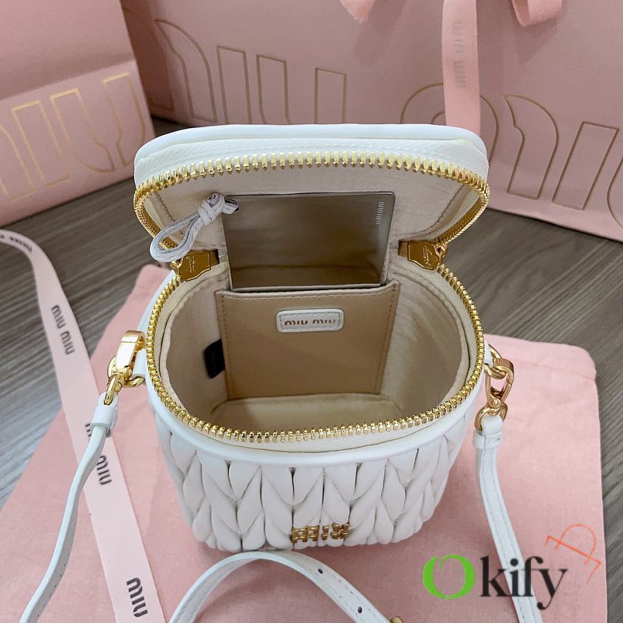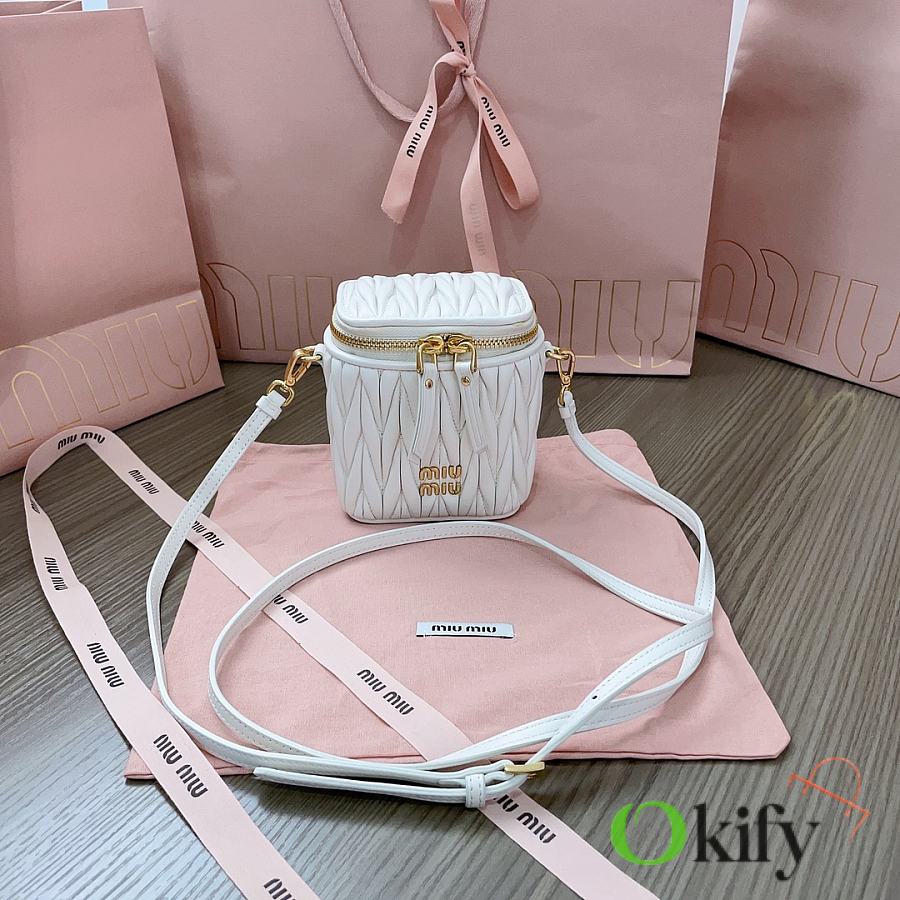 This new 5NR018 ultra-mini cosmetic bag is made of top-grade imported lambskin with exquisite Matelasse craftsmanship, featuring a three-dimensional texture. Its stylish and simple design exudes sophistication and elegance. It has a zip closure, a metal logo on the front, a detachable and adjustable leather shoulder strap, cotton satin lining, and a mirror recess.