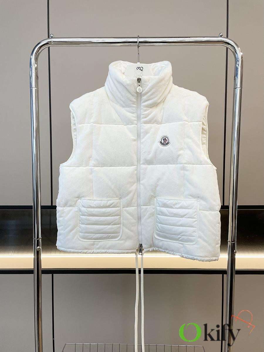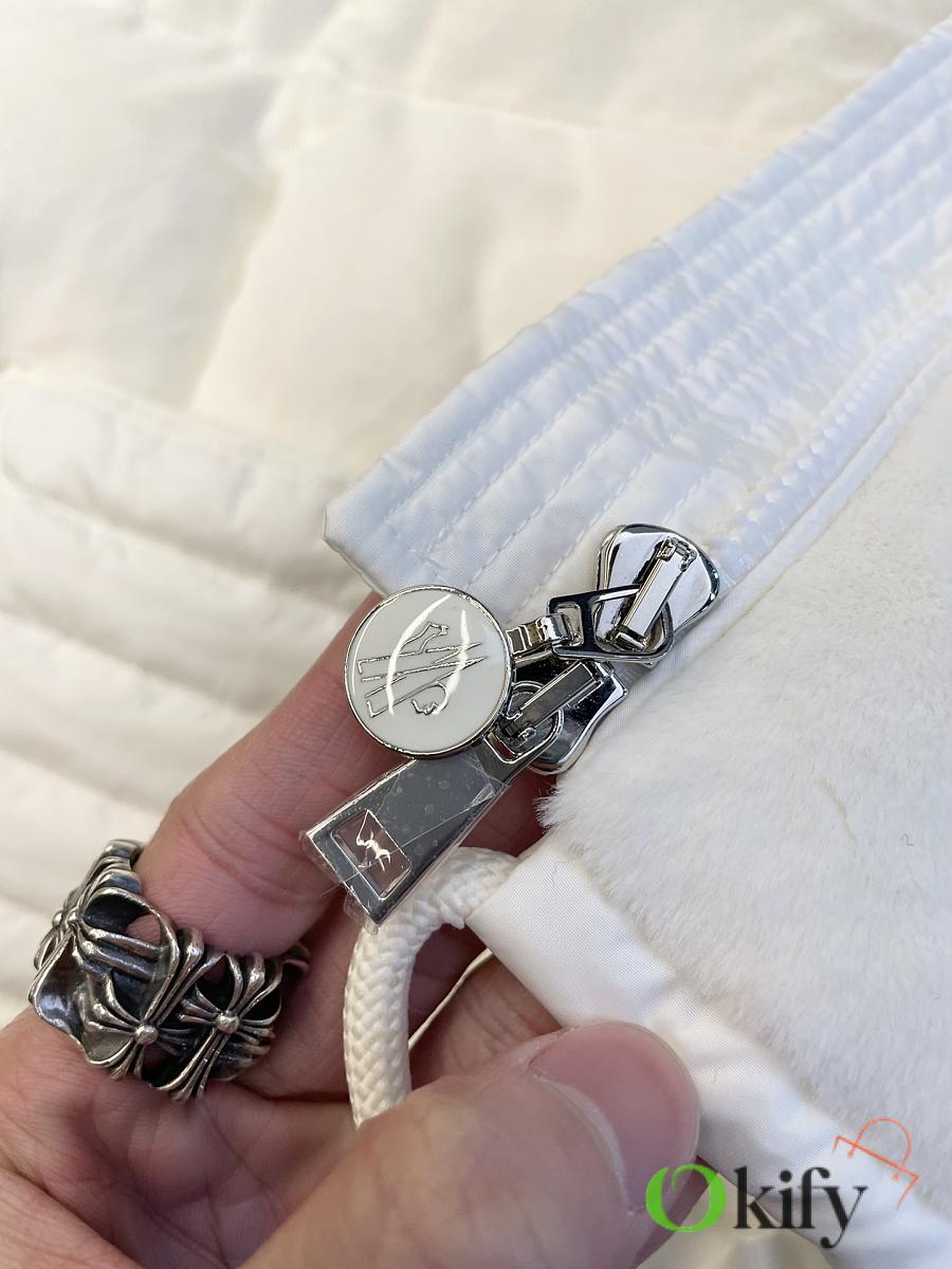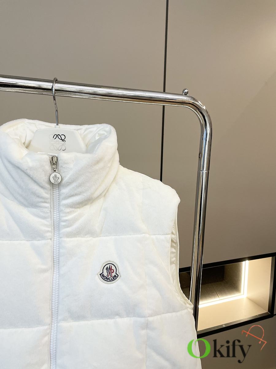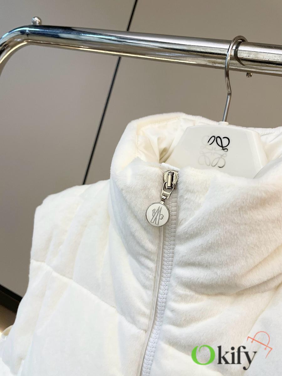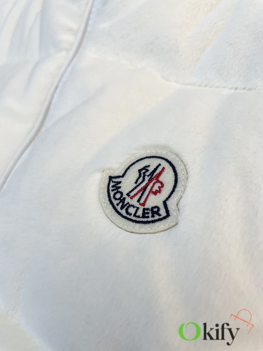 Stand-up collar design for wind protection and warmth; logo badge embellishment for a simple yet sophisticated look . Made from soft teddy fleece fabric, paying homage to the playful texture that swept the 1960s. The vest has a soft, fluffy feel, with a cloud-like, cuddly texture that perfectly captures the autumn/winter vibe. Clean and gentle, it looks amazing on ! Fluffy and adorable— the classic puffer jacket design is so sophisticated and stylish! Filled with 90% down (standard quality), lightweight, warm, and comfortable. Custom-made hardware accessories included. The short cut elongates the figure, making it slimming and versatile