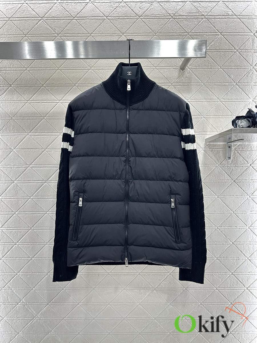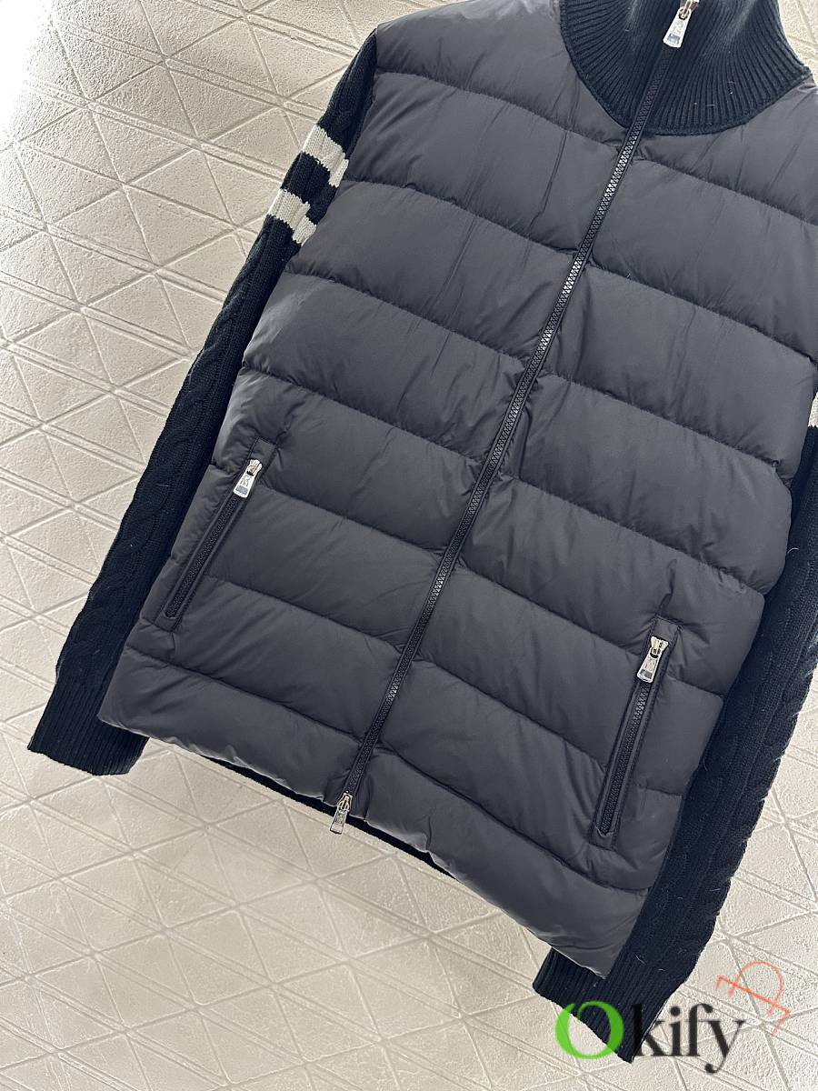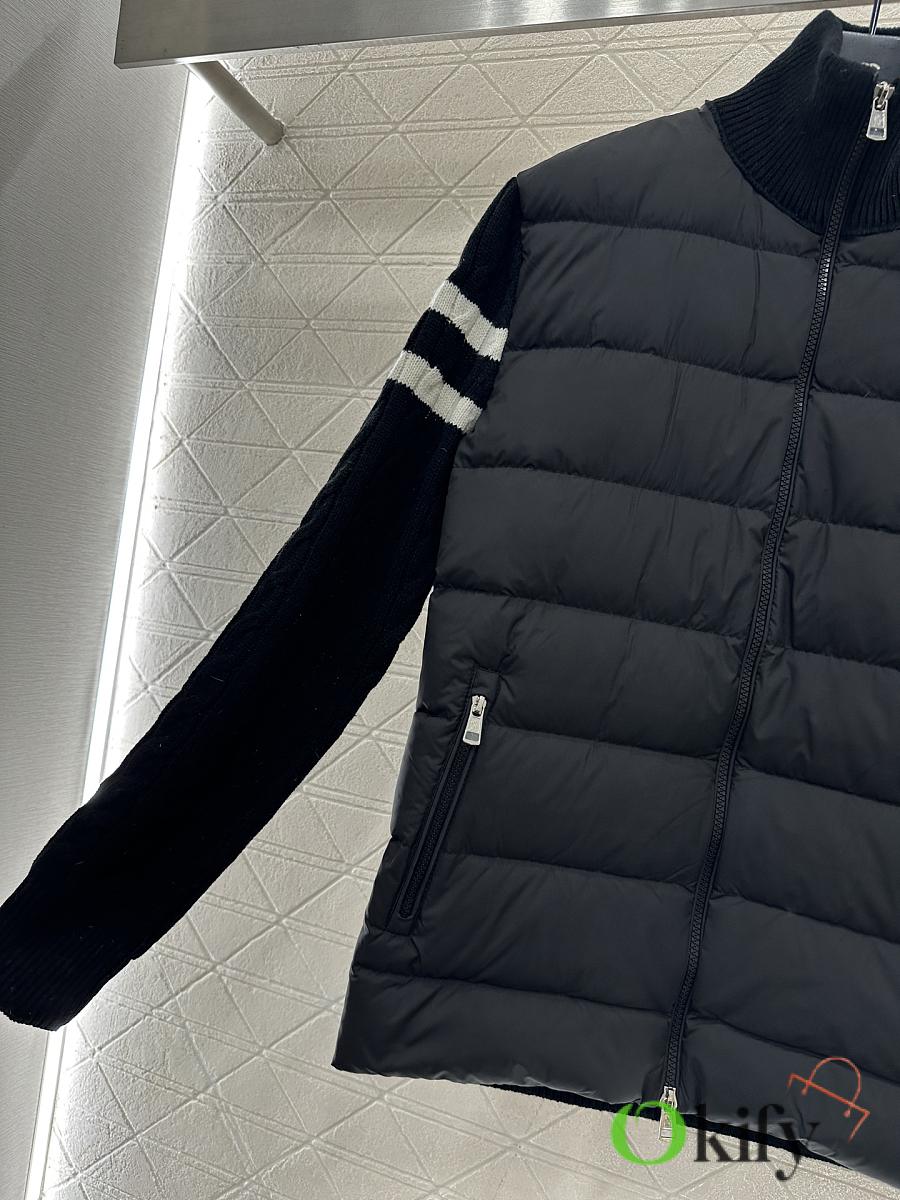 Okify Moncler Black Stand Collar Paneled Zipper Down Jacket Unisex