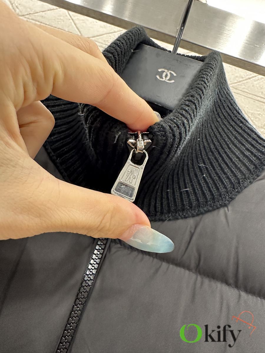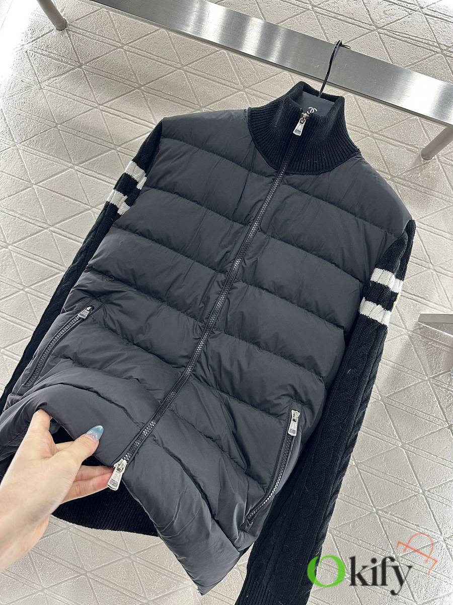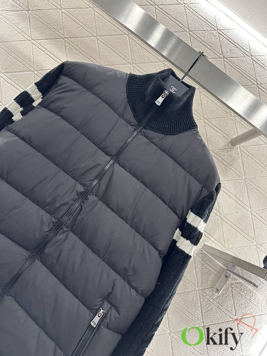 Okify Moncler Black Stand Collar Paneled Zipper Down Jacket Unisex