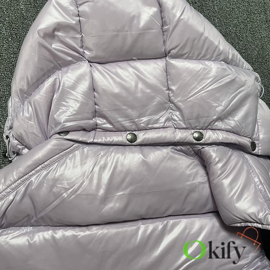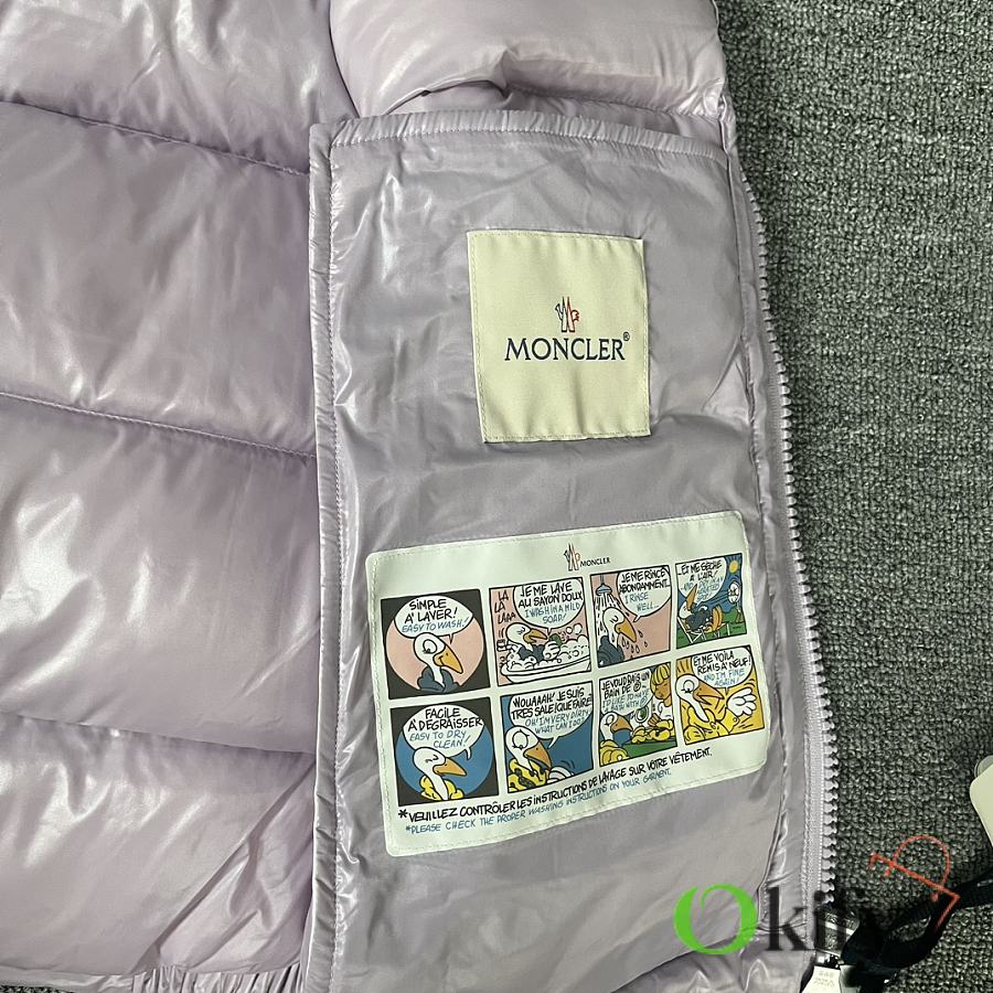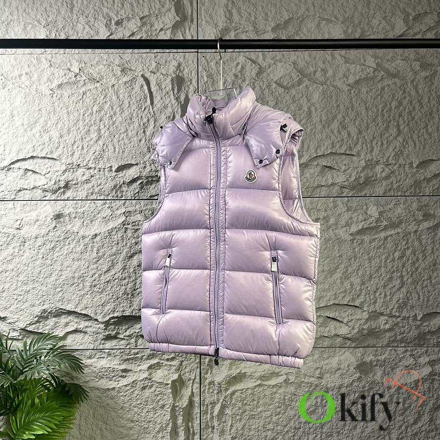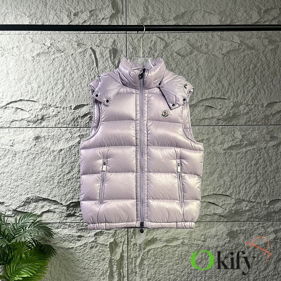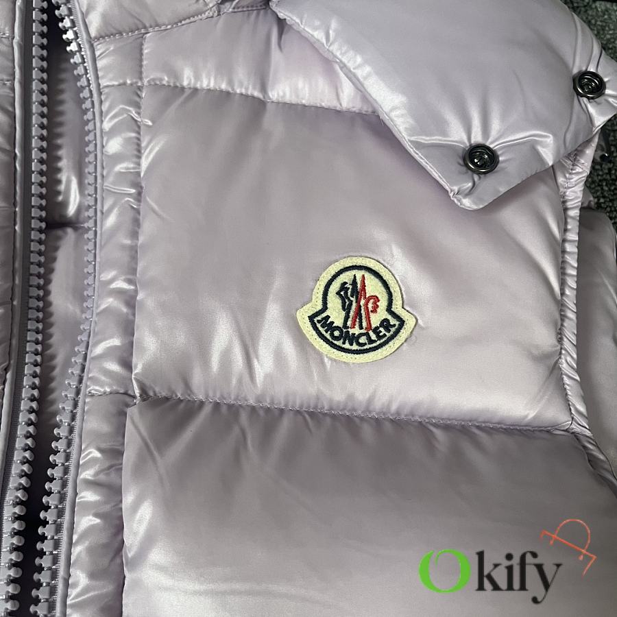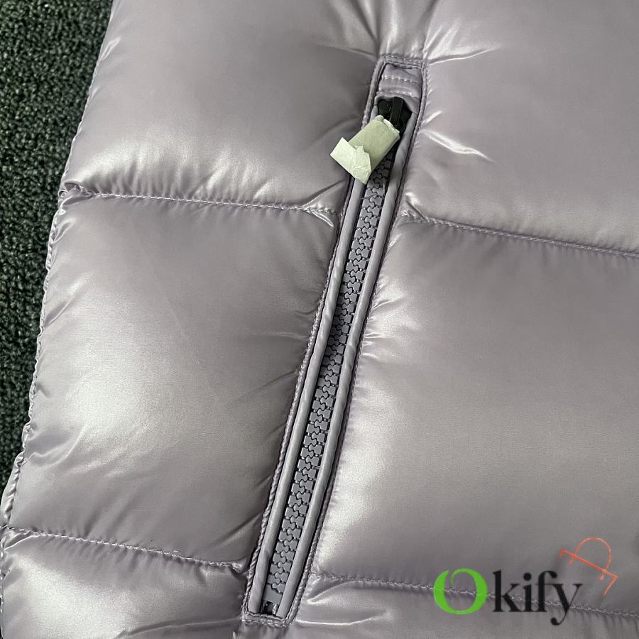 Designed with double zippers, zippered side pockets, and a detachable hood with Moncler logo buttons. The stand collar fits comfortably around the face, offering both style and warmth.