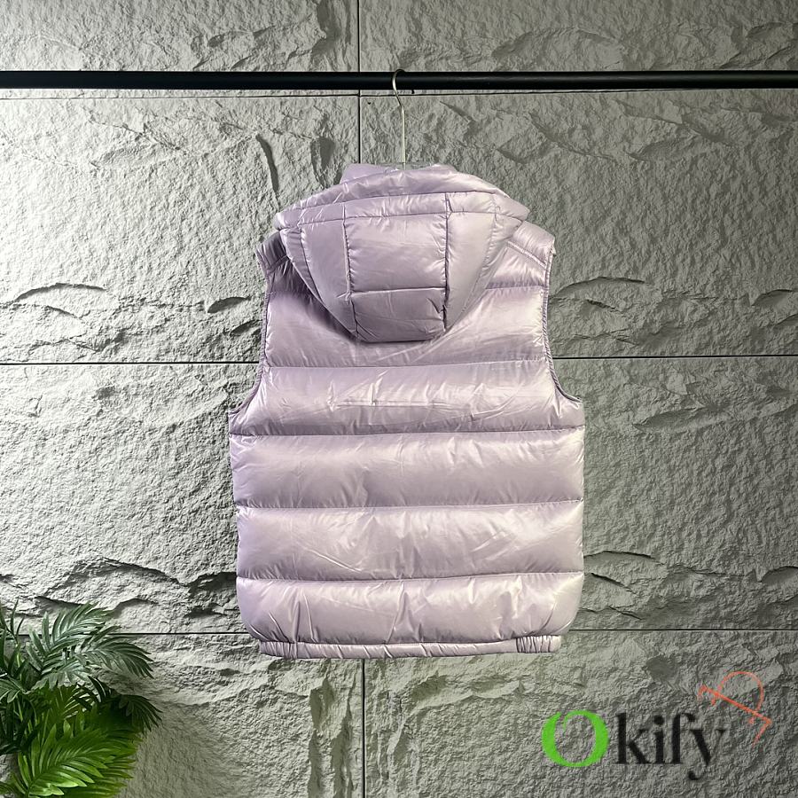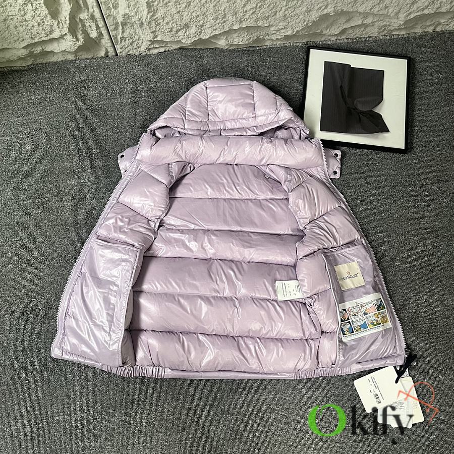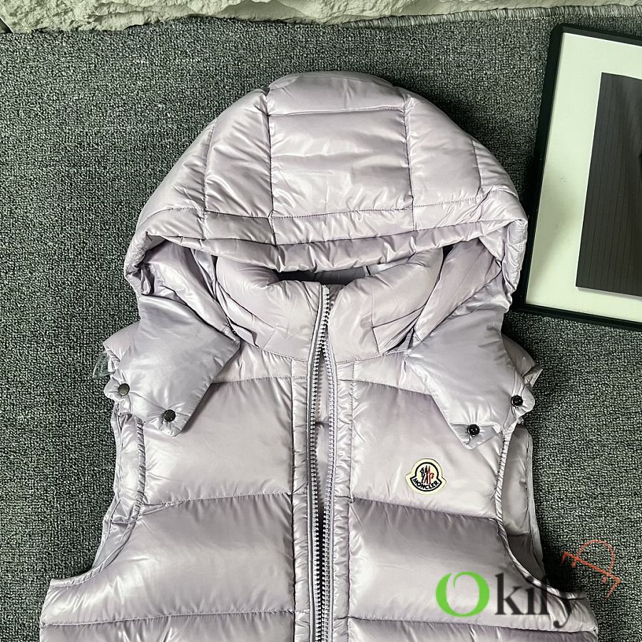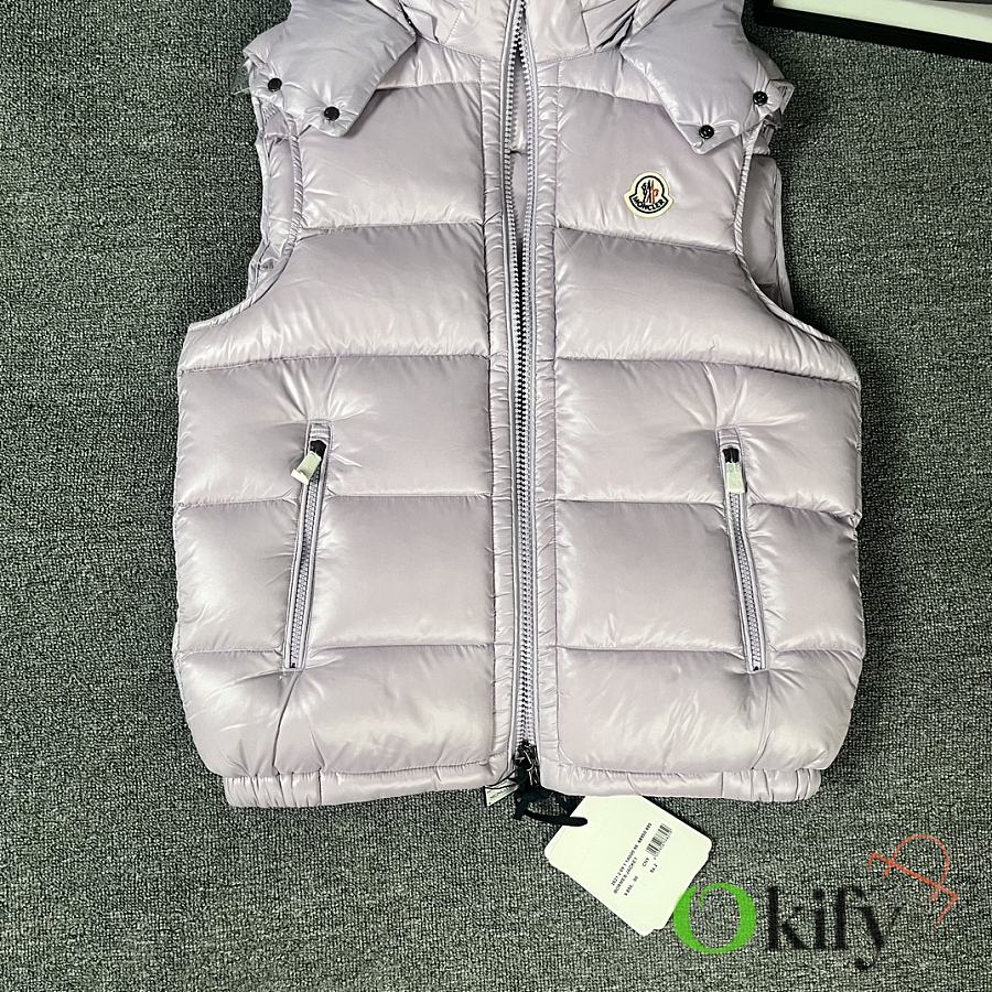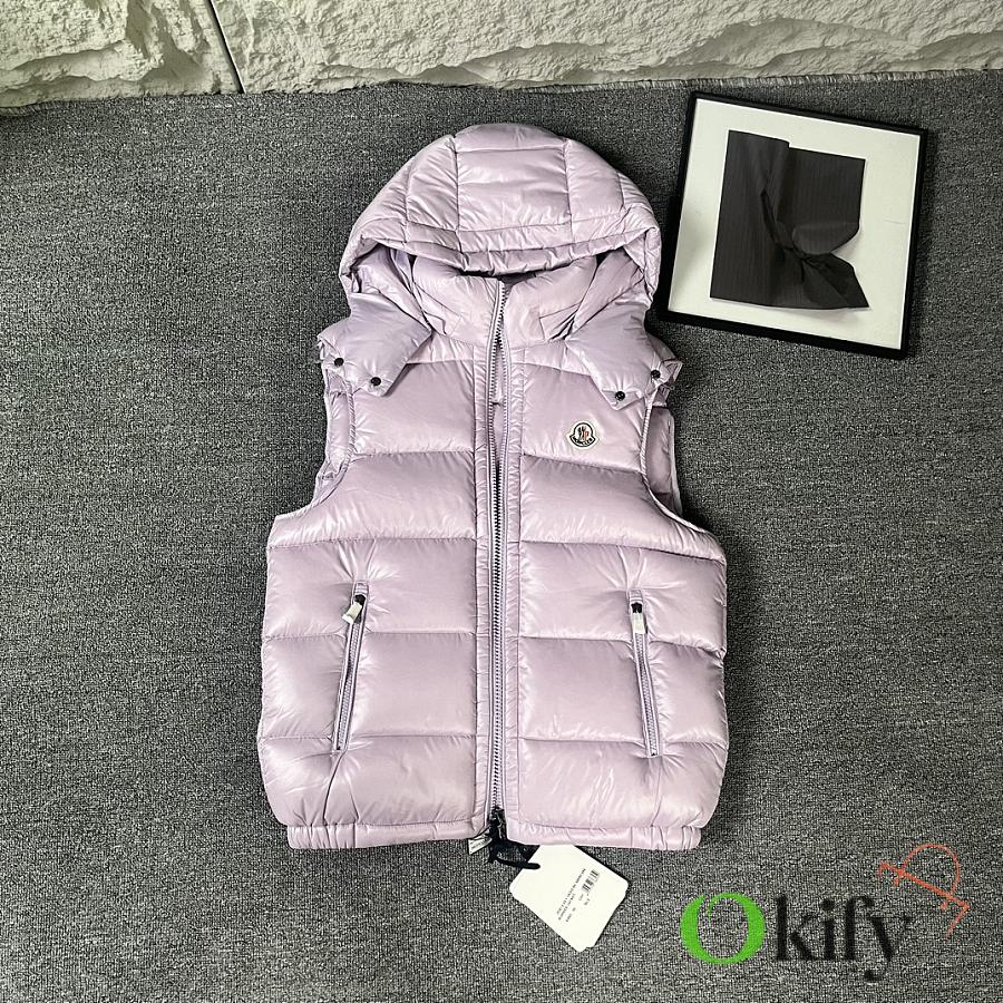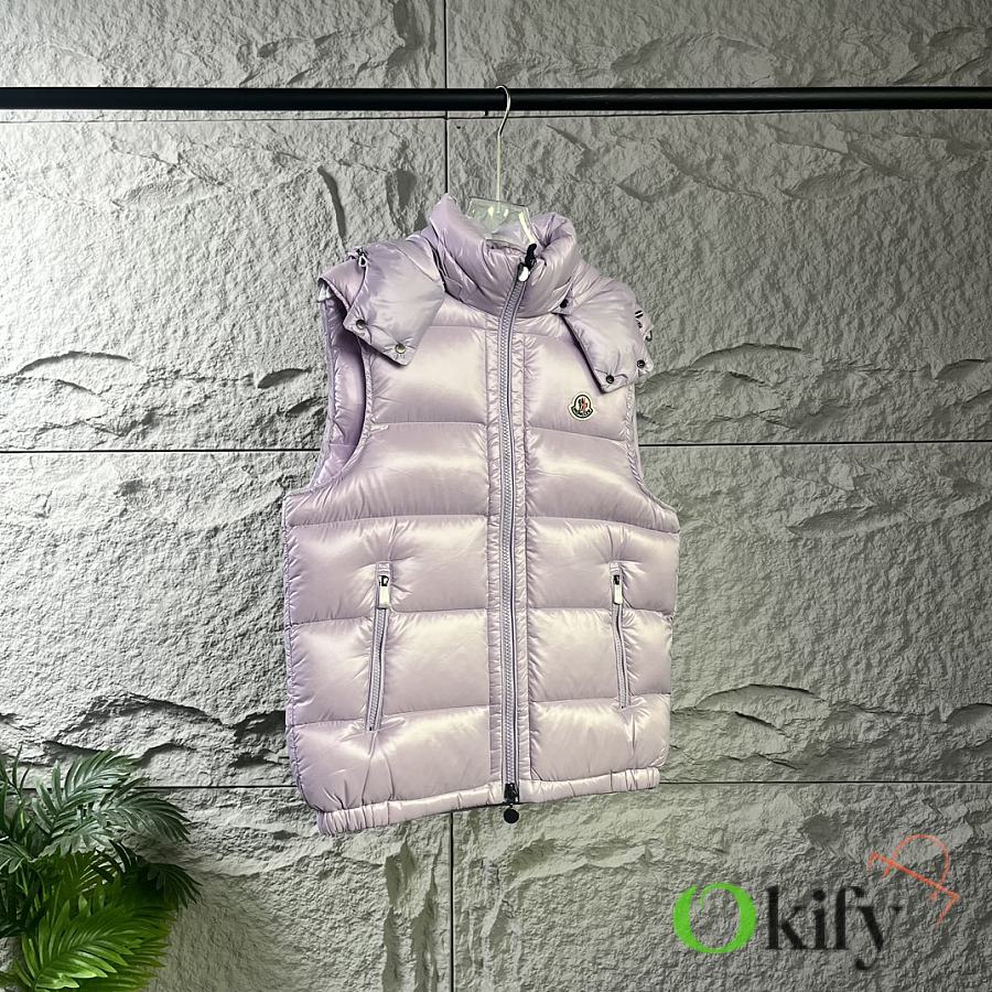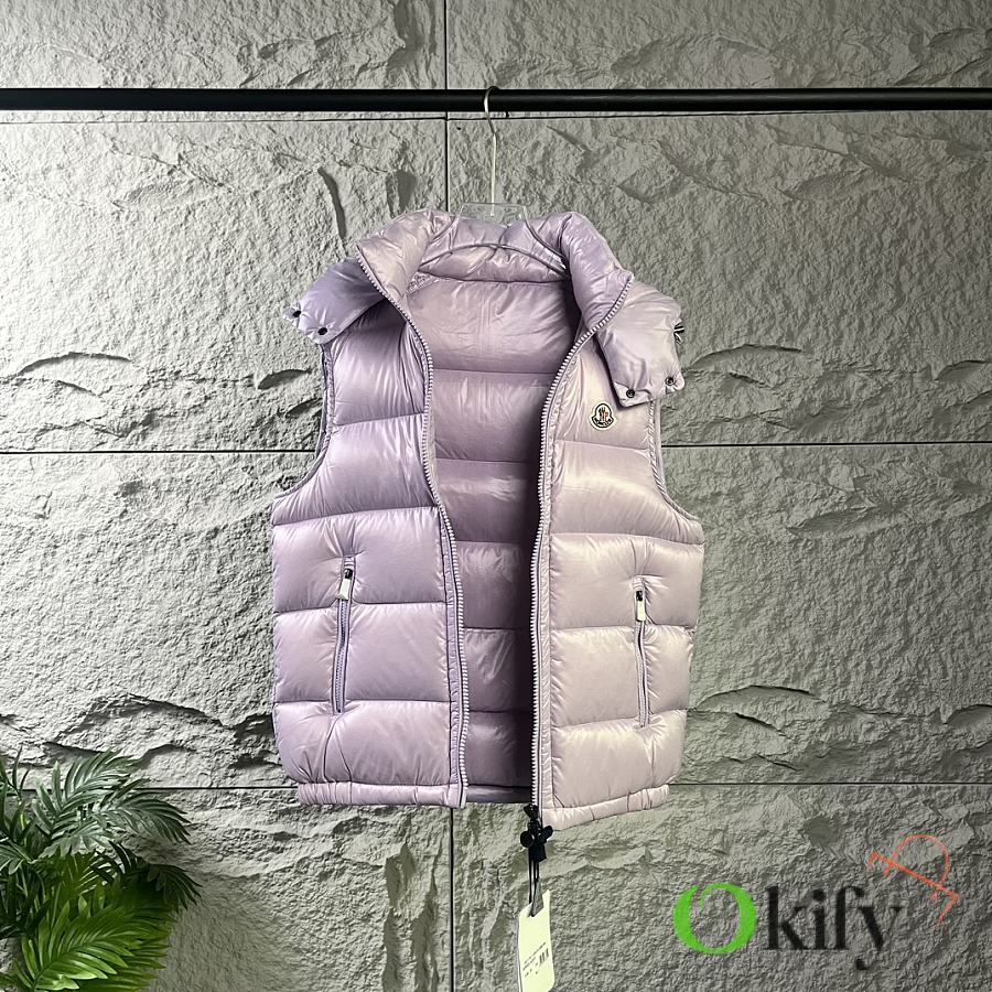 Designed with double zippers, zippered side pockets, and a detachable hood with Moncler logo buttons. The stand collar fits comfortably around the face, offering both style and warmth.