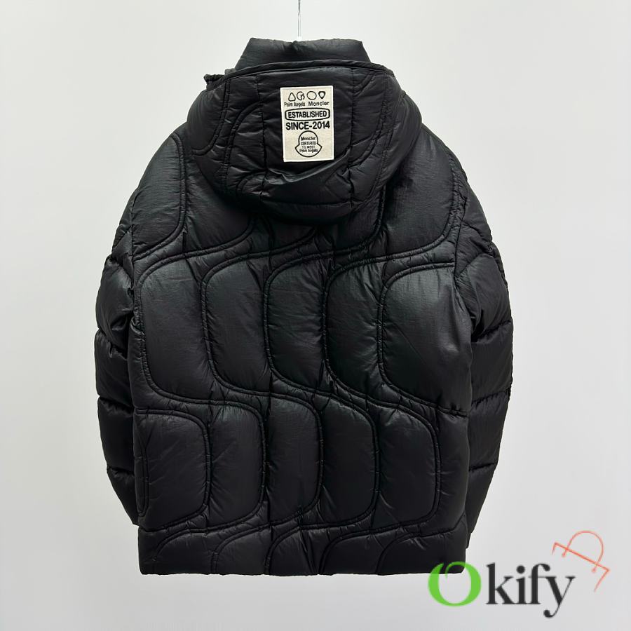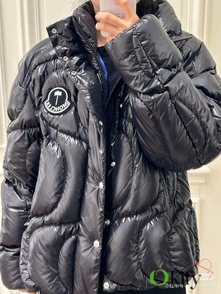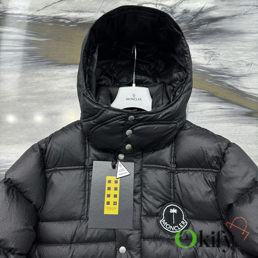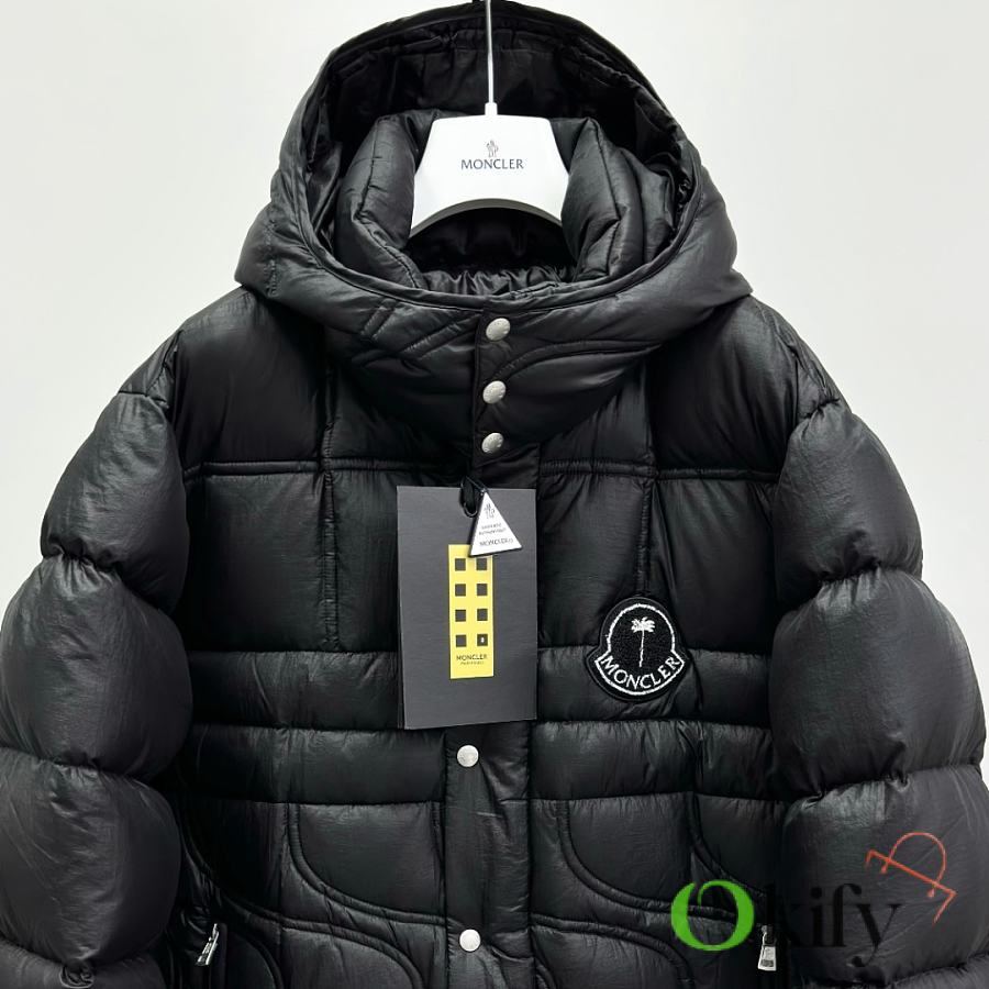 Material: Nylon Feature: Warmth Fit: Loose, Medium Length, Cropped Collar, Removable Hood Content: 100% Nylon Collar: 100% Nylon Shell: 100% Nylon Lining: 100% Nylon Hood Lining: Nylon Style: Quilted Down Jacket with Zippered Sleeves, Regular Sleeve Length