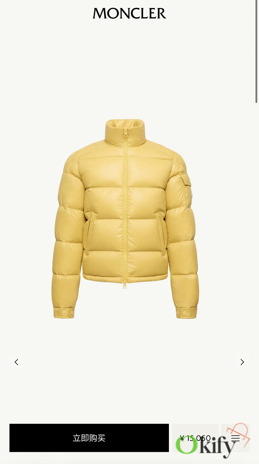 Okify Moncler Levitha Yellow Stand Collar Short Down Jacket Unisex